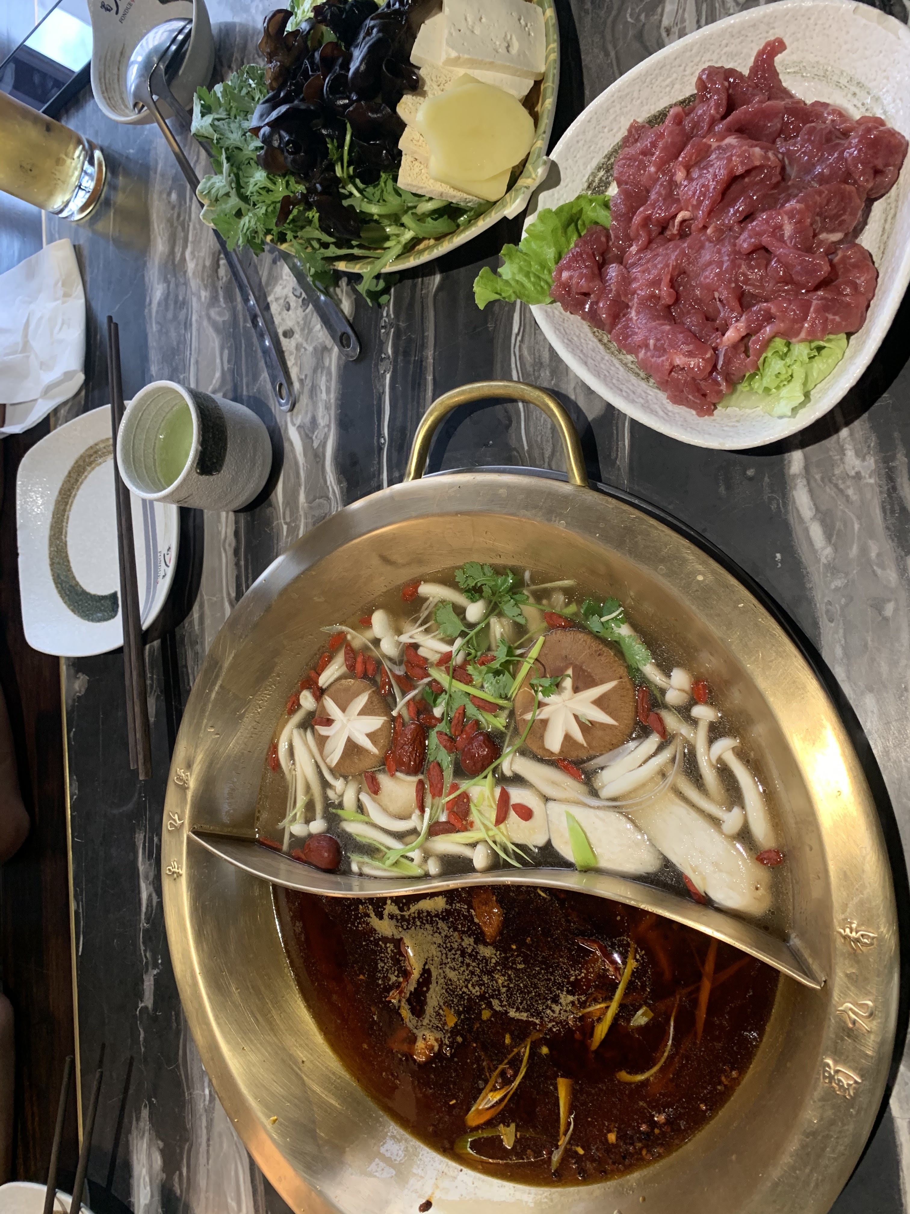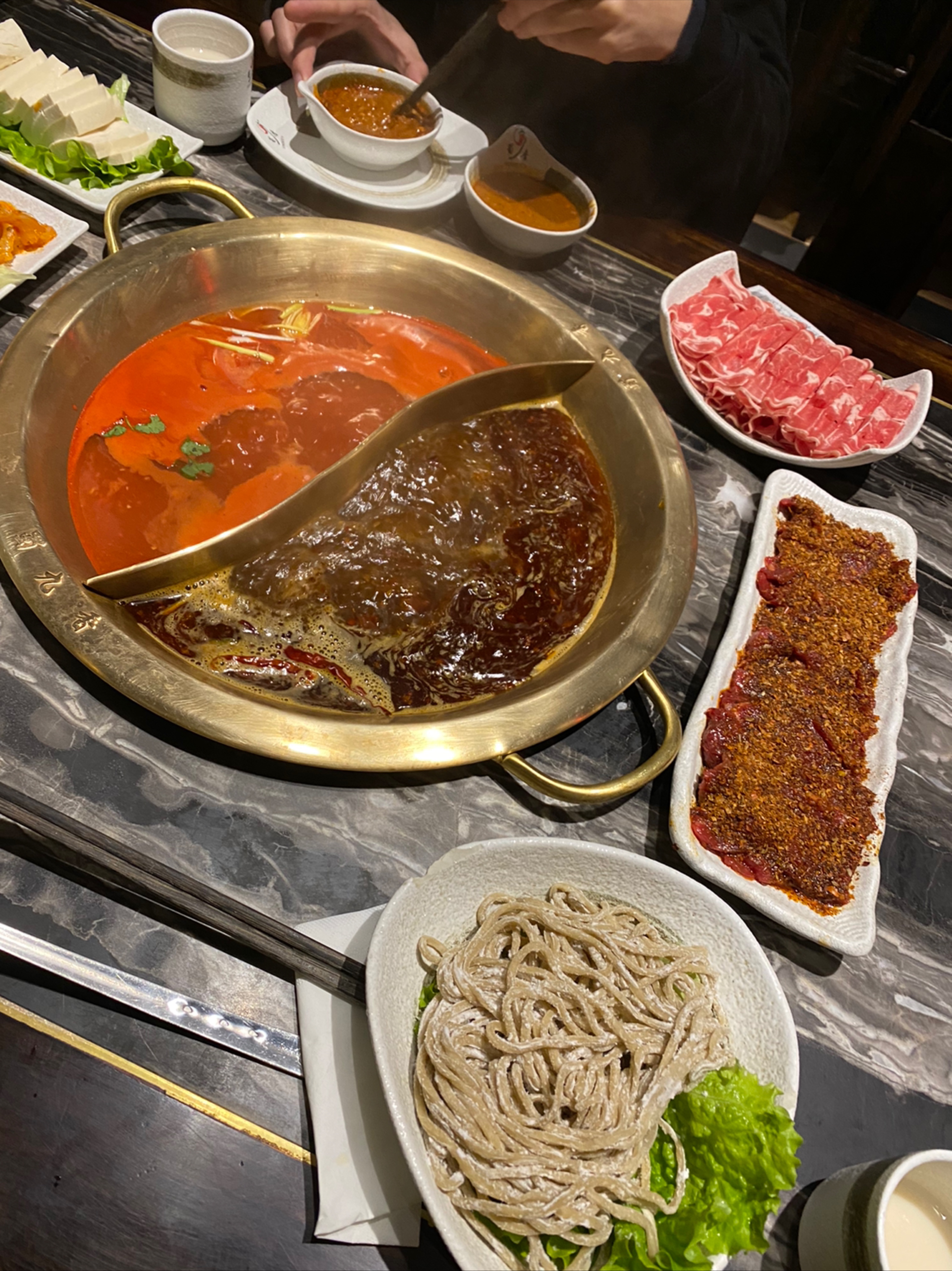 Une vraie fondue chinoise, épicée à souhait, servie par un personnel charmant. Je recommande de goûter l’aorte de bœuf, ça semble étrange à la base mais c’est super bon !