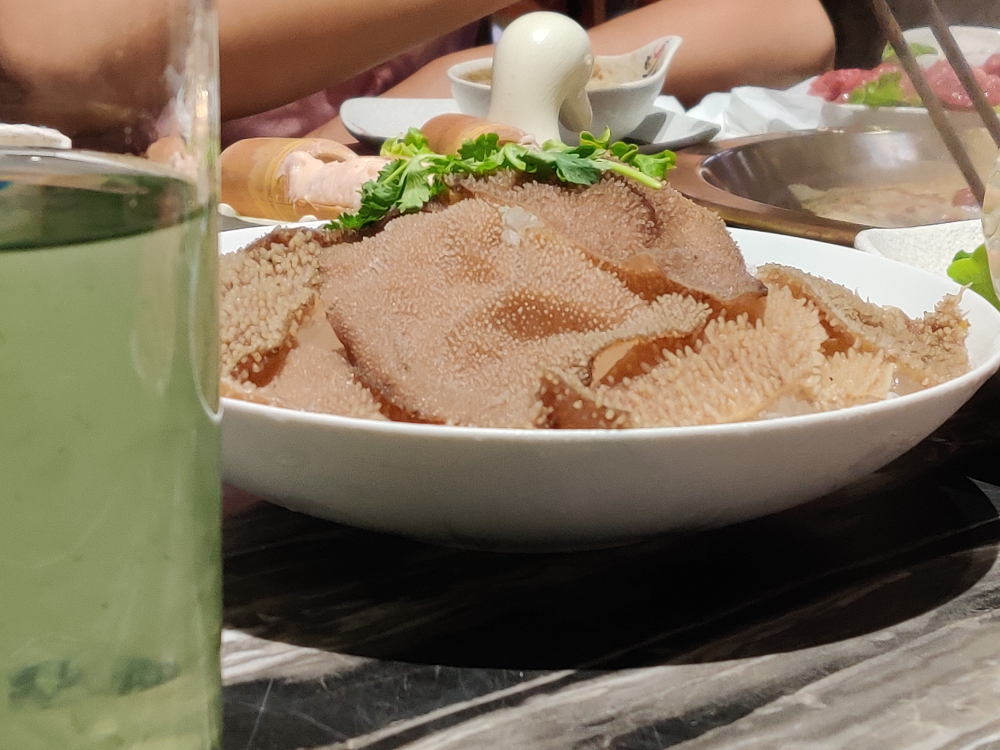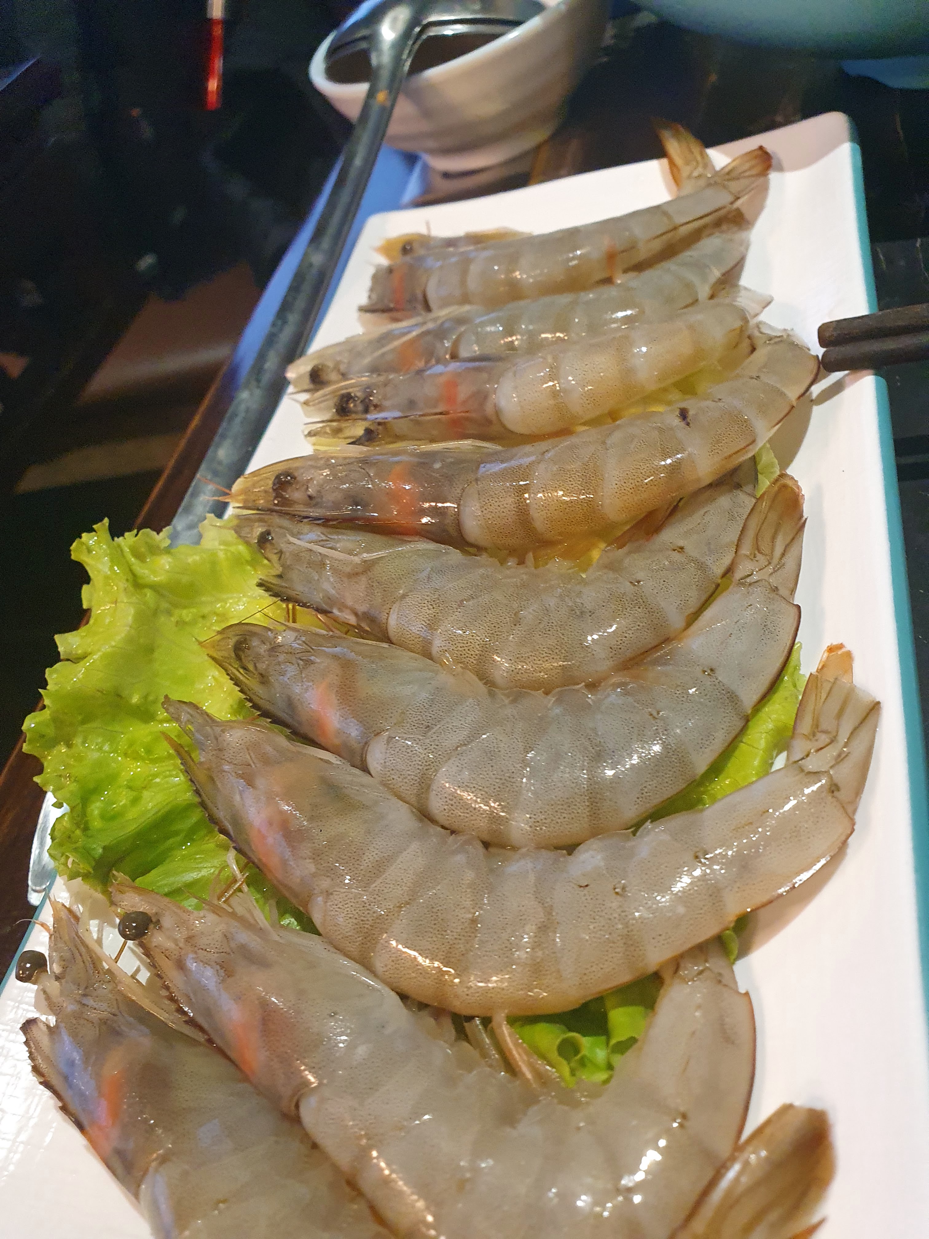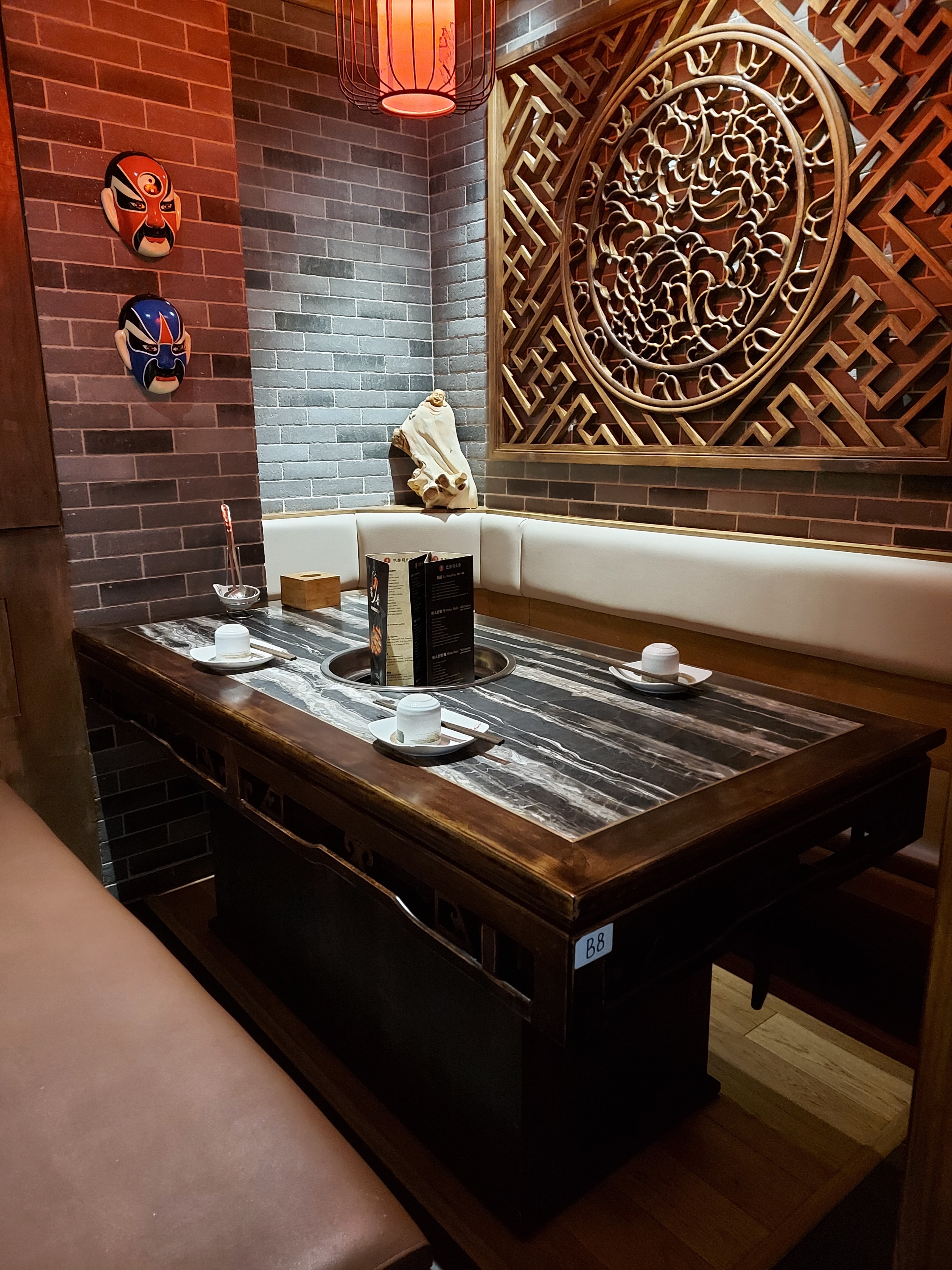 Le restaurant est spacieux et la décoration nous fait voyager directement en Chine. Les tables sont grandes et les portions sont très généreuses. Les produits sont hyper frais et les 2 bouillons sont parfaitement assaisonnés. Nous avons juste regretté d’avoir pris des calamars car ils sont difficiles à cuire en bouillon. Le jus de prune est rafraîchissant!