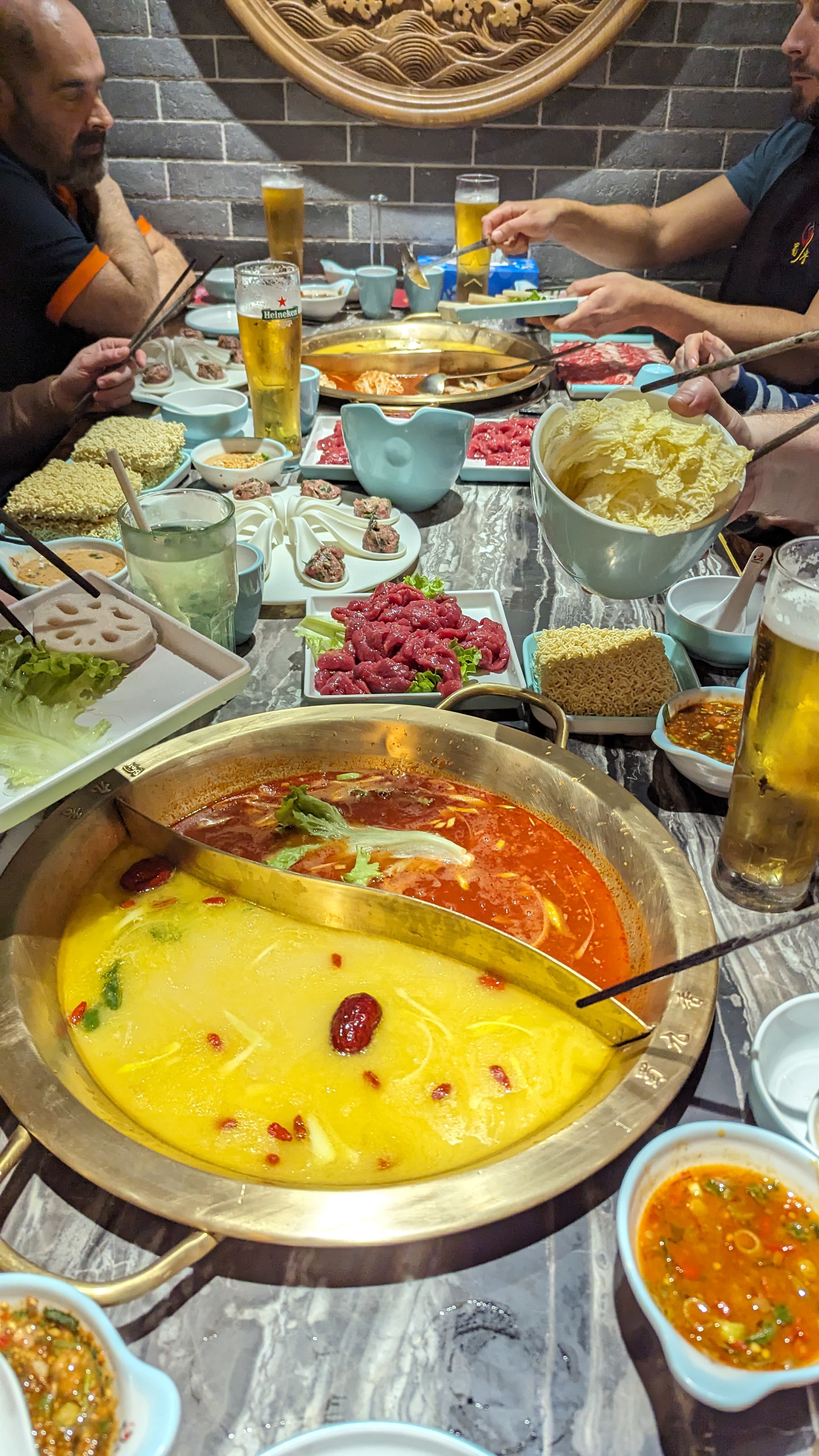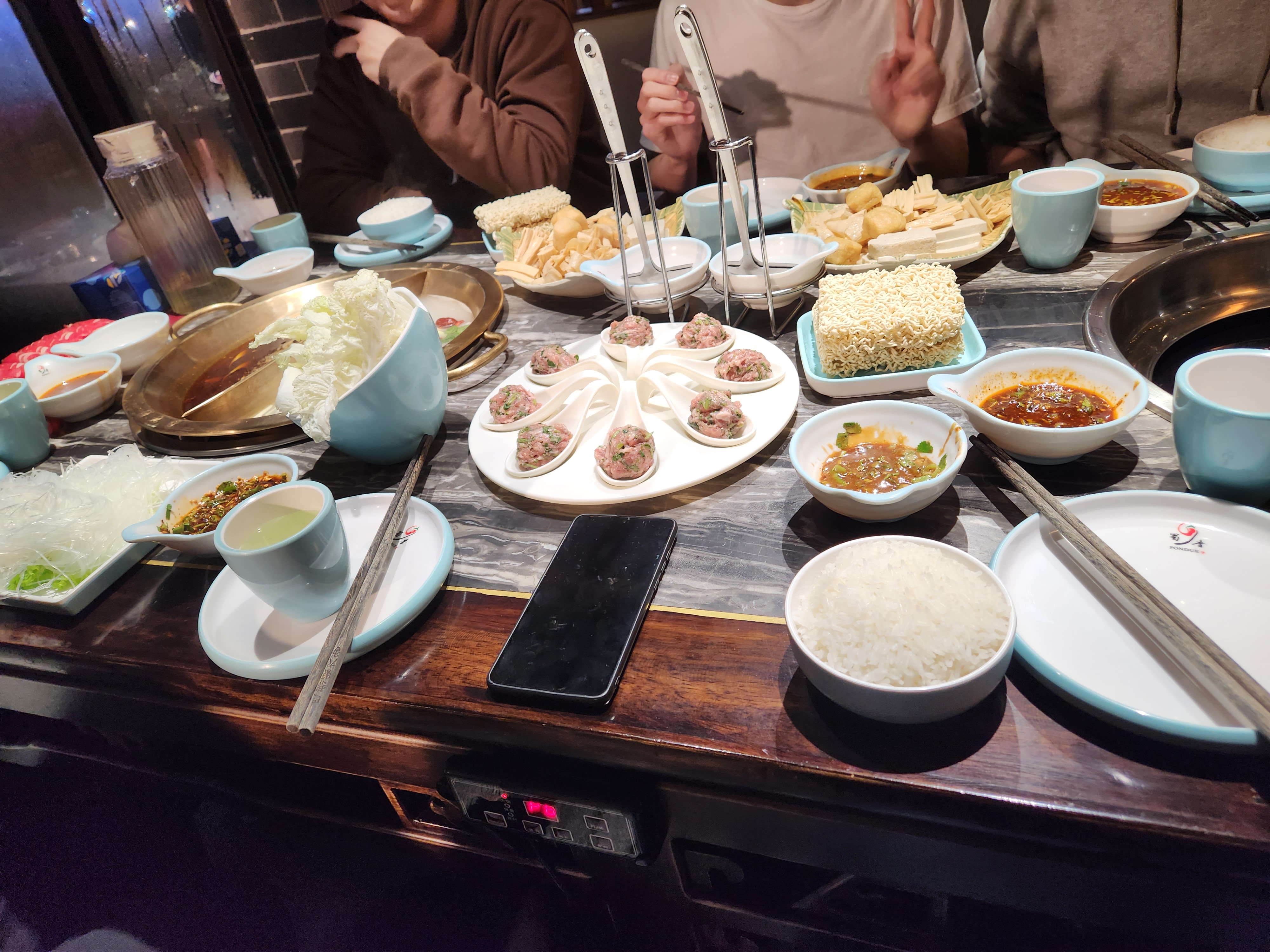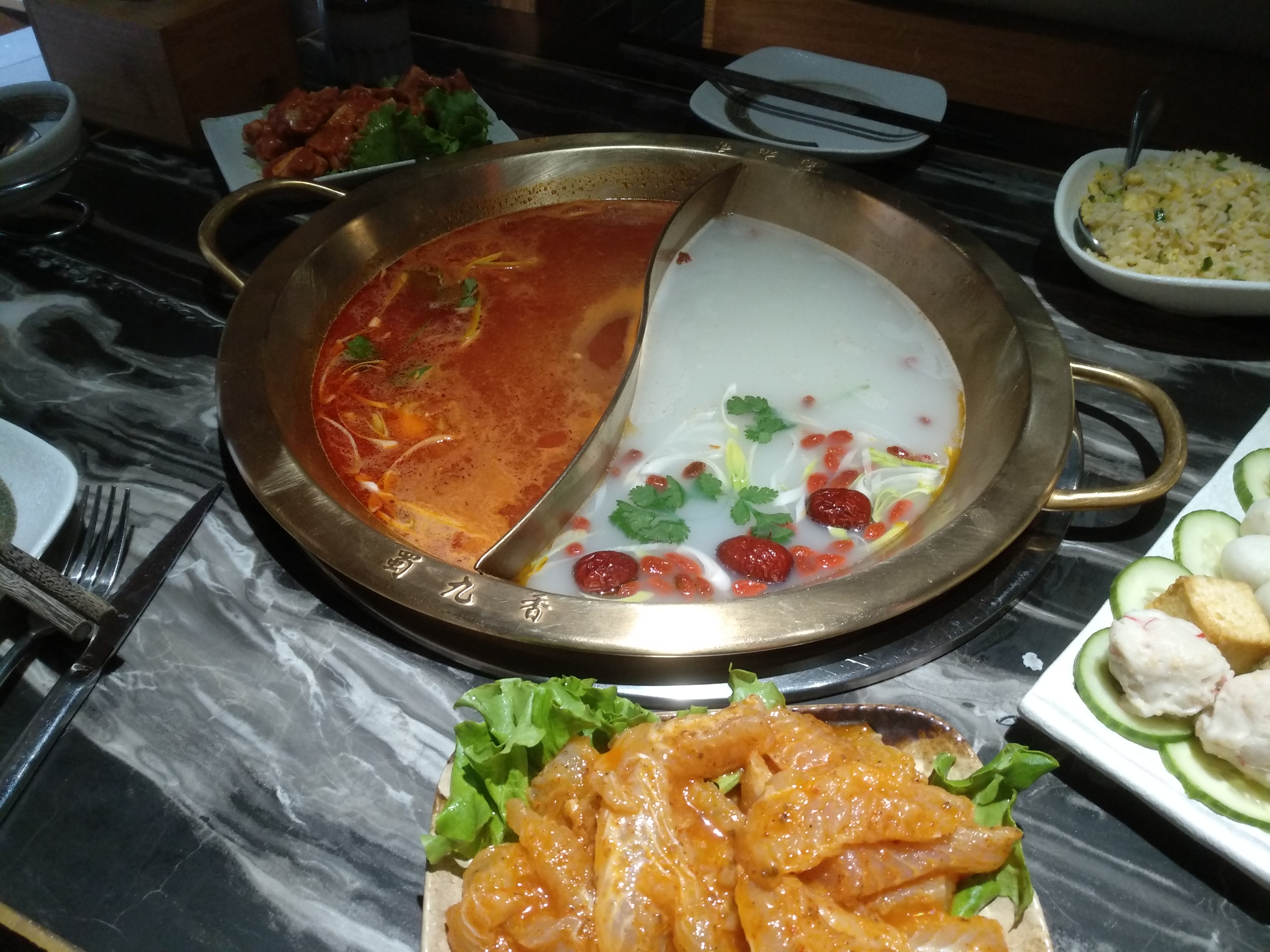 Fondue comme en Chine, tout simplement. J'y vais souvent avec mes collègues (chinois), et c'est une réussite à chaque fois. Si vous aimez le piment, je vous conseille niveau 1 de piment et ne mettez que de la viande dans le bouillon pimenté. J'ai vu des Français y mettre des nouilles et ça absorbe tout le piment. Déjà, en Chine les gens ne mettent pas des nouilles 😅