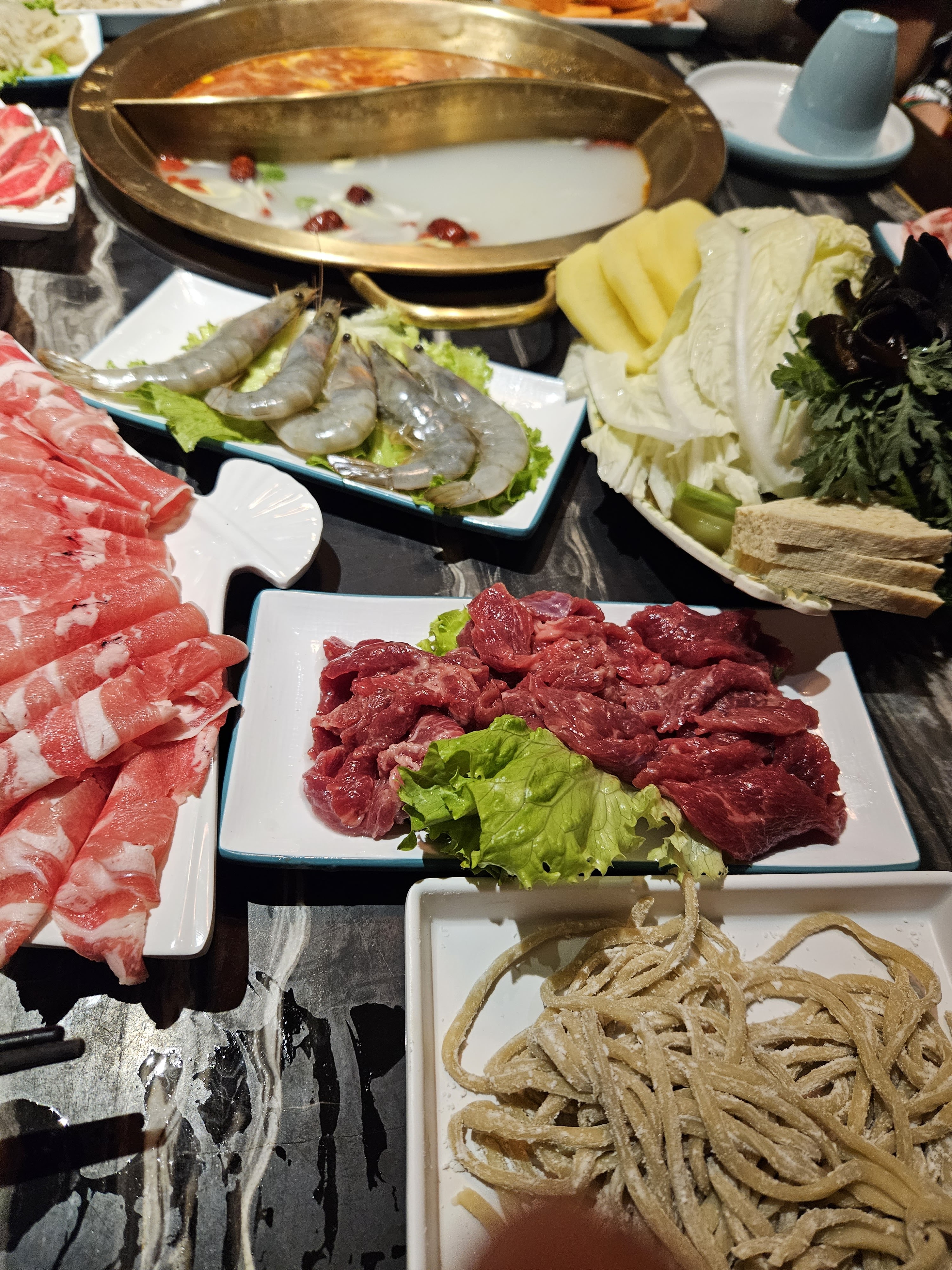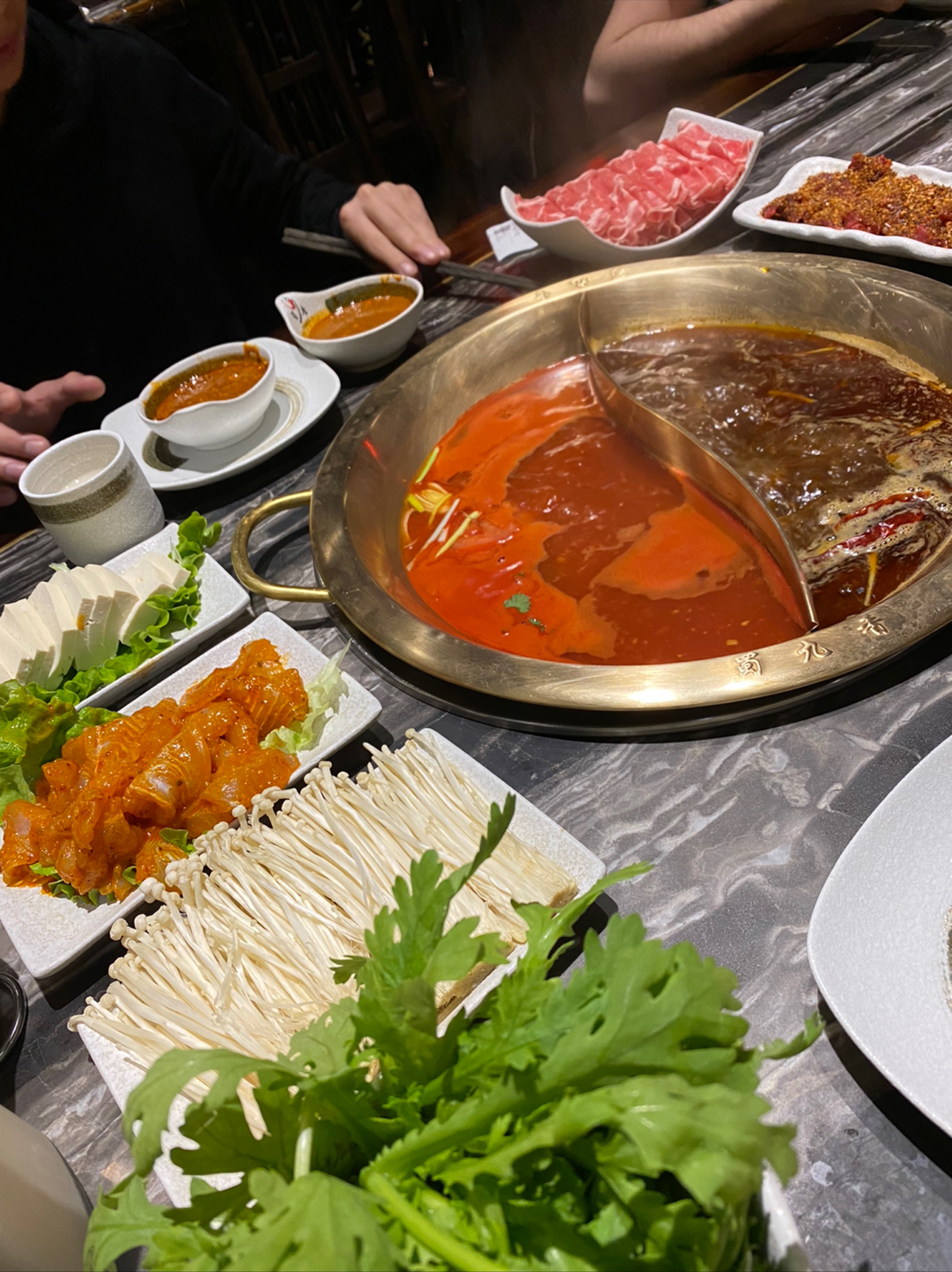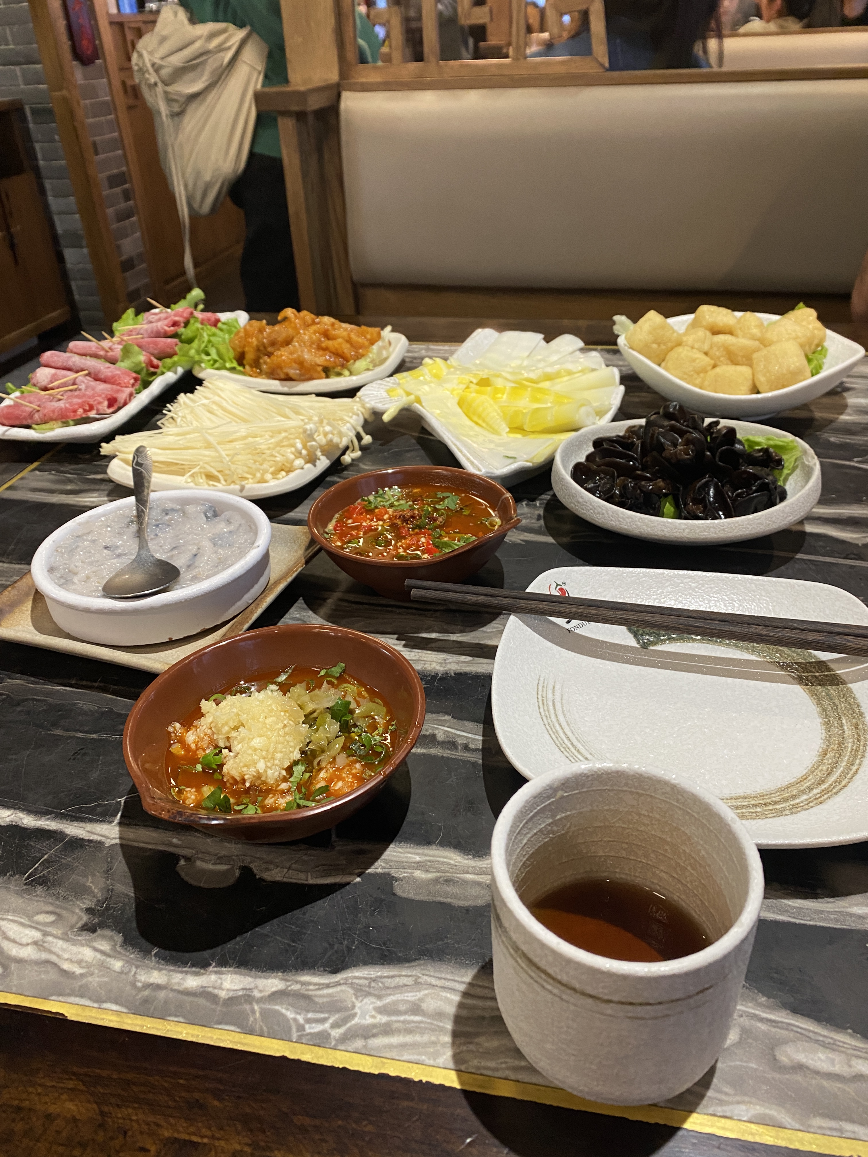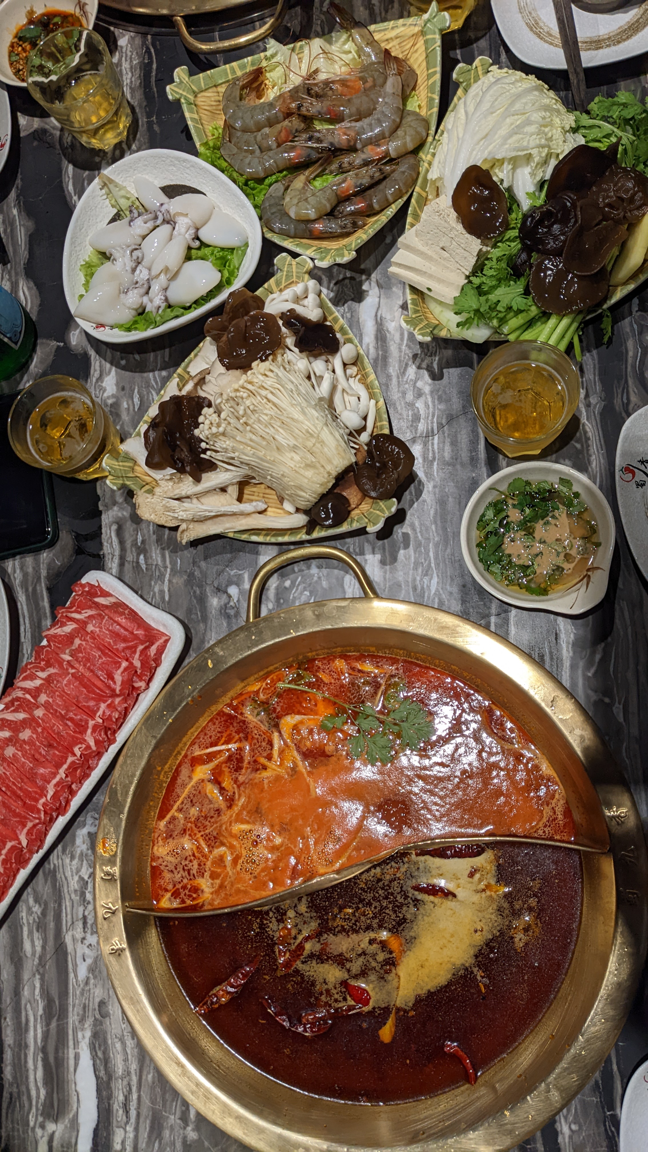 Fondue comme en Chine, tout simplement. J'y vais souvent avec mes collègues (chinois), et c'est une réussite à chaque fois. Si vous aimez le piment, je vous conseille niveau 1 de piment et ne mettez que de la viande dans le bouillon pimenté. J'ai vu des Français y mettre des nouilles et ça absorbe tout le piment. Déjà, en Chine les gens ne mettent pas des nouilles 😅