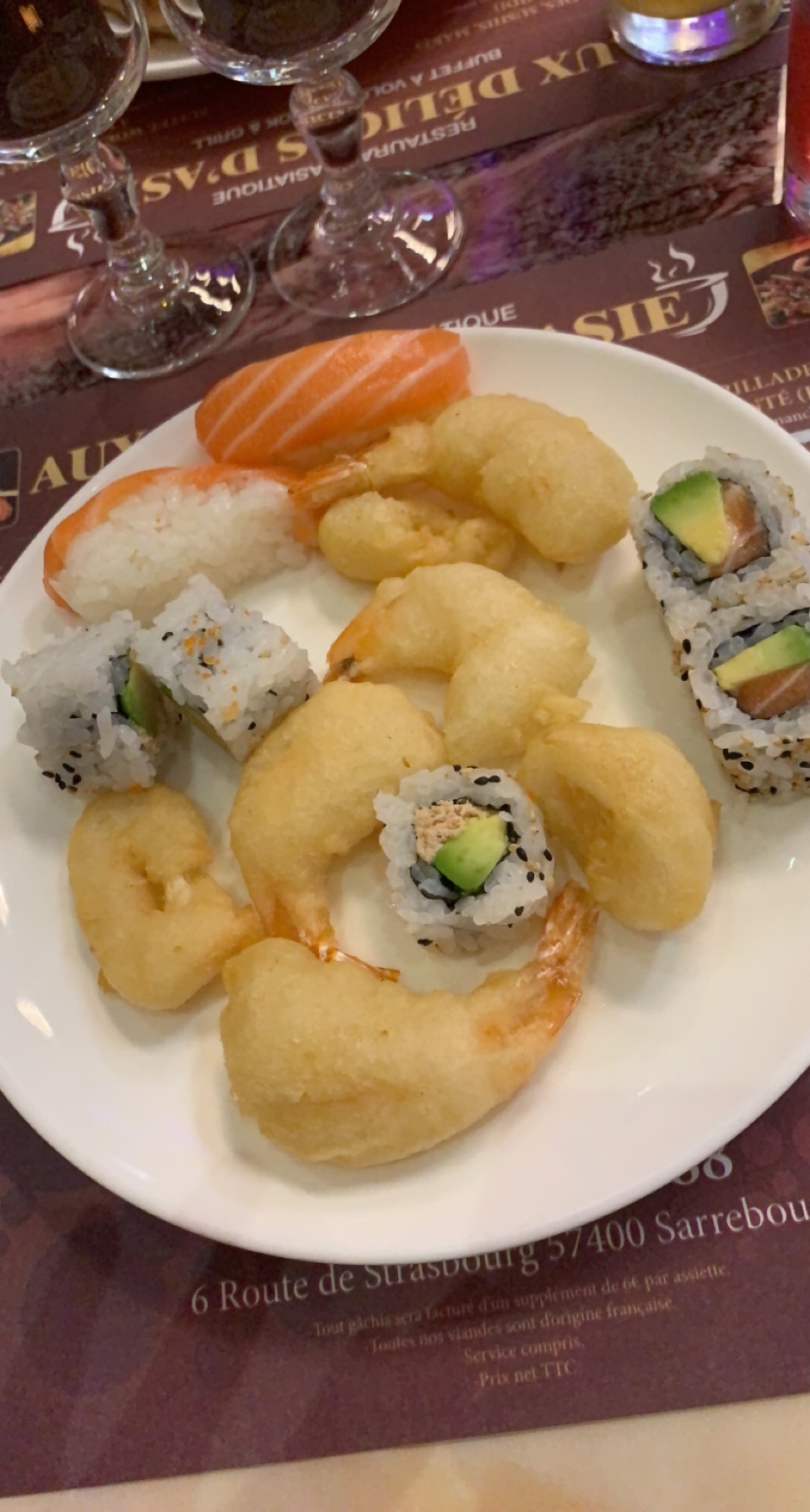 La qualité des produits est vraiment à revoir comparé à d’autres restaurants du même style comme à Brumath (ou ils sont top) le riz des makis ne sont pas super frais, le porc au caramel aucun goût, ni les nouilles chinoise. Les nems/samoussa etc sont bon, ça a était le seul point positif. Les serveuses, l’amabilité est à revoir. Un cheveux retrouver dans les bacs à glace … Vaut mieux faire quelques kilomètres de plus et aller à Brumath ou la qualité est là à tous les niveaux que chez eux.
