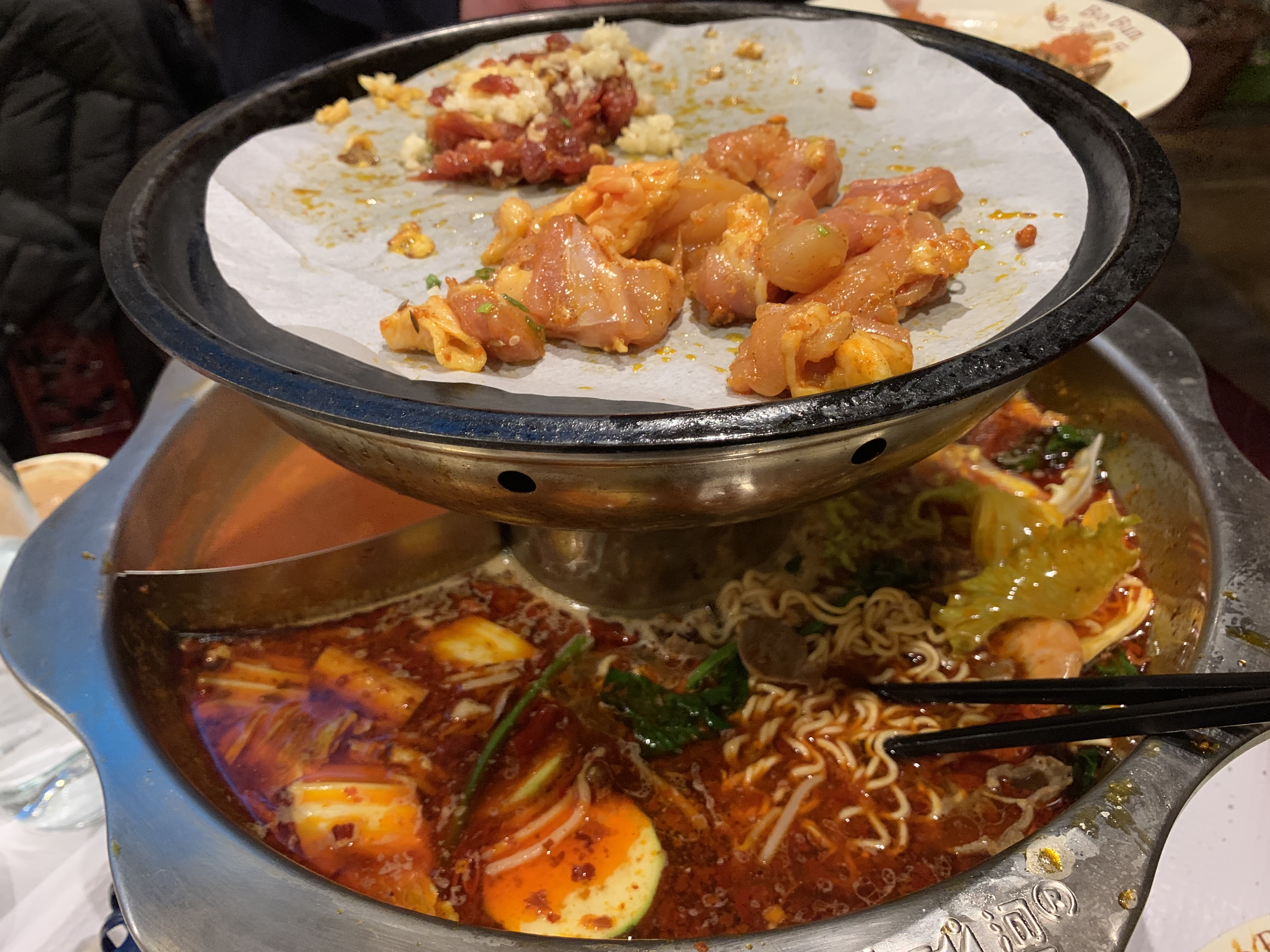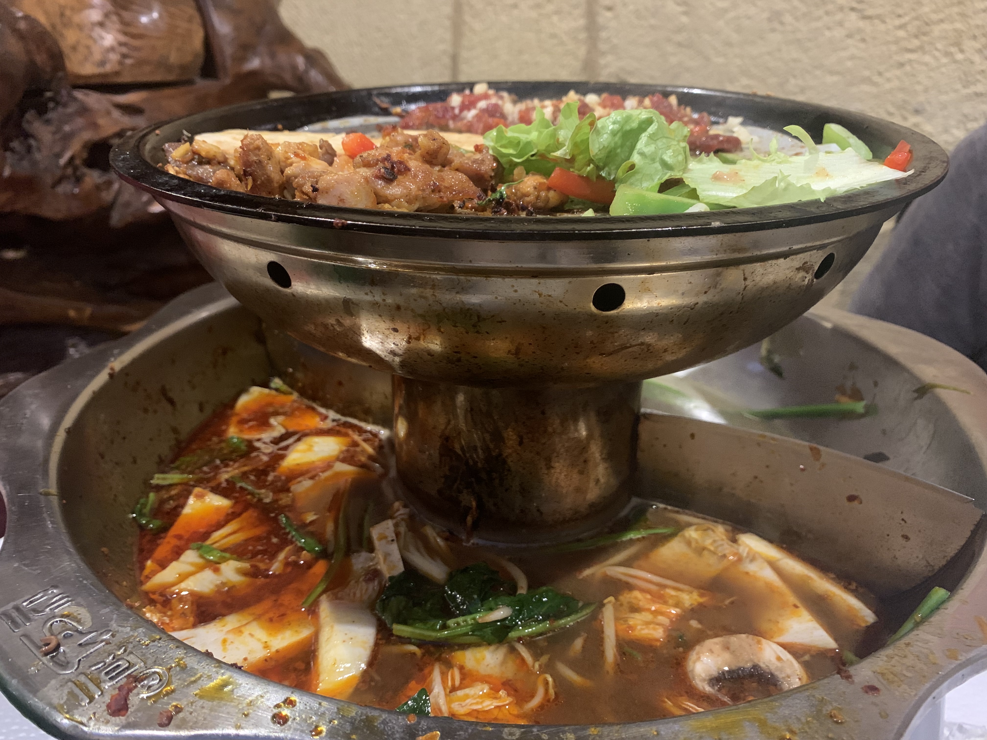 Fondue chinoise, commandée, à volonté pour le nouvel an chinois. Plats savoureux, généreux et soirée prolongée par un karaoké. Très bon moment entre amis.