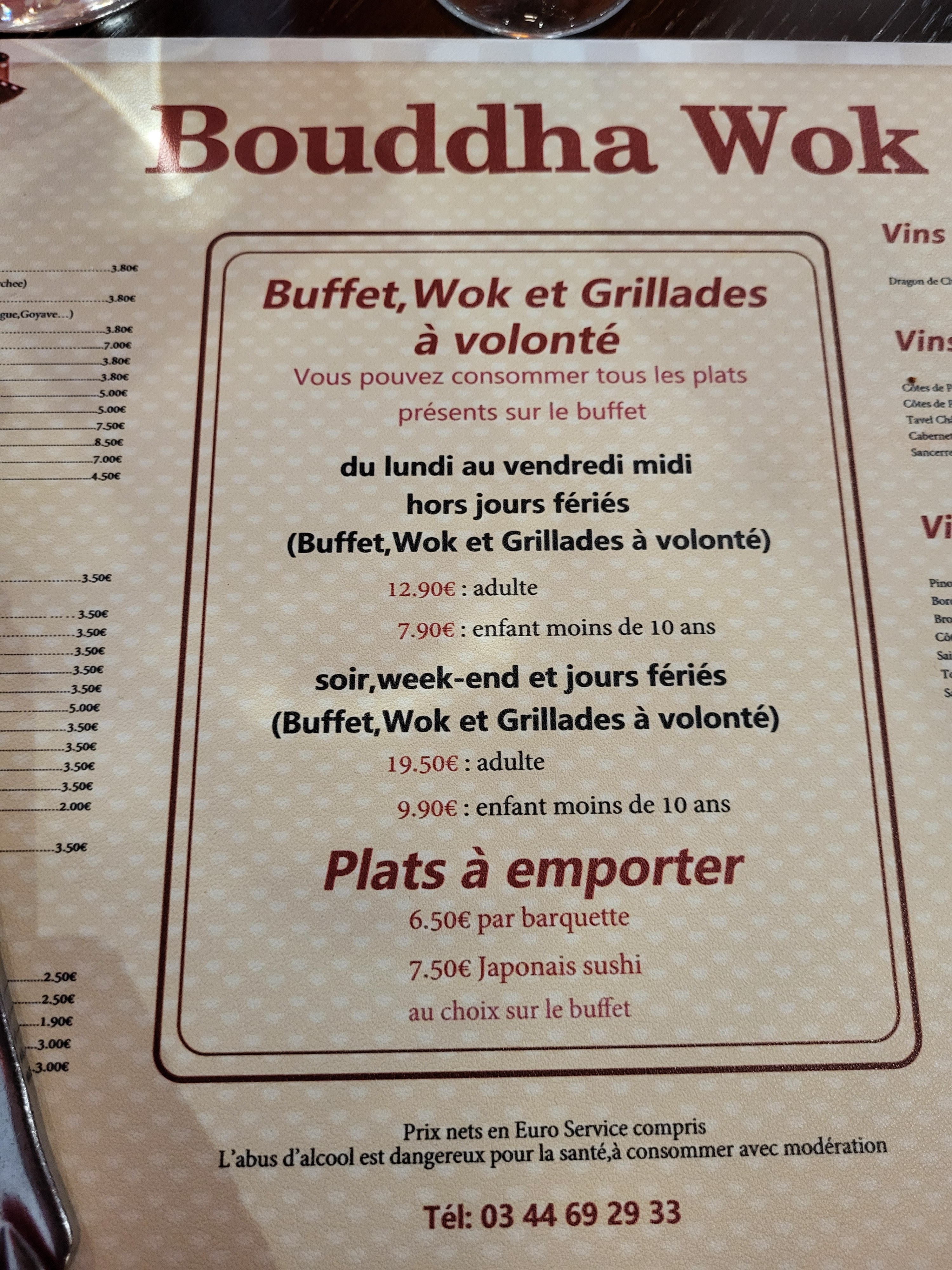 Le restaurant bouddha wok est un restaurant chinois a volonté, il est assez facile de se garé, cependant il est situé dans un coin isolé de la zone. Pour le service vous êtes prit rapidement en charge et on vous sert les boissons assez rapidement. Pour les entrées le choix est trop limité est la quantité aussi. Pour les sushis, makis, etc... la quantité est trop présente au buffet était trop limité, ainsi que pour les plats chauds. Pour finir les desserts même chose trop limité en choix. Et pour la qualité du buffets j'ai etait un peu deçu. Enfin l'ambiance du restaurant ne fait pas trop penser à l'ambiance Japonaise car c'est trop simple en décoration.