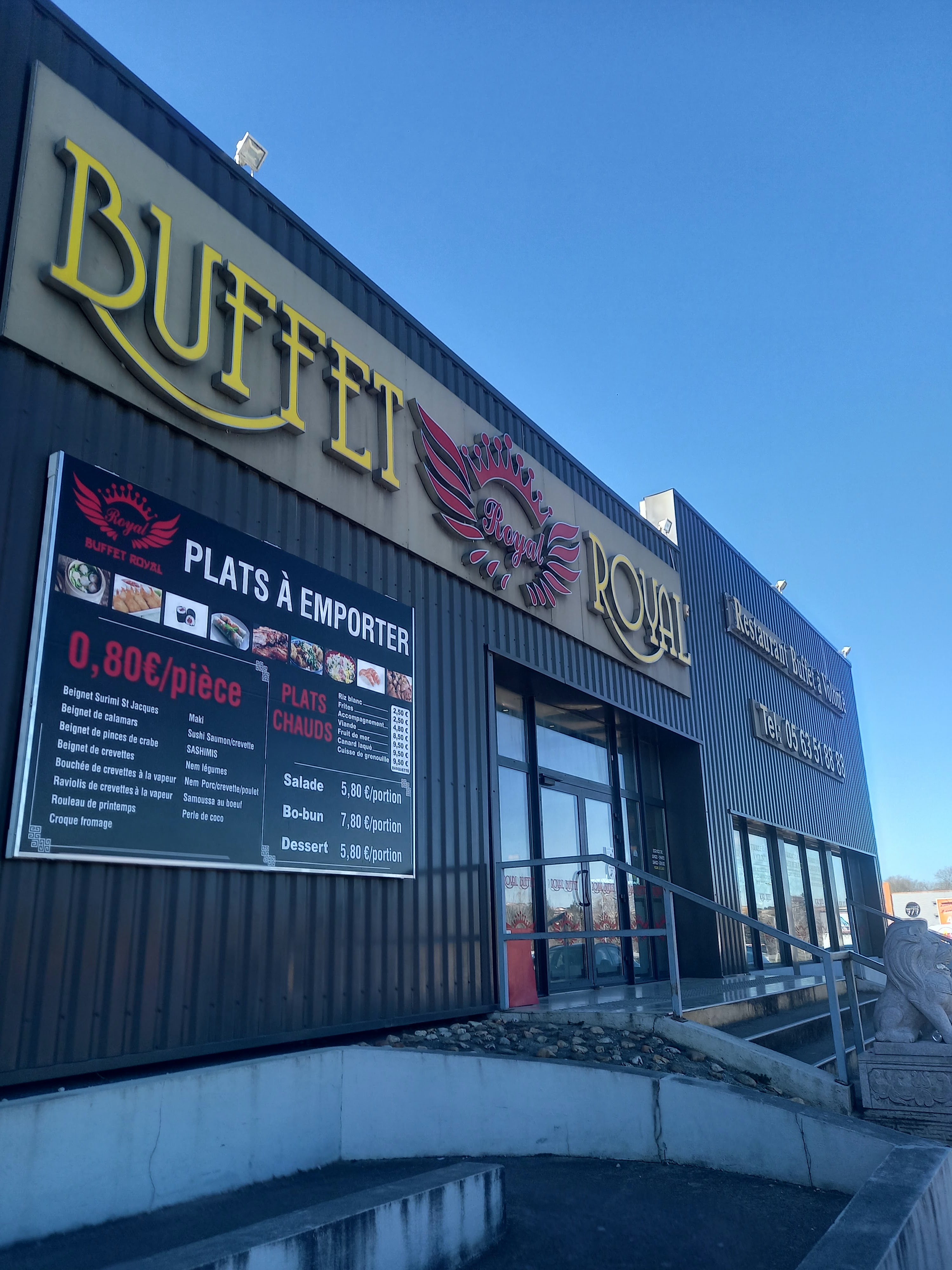Rien qui va pour un buffet royal,j'y suis allez en groupe de 8 et nous sommes ressortie tous déçu. -Pas de choix en plat -Certain aliment pas frais -Pas d'etiquette sur les produit pour savoir ce que c'est -Reaprovision du fromage pas fait -cuisson de la viande non correct Premiere et dernier fois que j'y vais Je deconseille.