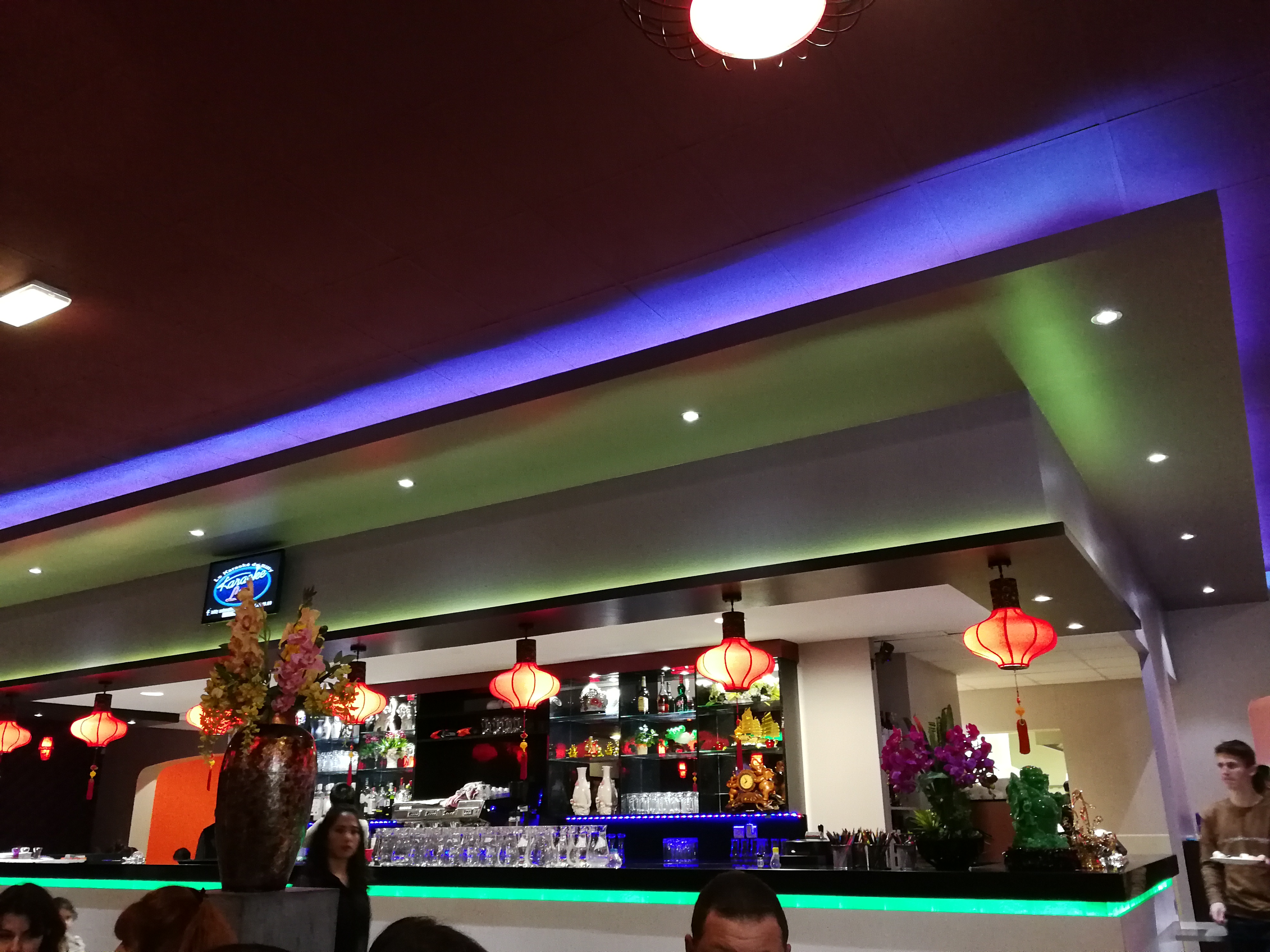 Endroit très spacieux. Bonne cuisine. Choix, fraîcheur, variété des plats . Vendredi et samedi à partir de 21h karaoke sympathiquement animé par un pro. L'idéal pour une soirée de détente et d'animation entre amis. Problème de gestion de l'arrivée des clients à régler rapidement par la direction pour éviter les interminables et envahissants bouchons à l'entrée et la gêne évidente des clients de la 1ère tablée qui ne peuvent ni accéder tranquillement à leur table après une visite au buffet, ni même dîner sereinement à cause de la proximité du bouchon...