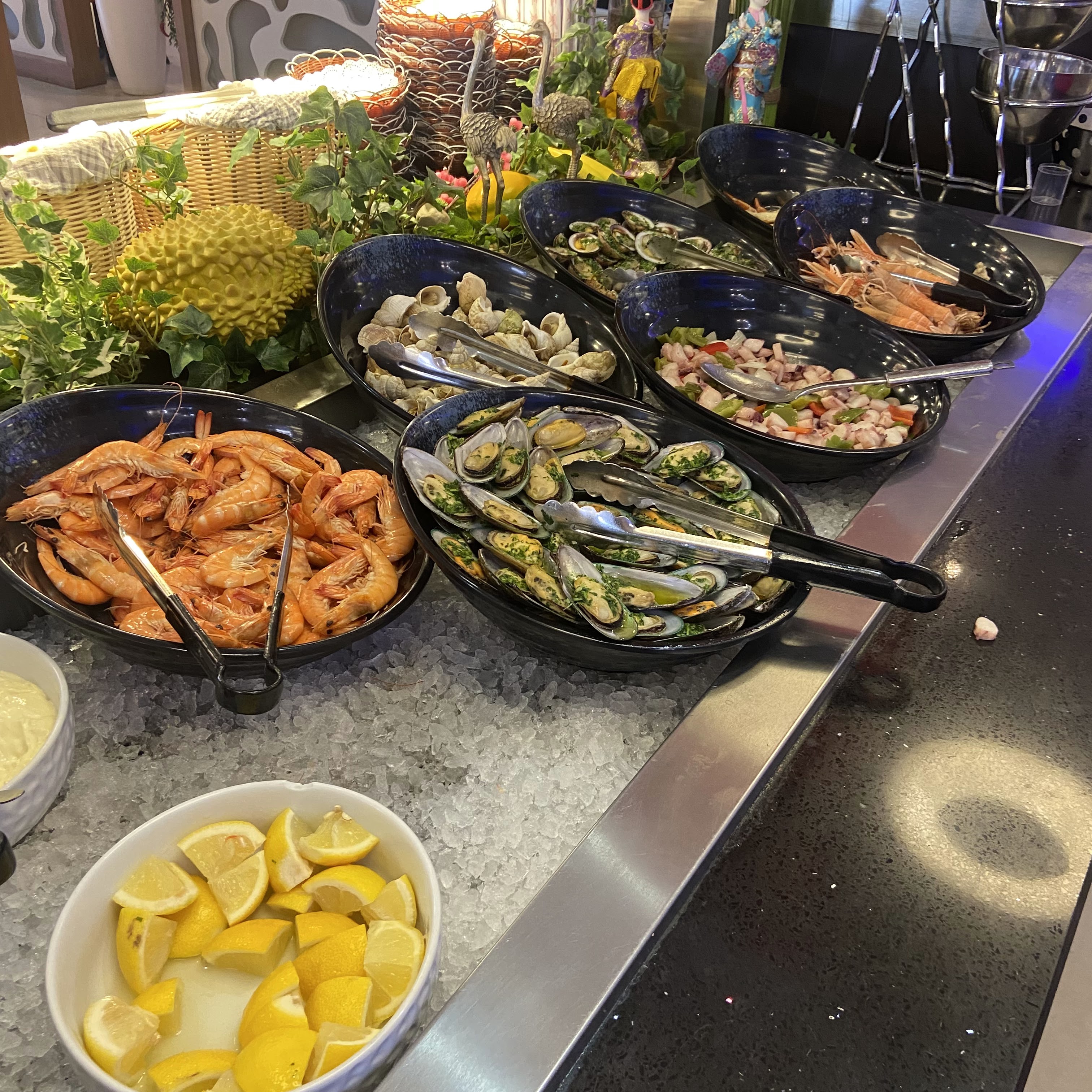 Spacieux un personnel qui vous installent des l entrée..des plats de toutes sortes des viandes des légumes sublimes des entrées. Du poisson. Des crevettes a volonté. Des moules ect ect . tout et bon je me suis régalée. La compétences et la qualité sont vraiment leur priorité et ainsi que le client. De brave personnel au sourire a peine la table ils anticipent.. J irais avec des amies et en famille... A ne pas manqué pour déguster les plats de l Asie .. allez y vous n allez pas le regretter même avec vos enfants.