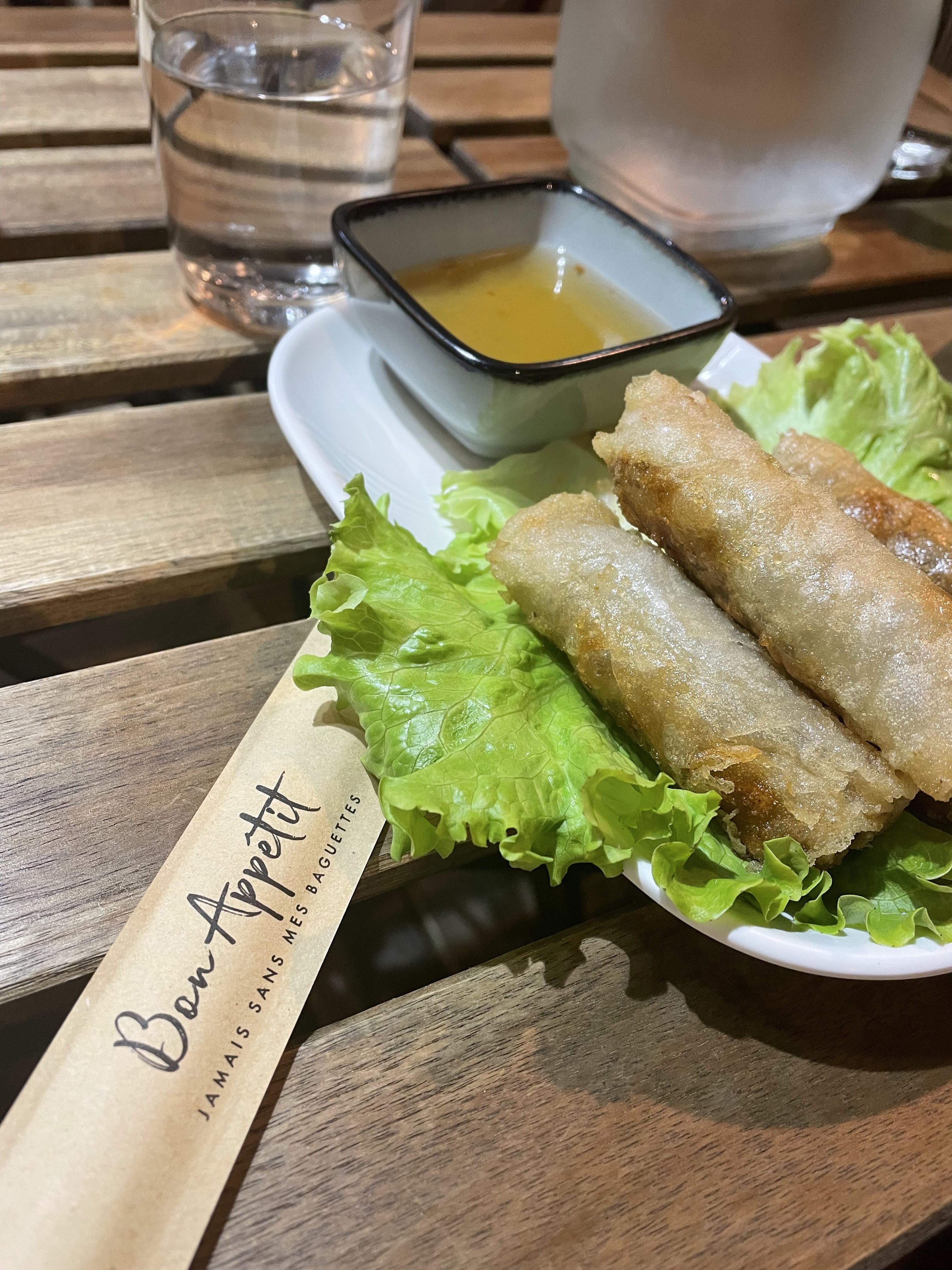 La soupe est délicieuse , les nems aussi