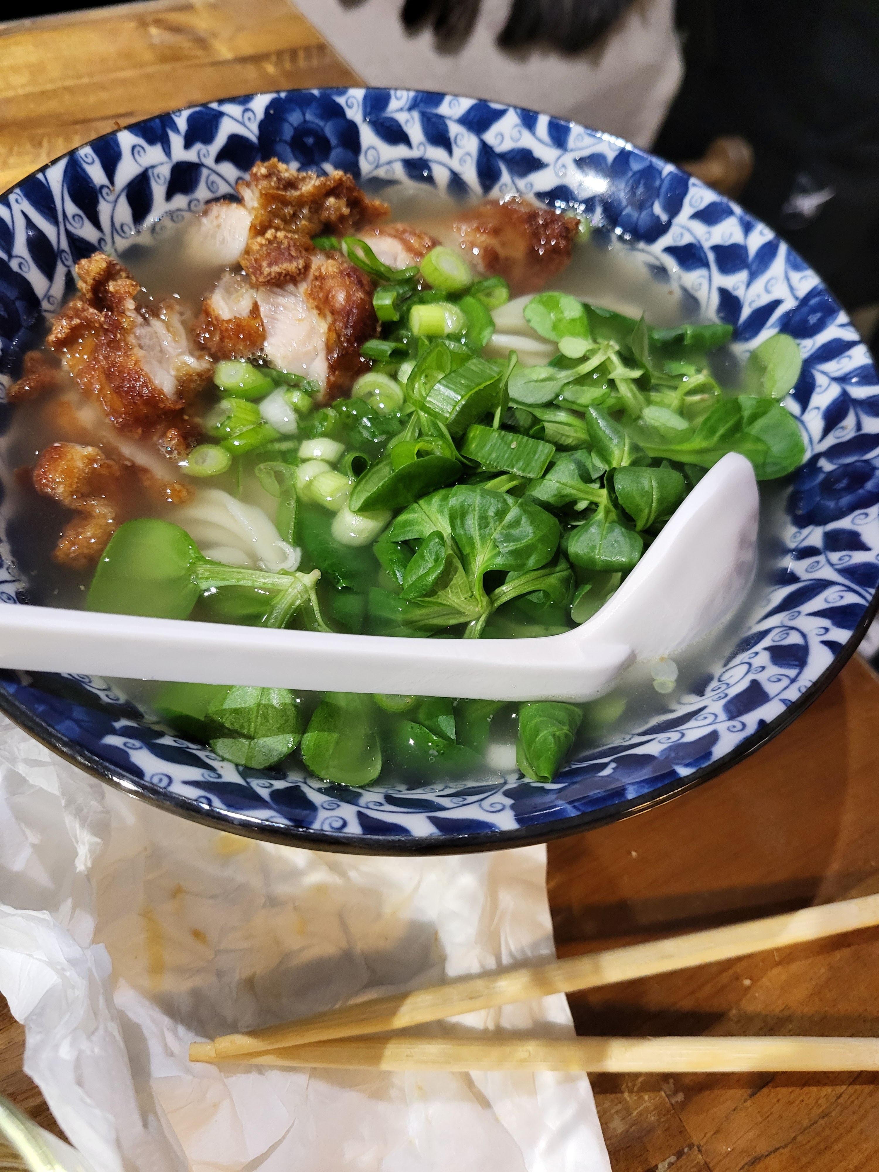 Bon rapport qualité/prix, j'ai pris une soupe ramen au canard laqué, c'était très bon mais la viande et les légumes étaient coupés un peu trop grossièrement et le bouillon un peu gras... à améliorer! 😉