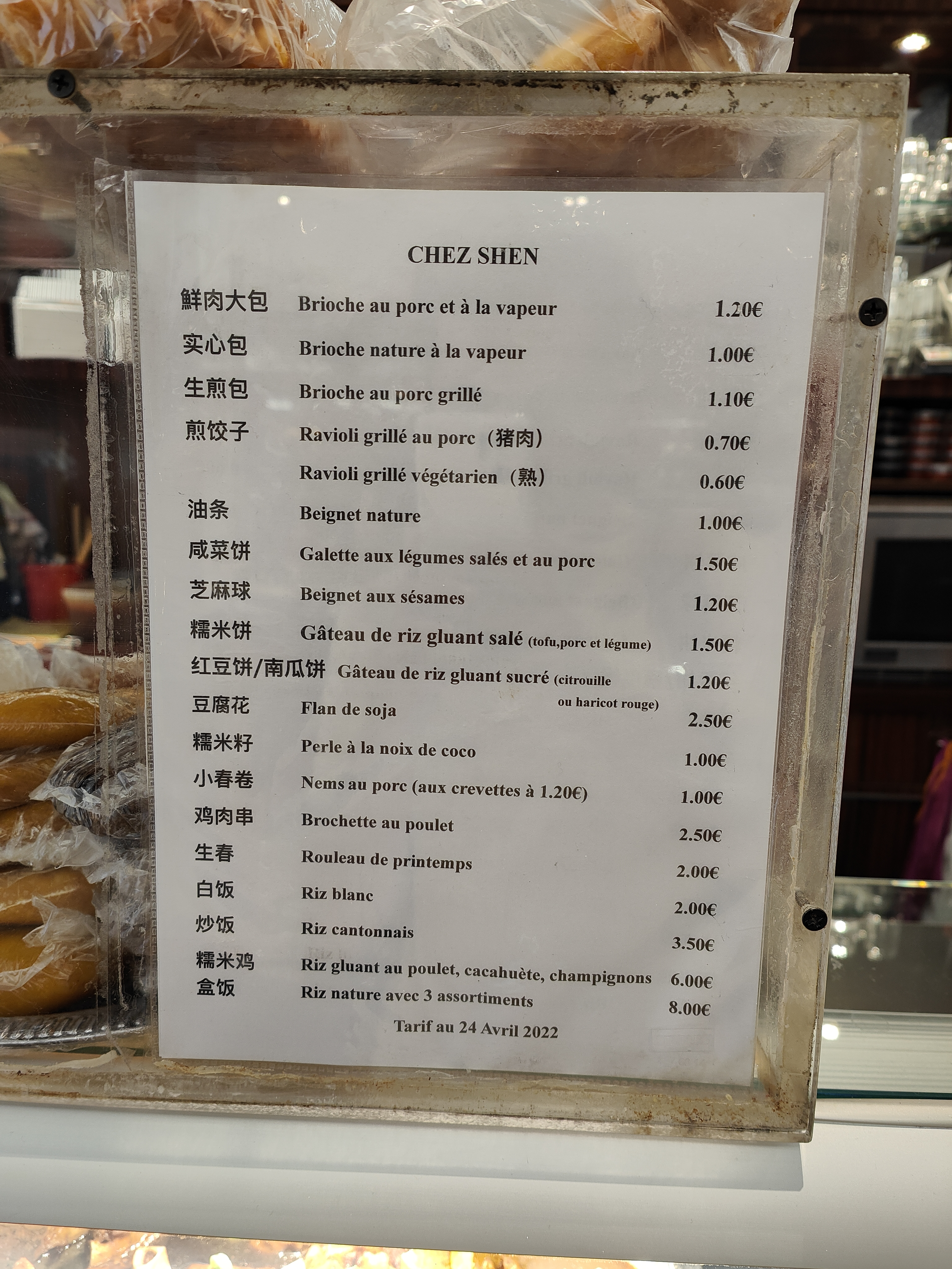 Je me promenais avec un pote à la suite de la manif GJ du samedi et je tombe nez à nez avec ce restau/cantine. Amateur de cuisine asiatique et particulièrement chinoise je pousse la porte et demande à la charmante tenancière Deux brioches vapeurs au porc. Manque de chance pour moi, y'en a plus... Elle me propose alors de me rabattre sur les beignets aux porcs, je suis ses conseils et pour 1 euro la pièce je risque pas grand chose. C'est sans doute une des meilleures choses que j'ai mangé de ma vie. Camarades étudiants, foncez.