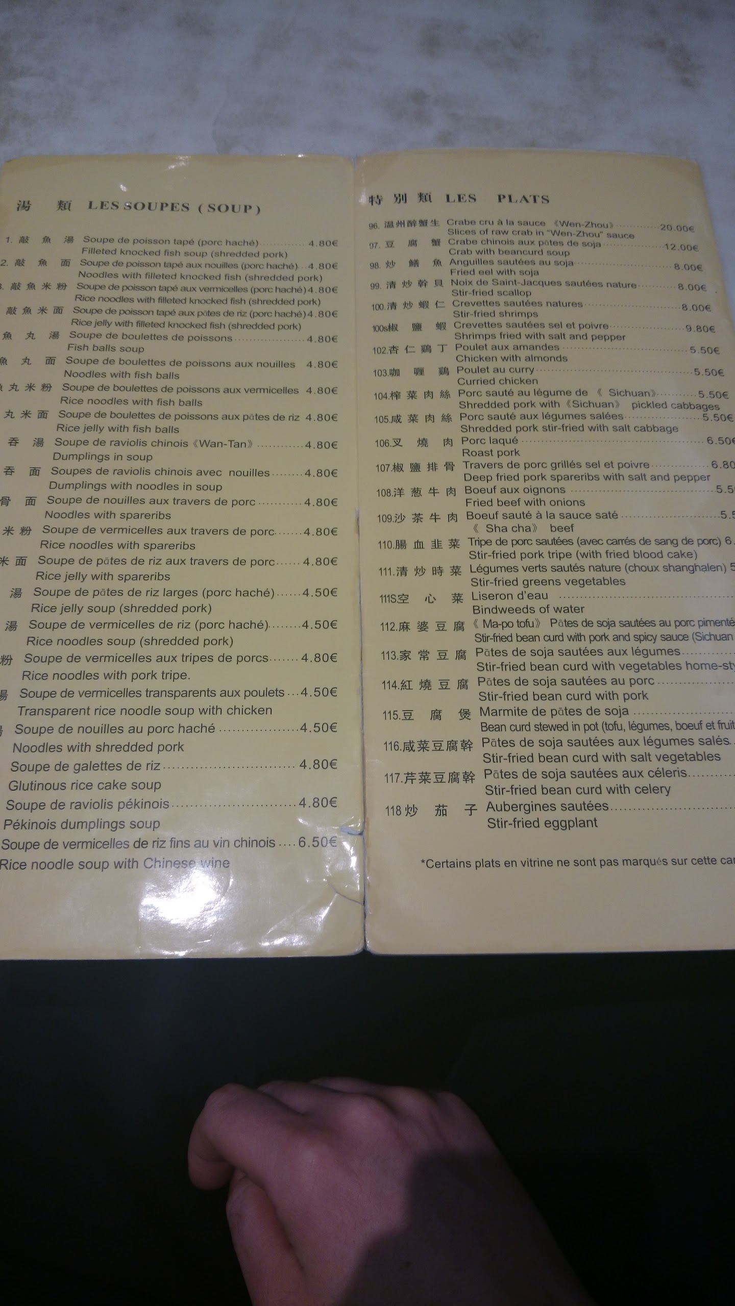 Il ne faut pas choisir certains plats, si on ne veut pas manger des os de porcs brûlés dans une sauce noire (travers de porc caramélisés). Après, pour le prix, on peut trouver des choses très correctes...