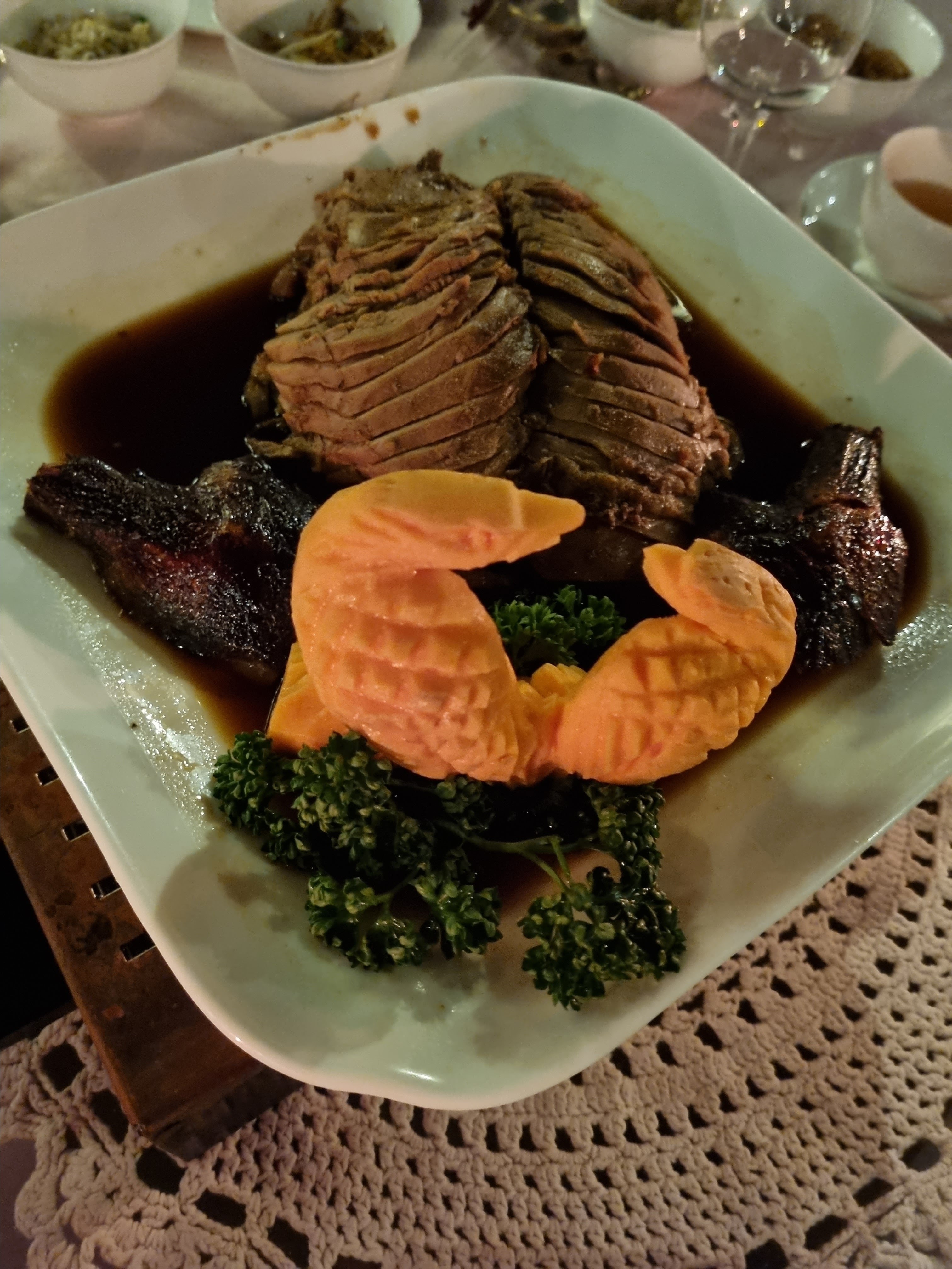 J’y ai mangé il y a une semaine, à l’improviste, nous étions deux et nous avons pris la spécialité du Chef, son canard laqué en deux services. Le sourire est instantanément arrivé dès la première bouchée. C’est révélateur, une peau magnifique croustillante, bien caramélisé, un laquage gourmand, qui flatte le palais. Une texture de chaire juteuse, on est dans un vrai niveau gastronomique. De toutes évidences le meilleur canard laqué de la capitale, et sûrement au delà de ses frontières. Je ne rêve que d’une chose, c’est de revivre ce moment. Merci pour votre accueil, et je souhaite une belle expérience comme celle que j’ai vécu aux prochains visiteurs.