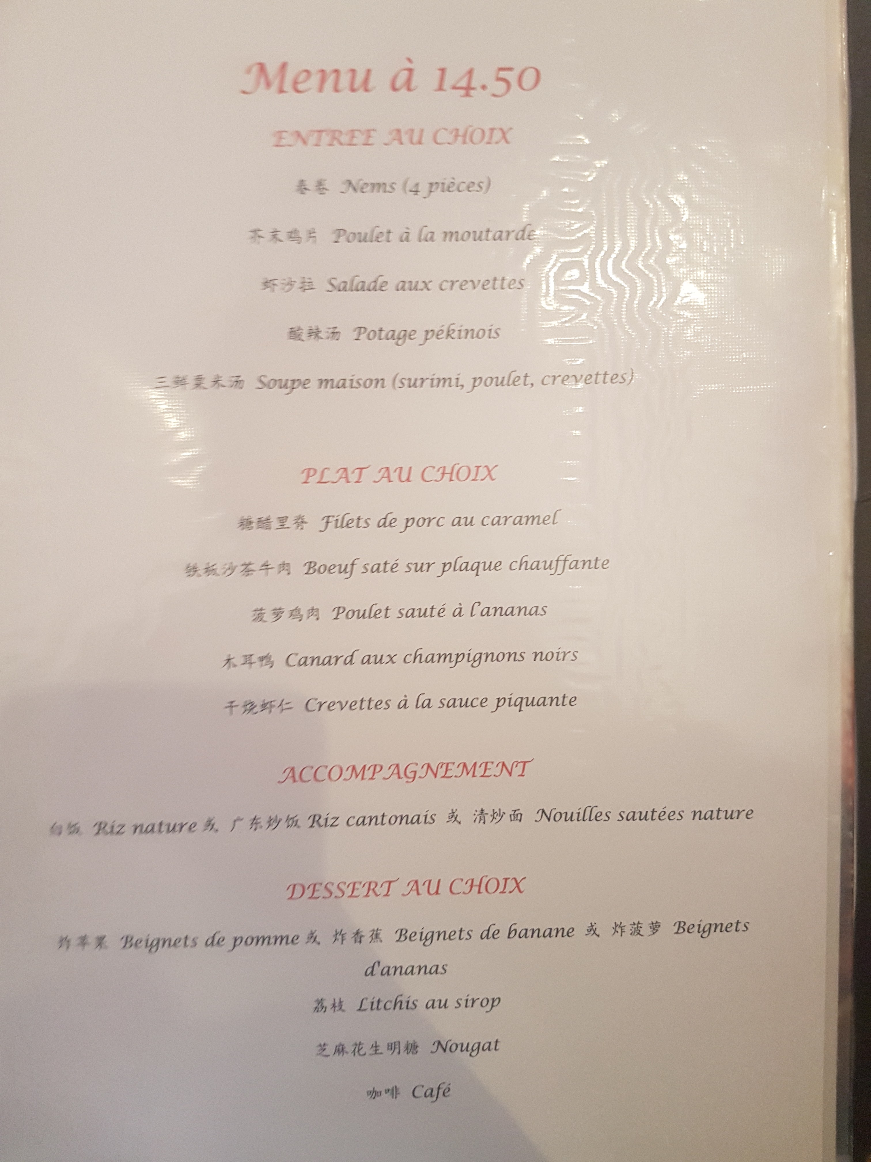 Tres bon restaurant chinois. Les plats sont très bon, une très bonne surprise compte tenu du fait qu il est situé dans un quartier plutôt calme