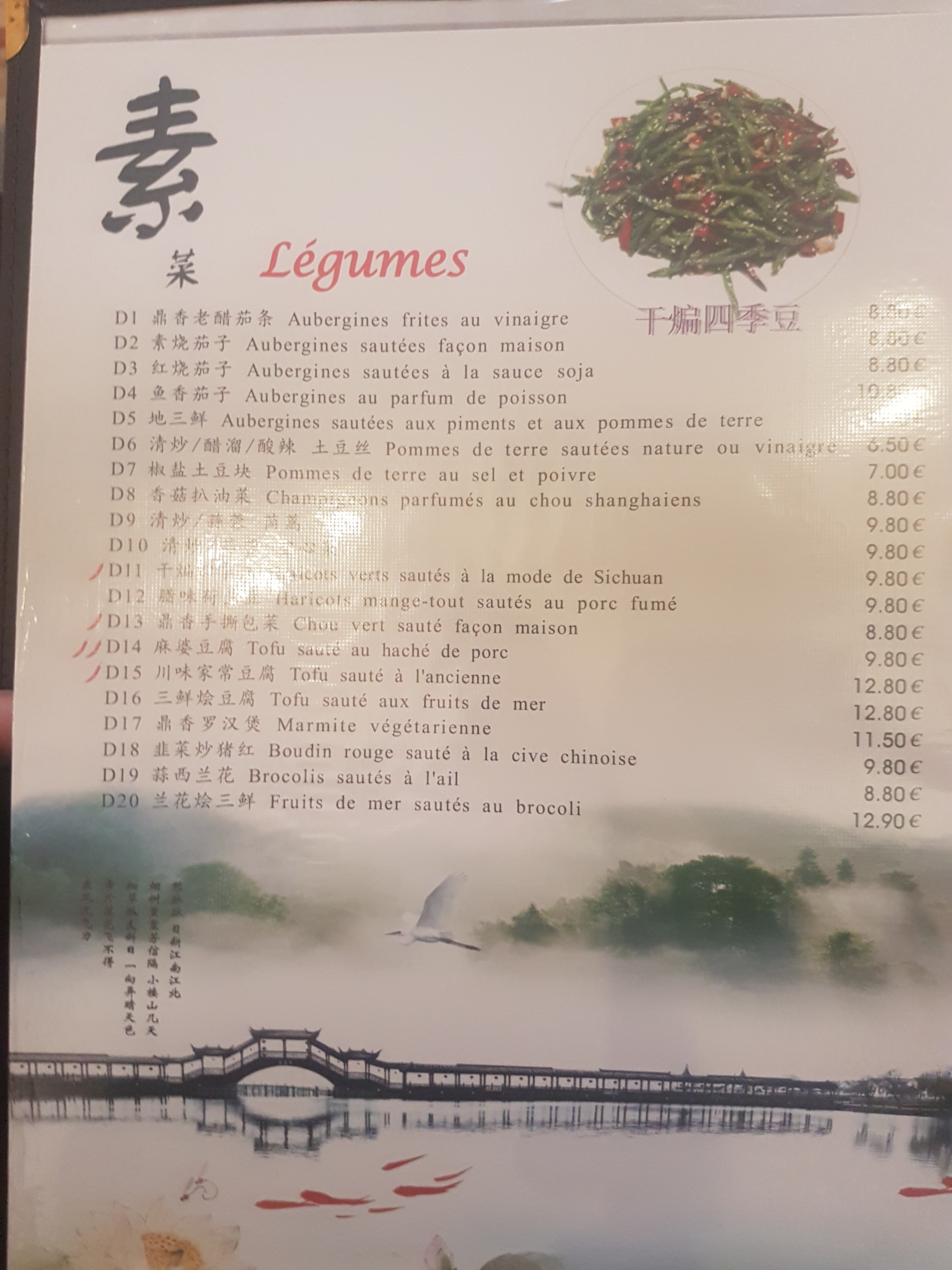 Plats typiquement chinois, dans un cadre digne de Pékin. Spécialités inconnues et originales. Idéal pour les végétariens et vegans. A l'entrée se trouve souvent des gâteaux fondants au chocolat végétalien. Rien a dire. Un restaurant qui ne paie pas de mine mais qui vaut le coup !