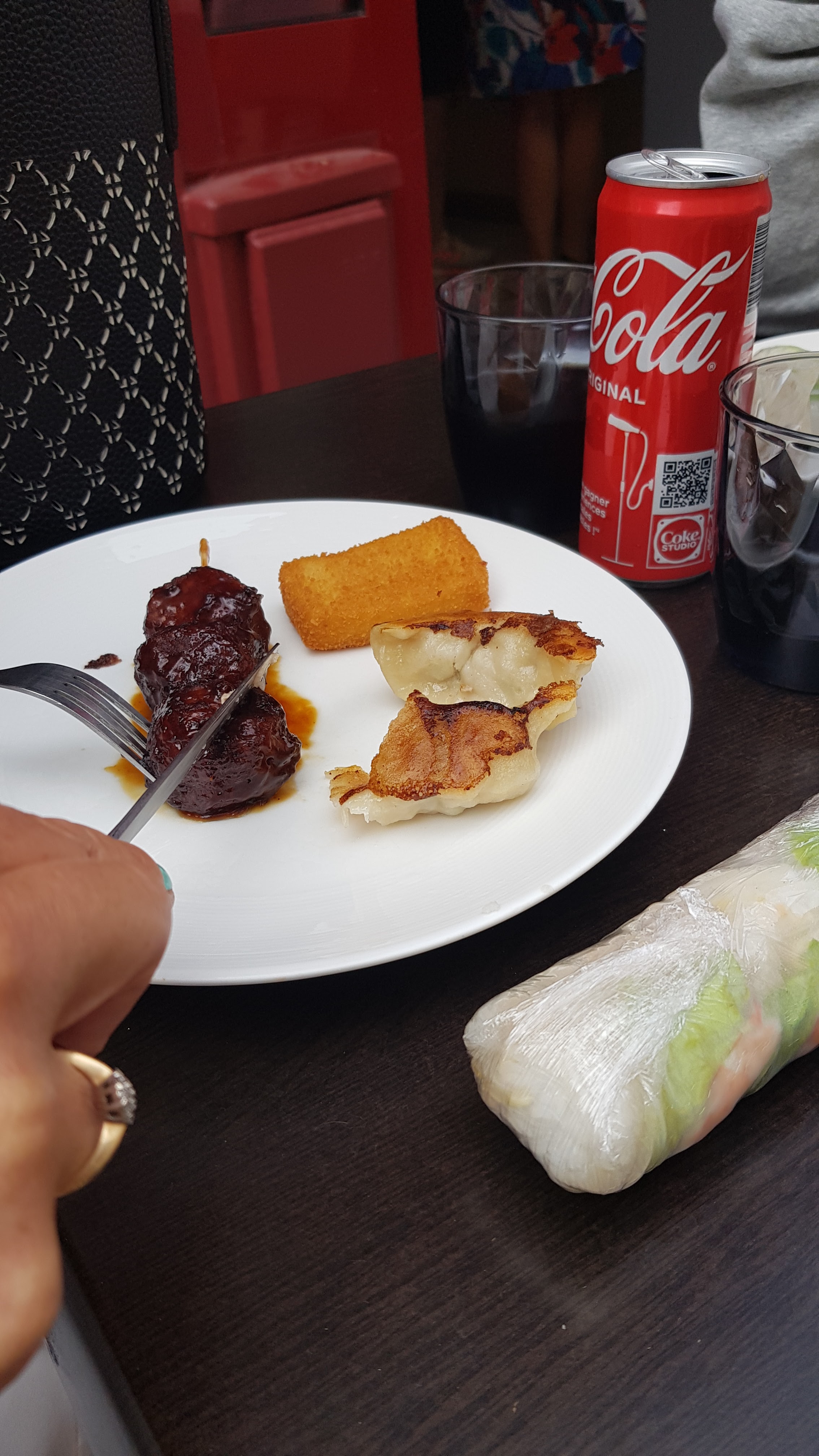 C'est une belle expérience de manger dans cet établissement : tous les plats que nous avons testés étaient délicieux et bien servis ! Nous avons choisi de manger au restaurant, dehors, en terrasse. L'endroit est calme par rapport aux rues à proximité. Nous avons eu un rouleau de printemps, des gyozas au poulet, des raviolis au porc et des raviolis à la vapeur de crevettes, ainsi qu'une salade de poulet. En dessert, nous avons eu une perle de riz coco. Le personnel est très gentil et agréable. Vous pouvez ajouter une sauce au repas. Il y a beaucoup de plats différents disponibles. Certaines sont vendues à l'unité (une pièce coûte un certain prix) et d'autres, comme les nouilles ou les préparations de viande, sont vendues à un certain prix les 100 g. Nous avons été vraiment enchantés de notre dîner, et pour un total très très accessible. Nous y retournerons, c'est sûr !