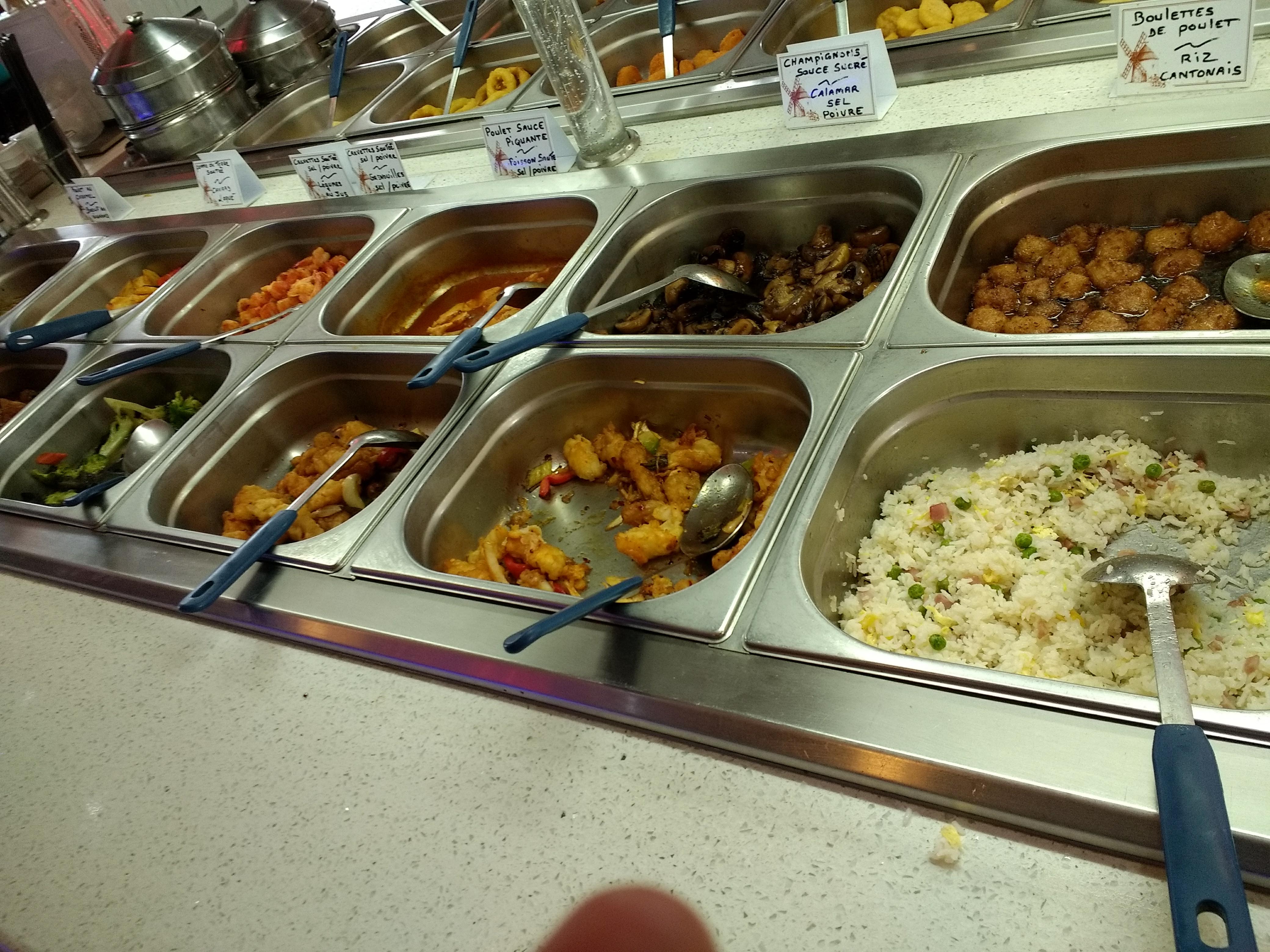 Table de 3 un samedi midi Le choix est large, les produits sont frais et très bon. Bonne qualité de plats maison, rouleaux de printemps extra, grand choix de desserts, pâtisserie, glaces, friandises ...bref .. à refaire Personnel agréable et professionnel