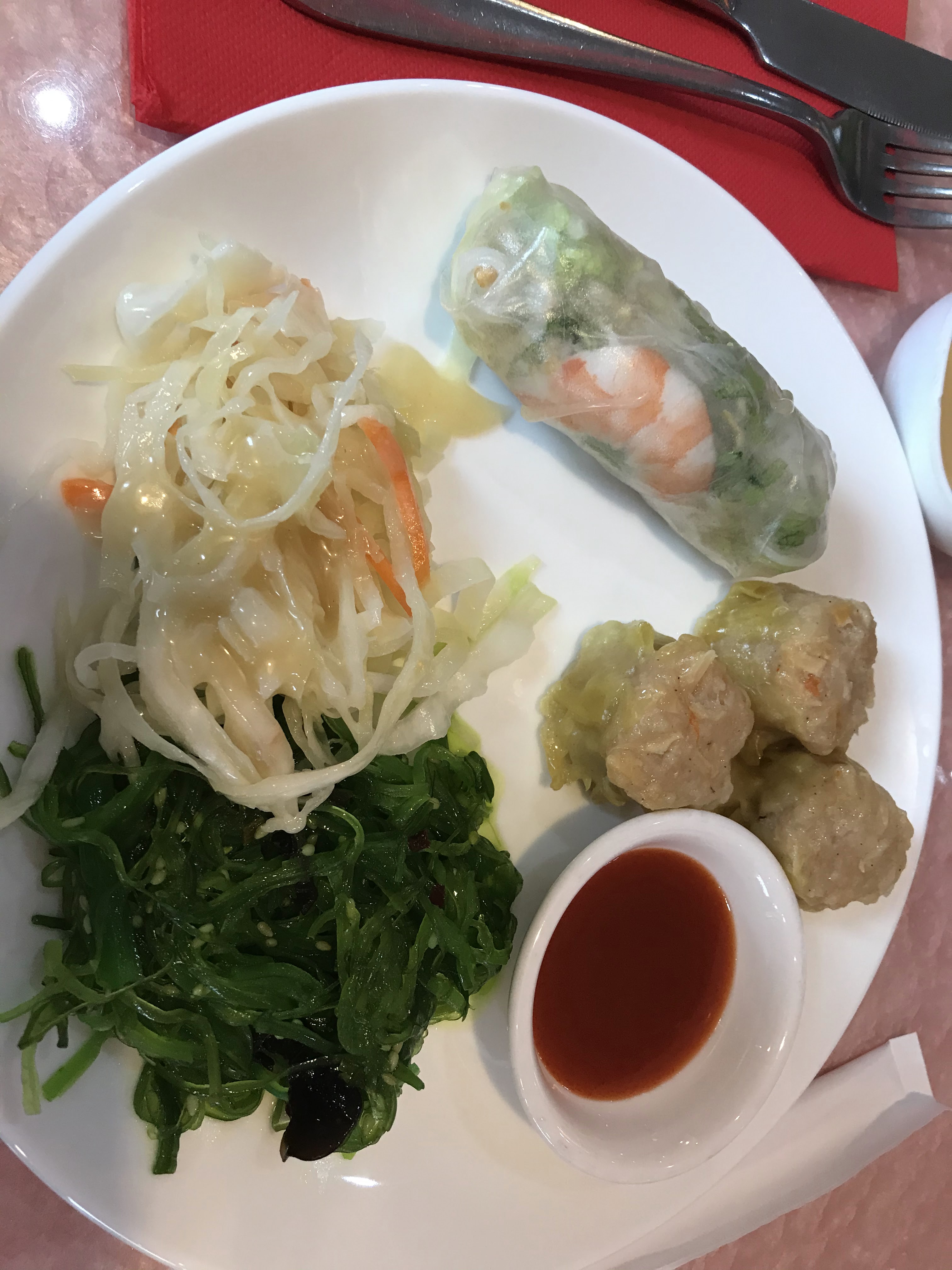 Buffet du restaurant vraiment bien garni. Les boulettes vapeur sont vraiment très bonnes, ainsi que les sushis. Je mets un petit bémol sur la partie porc au caramel et les autres, les plats n'était pas très très chauds, il n'est donc pas très agréable de manger cela froid. La partie dessert est en revanche très variée. Pour le prix, le restaurant est vraiment raisonnable. 16 euros pour un buffet à volonté, je recommande.