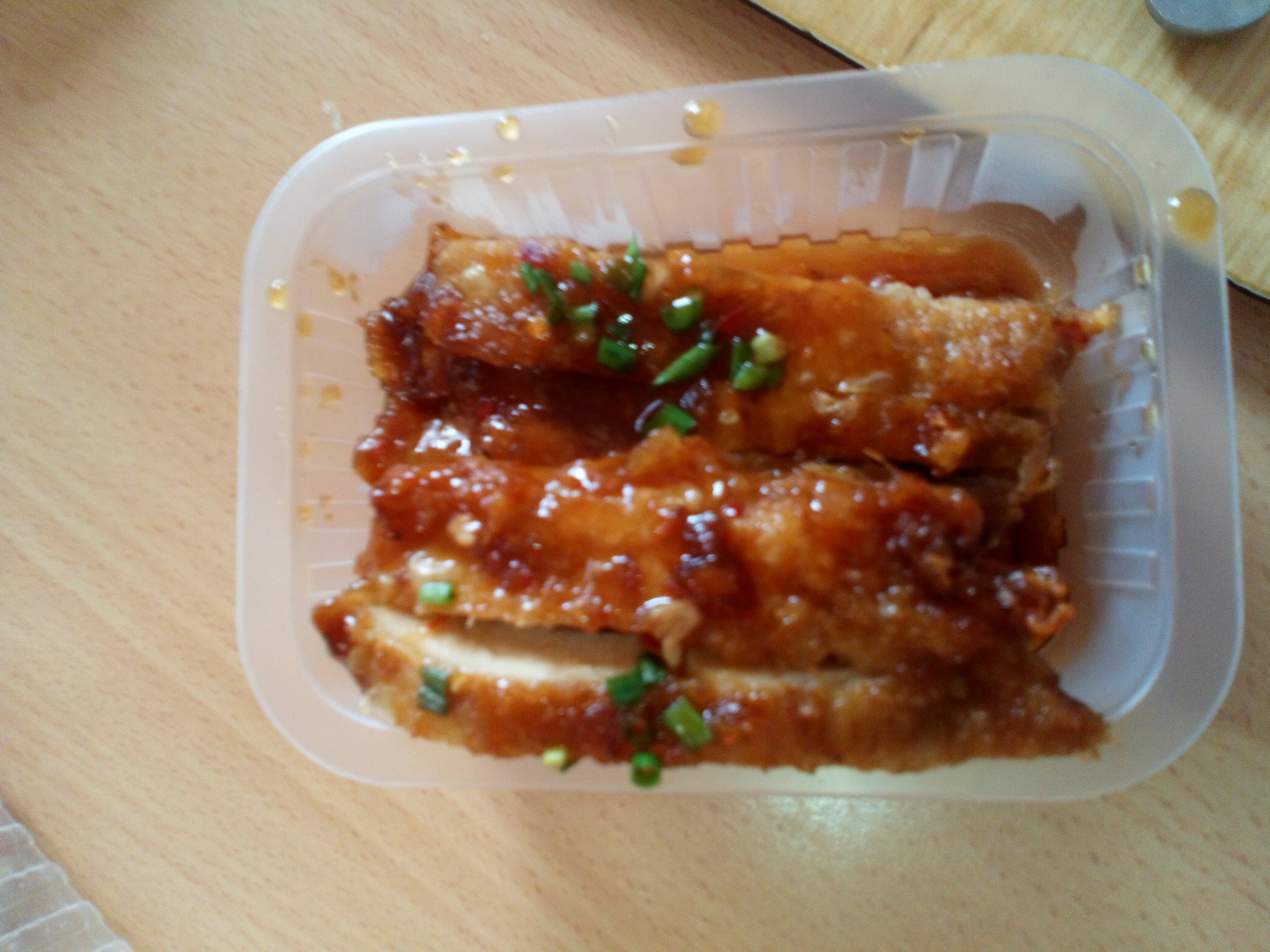 Porc au caramel avec trop de caramel🤢et pas assez de poulet 😭 idem pour les nems au poulet les légumes sont prédominant