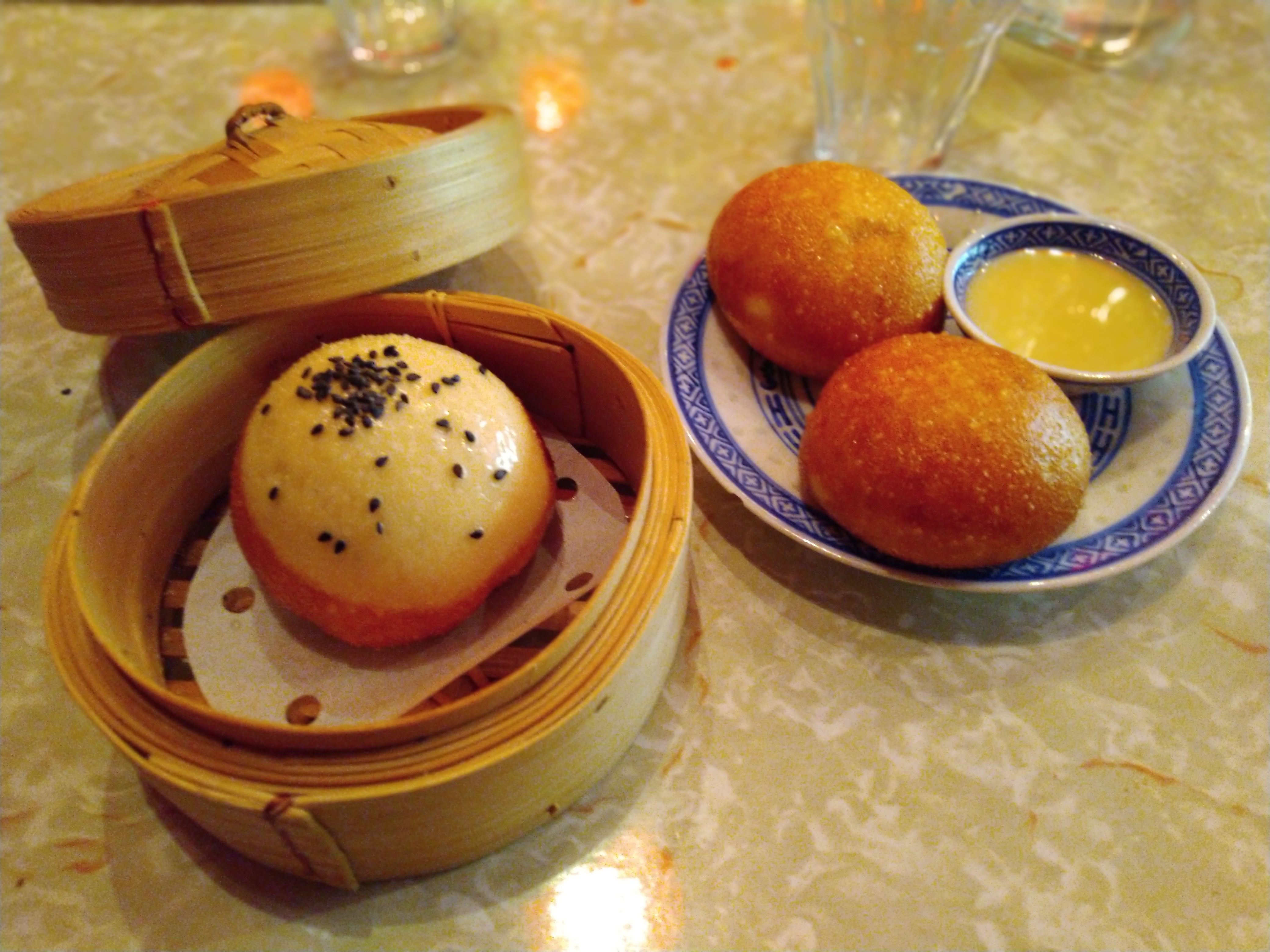 Repas assez authentique, ambiance très adaptée à l’Occident, ce qui est sûrement un bon choix pour les clients qui souhaitent rester dans un cadre plus « connu » , Canard laqué excellent, service vraiment sympa. Cocktails à améliorer (un peu fade pour les 3 que nous avons commandé) Xiaolong bao excellents, très similaires à ceux qu’on consommait en Chine. Légumes aussi très authentiques, un peu salés.