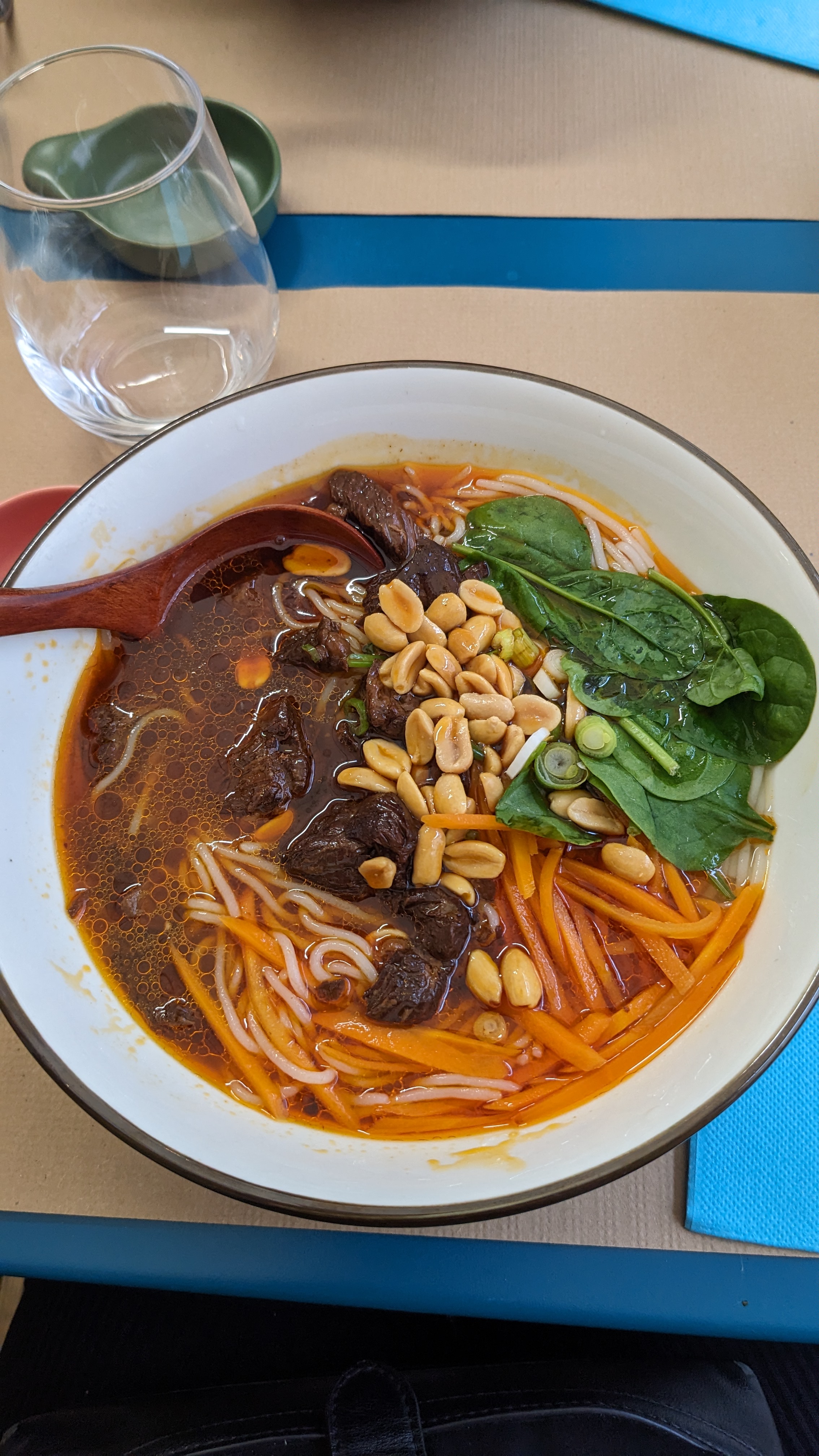 Je suis ravi d'apprendre que vous avez passé un excellent moment chez nous et que vous avez apprécié notre soupe au boeuf piquant. Nous sommes également heureux que notre personnel ait été gentil et généreux, car nous mettons tout en oeuvre pour offrir un service de qualité supérieure à tous nos clients. Nous sommes fiers de proposer des plats délicieux et savoureux, et nous sommes ravis que cela ait été le cas pour vous. Merci d'avoir pris le temps de partager votre avis et de nous recommander. Nous espérons vous revoir bientôt chez nous pour découvrir de nouveaux plats savoureux.