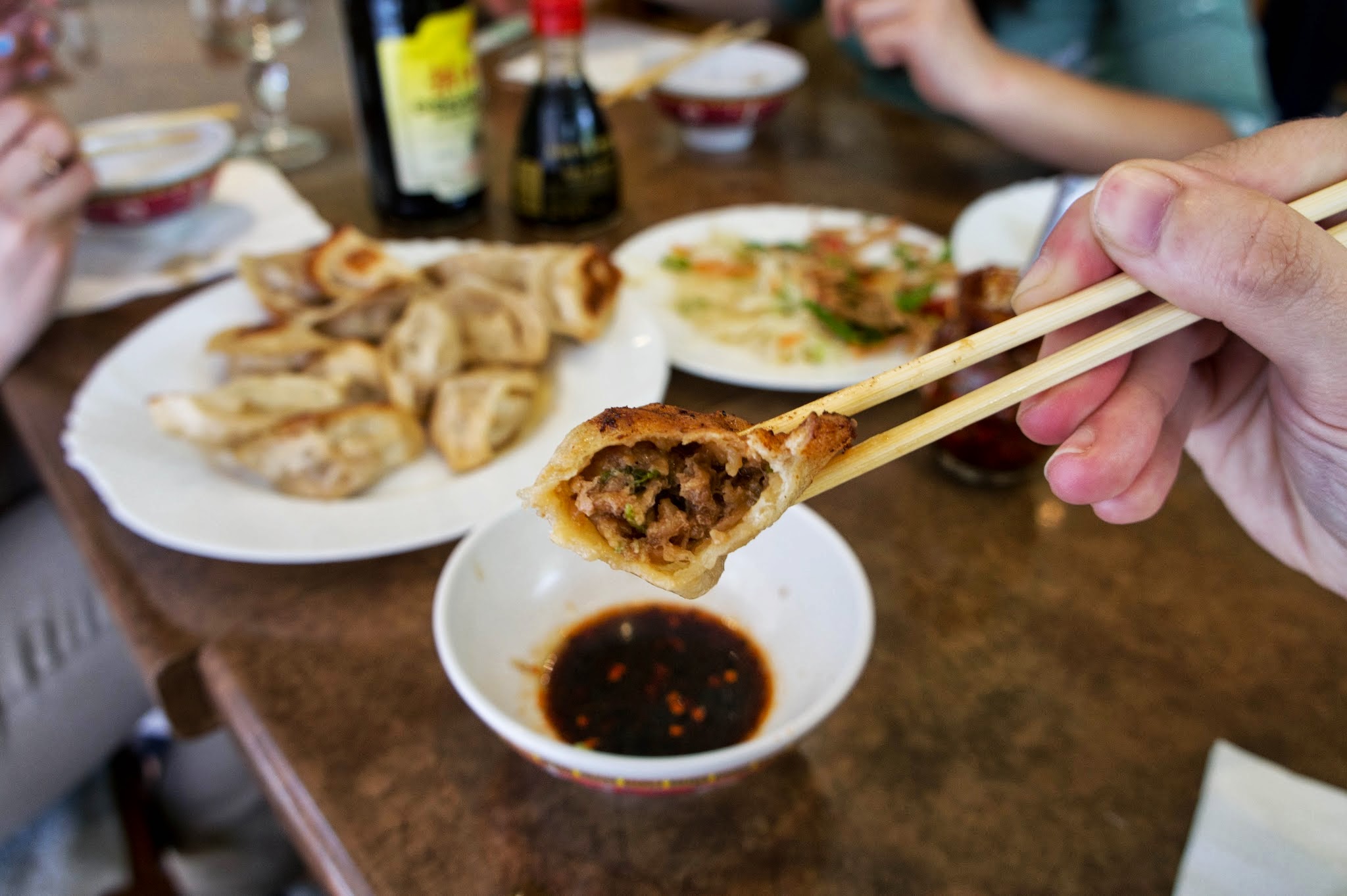 Voilà un très bon endroit pour les raviolis chinois (饺子). Il faut parfois attendre un peu quand c'est plein, mais ça vaut le coup. Grillés ou bouillis, on distingue bien les goûts différents. En plus, la pâte est bonne ! 谢谢你们,很好吃!我再去!