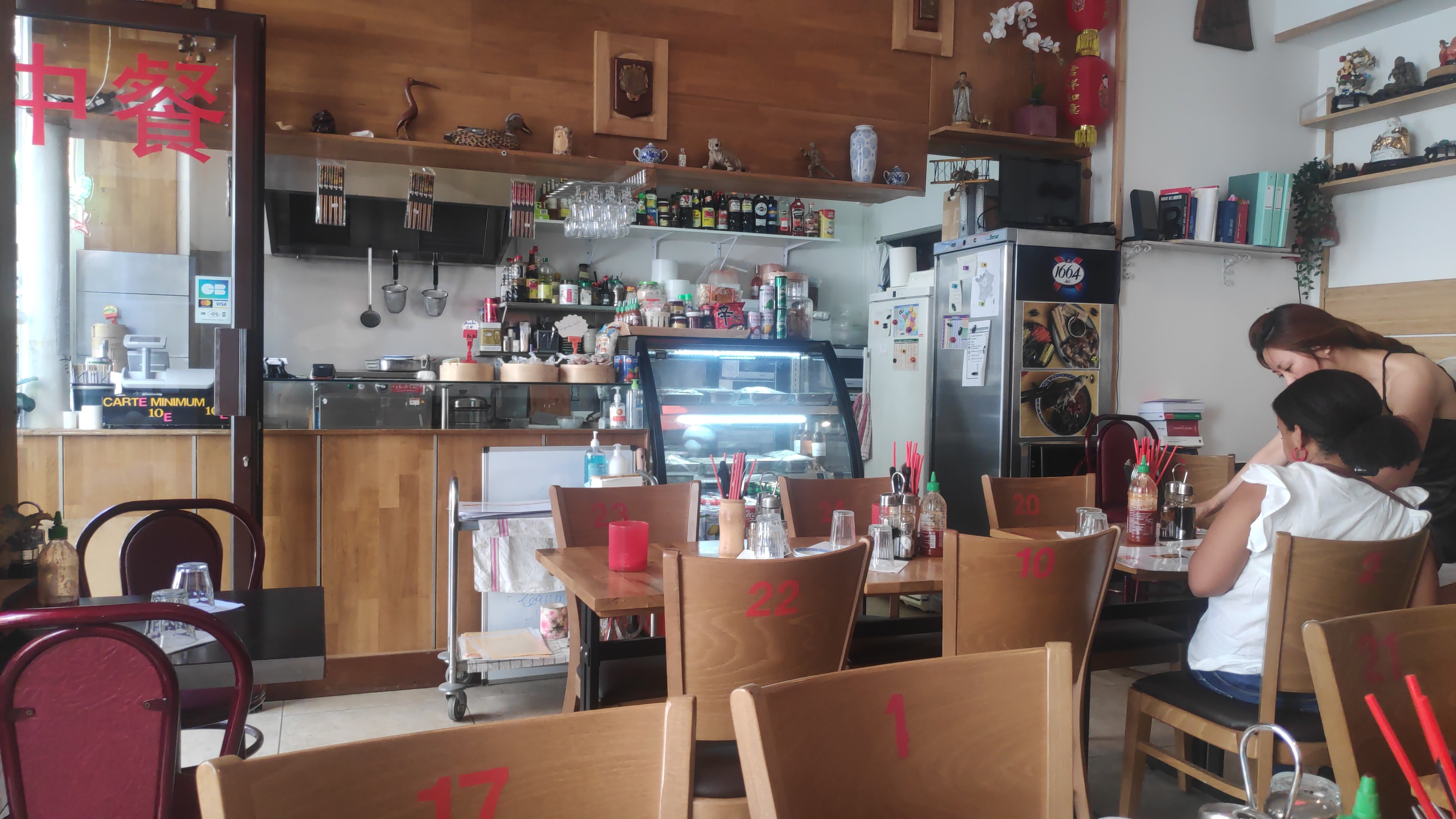 Kim est adorable et vraiment aux petits soins avec ses clients. Les quantités sont très généreuses, et le canard laqué est délicieux. Le thé au taro est proposé gratuitement à tous les clients, à volonté. Nous n'arrivons jamais à finir nos assiettes mais il est possible de demander un doggybag. Le restaurant propose une ambiance familiale et détendue.