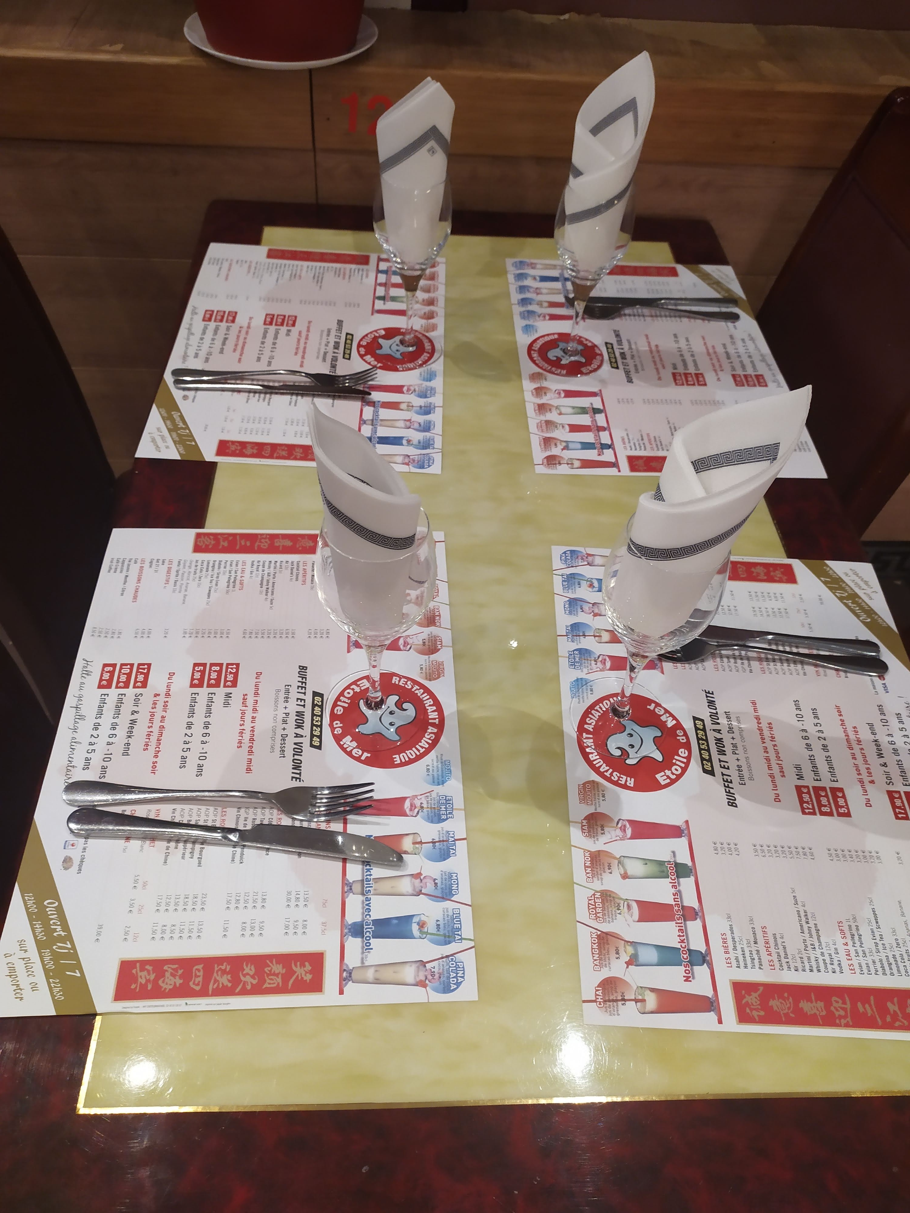 L'étoile de mer est restaurant chinois a volonté. Pour l'ensemble de la cuisine la qualité est dans la moyenne, la quantité est bien avec assez de choix. Mais peuvent faire mieux. Pour le service vous êtes prix en main rapidement et personnel accueillant. Pour terminé l'ambiance est simple et manque un peu.