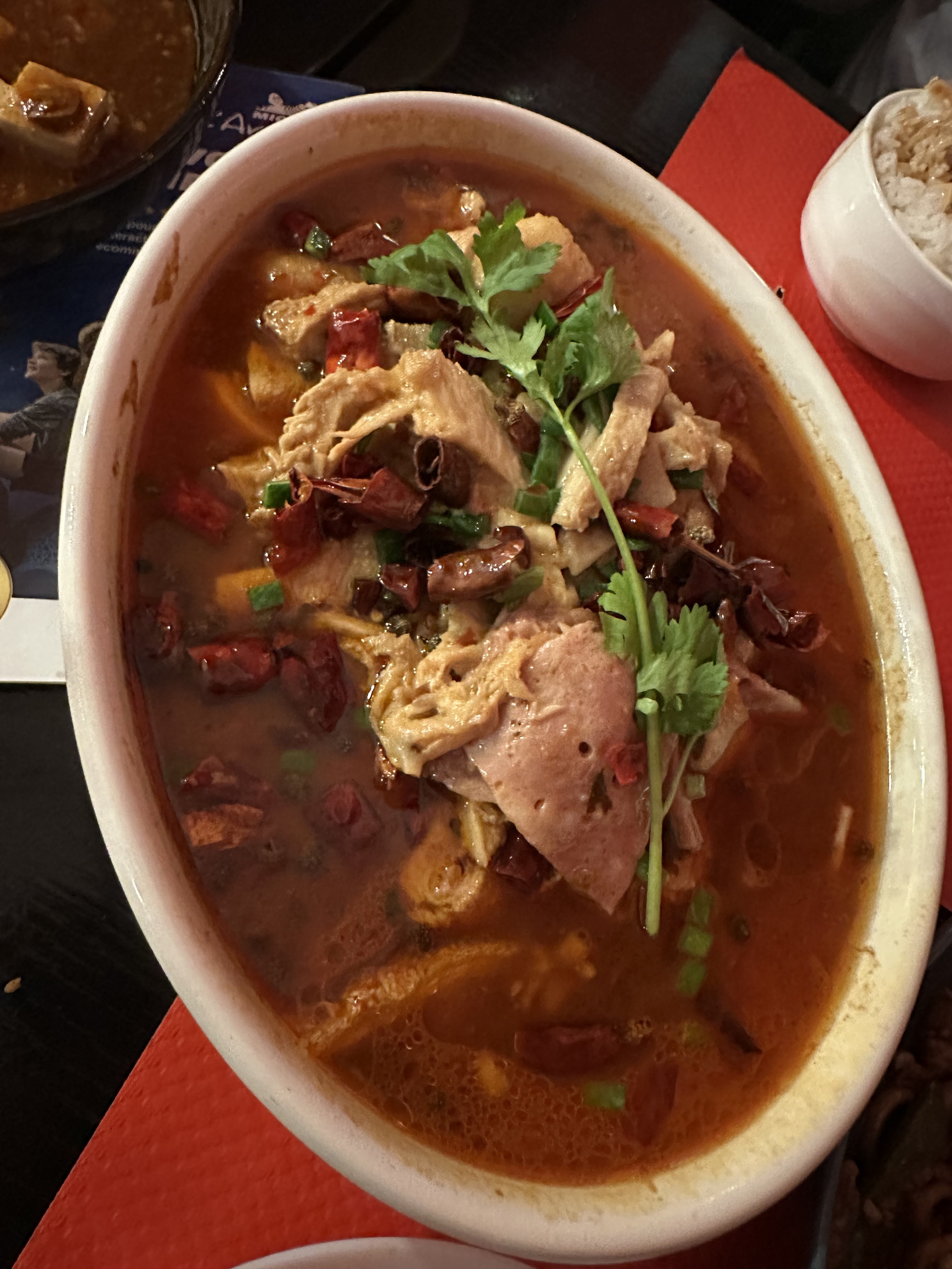 C'est délicieux, la portion est très généreuse, la viande rôtie est un peu trop sucrée et le Mao Xue Wang est comme du sang de canard.