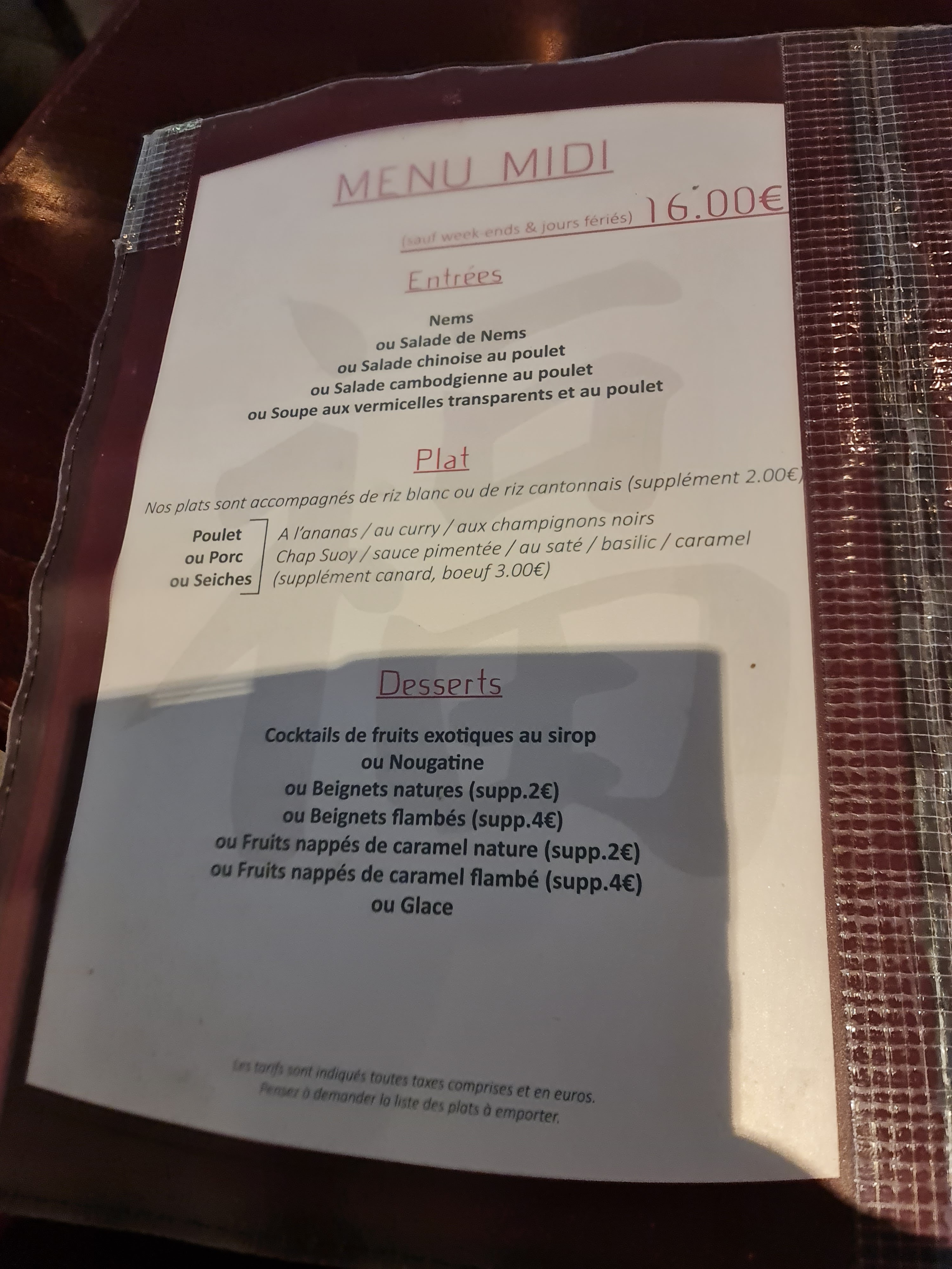 Je voudrez remercier mr et md cou qui nous apporte tant de bonheur et de délices dans les plats qu'il prépare chaque jour nous nous y régalons depuis maintenant fort longtemps, avis aux personnes qui aime la vrai cuisine asiatique ,stop arrêtez-vous c'est ici qu'il faut manger. Bien de tables nous avons connue mais c'est de loin la meilleure, régularité, saveurs ,gentillesse. Leur serveuse est au top toujours aux petits soin merci Alex et merci encore a vous a très vite . Steeve tarascon.