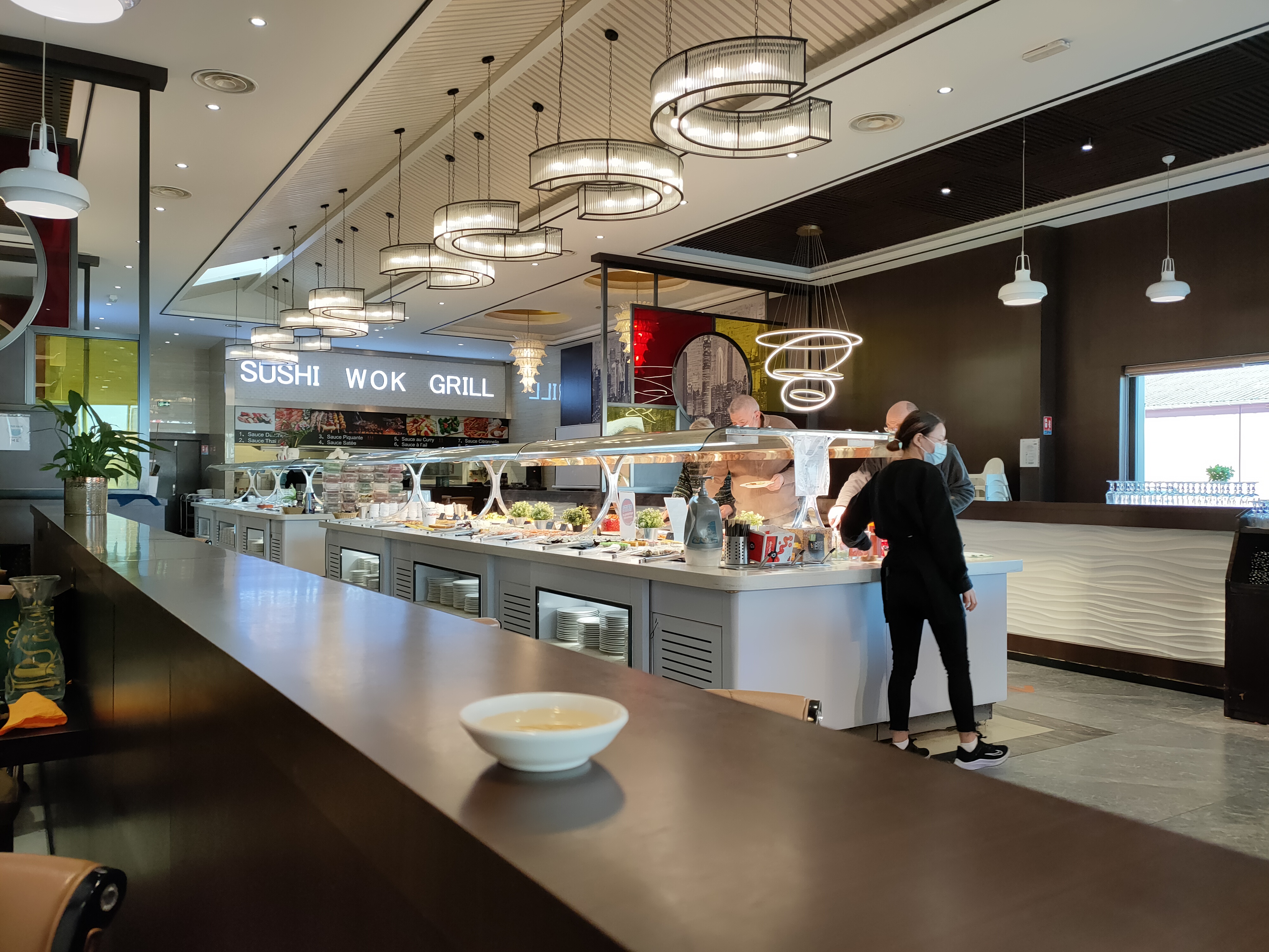 Très grand restaurant avec beaucoup de places assises. Grand buffet avec beaucoup de choix. Wok également très bien. Accueil mitigé, on a l'impression que les serveurs sont blasé, surtout la femme a la caisse. Par contre les cuisiniers sont motivés et souriant.