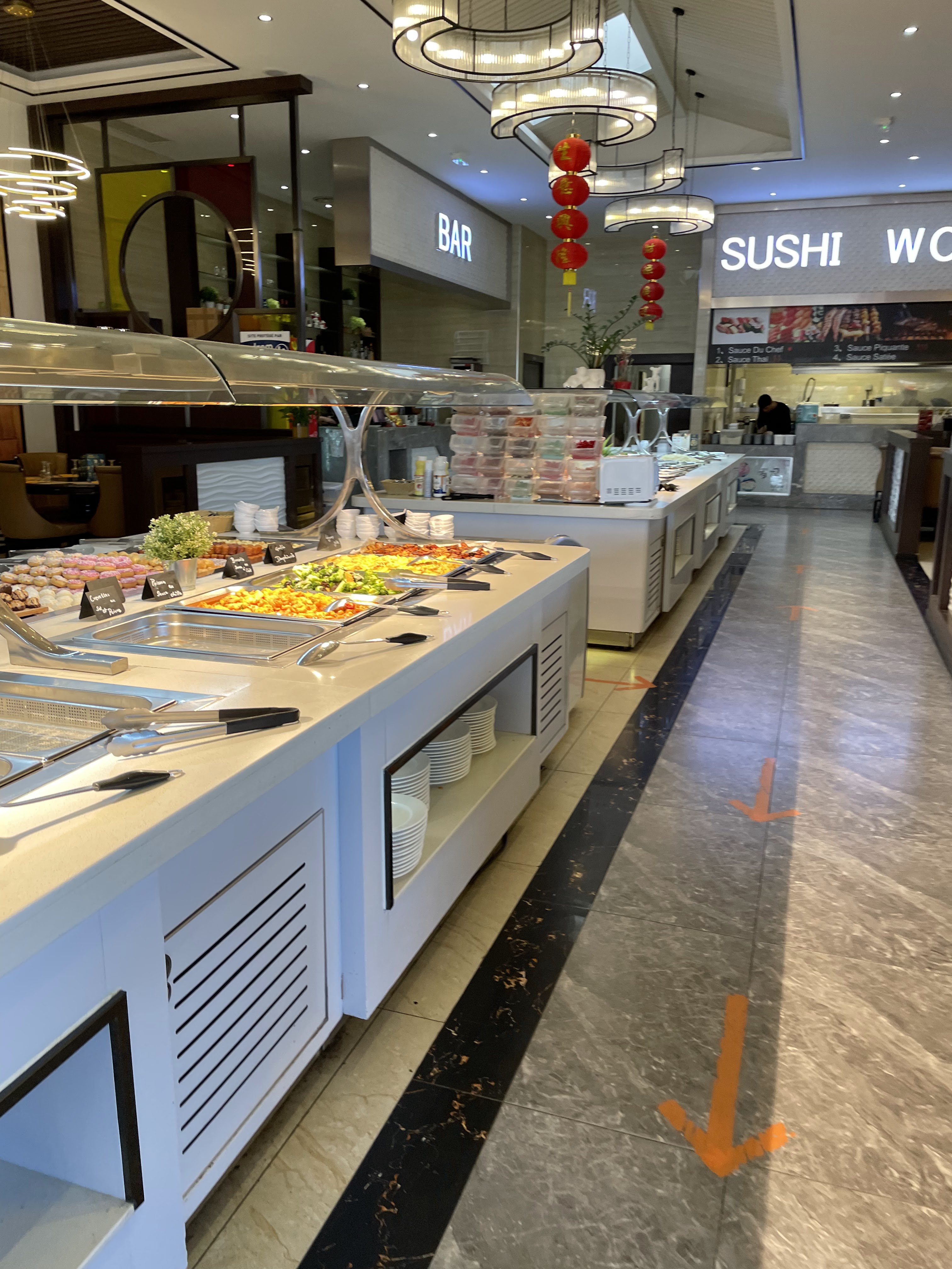 Gestes barrière respectés, lieu a priori propre, en ce qui concerne la salle de réception du moins. Plusieurs remarques : - mon verre était sale (mal lavé, traces de soda dessus) et a été changé, sans pour autant avoir les excuses du staff - la cuisson des fritures proposées est excessive assez souvent ce qui rend les aliments moins appréciables - un choix de produits assez large (sucré comme salé) - les viandes proposées (boeuf, poulet et poisson) et les légumes sont bien cuisinés - large choix de dessert Dans l'ensemble, je reste mitigé et perplexe quant à cette expérience qui est facilement comparable aux différents restaurants chinois proposant la formule buffet à volonté.