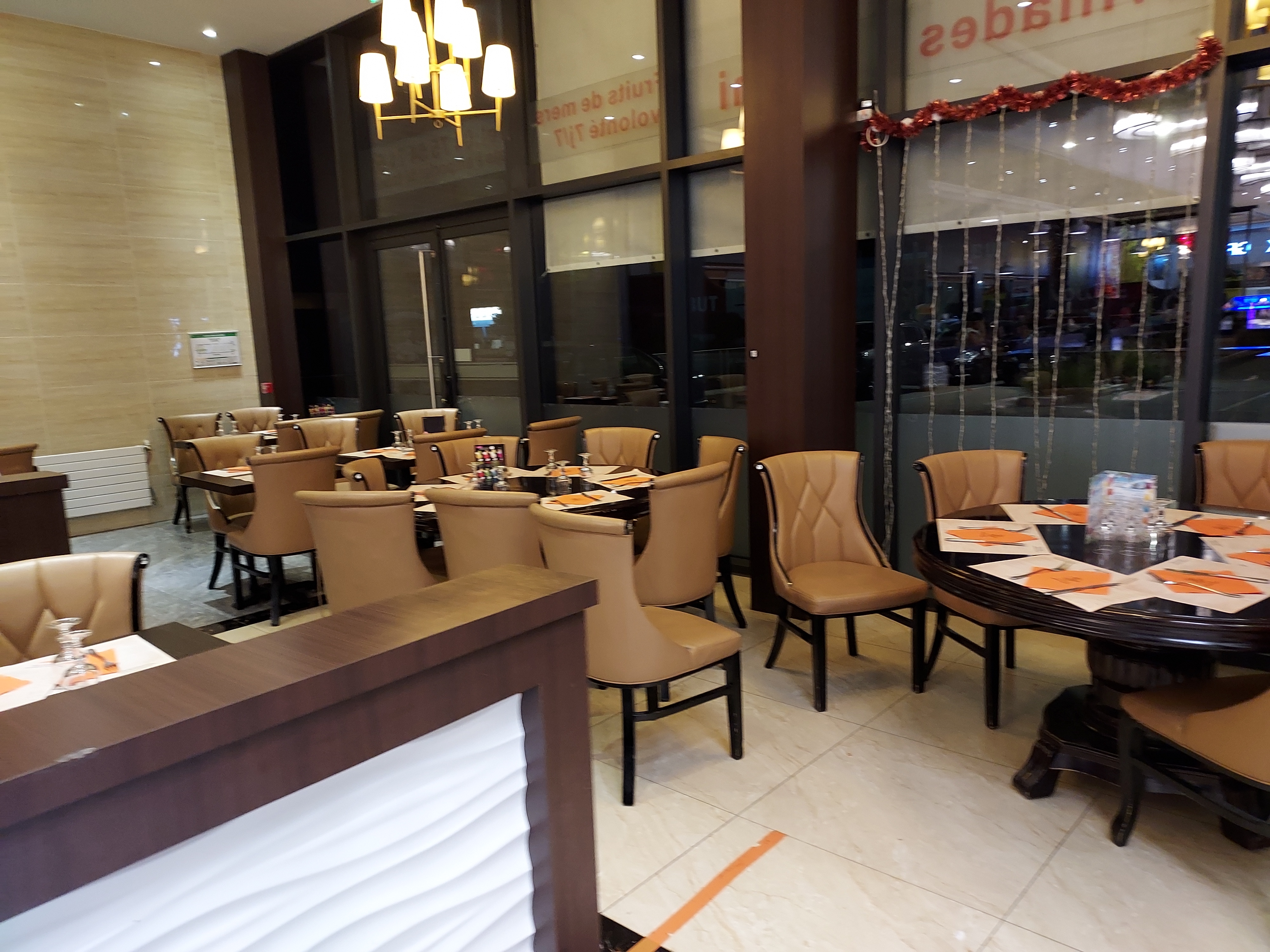 Restaurant avec du choix mais l'accueil est vraiment à revoir. Une rangée de table se trouve carrément a côté du buffet, vraiment pas agréable, beaucoup trop de passage à côté de la table. Restaurant bruyant.
