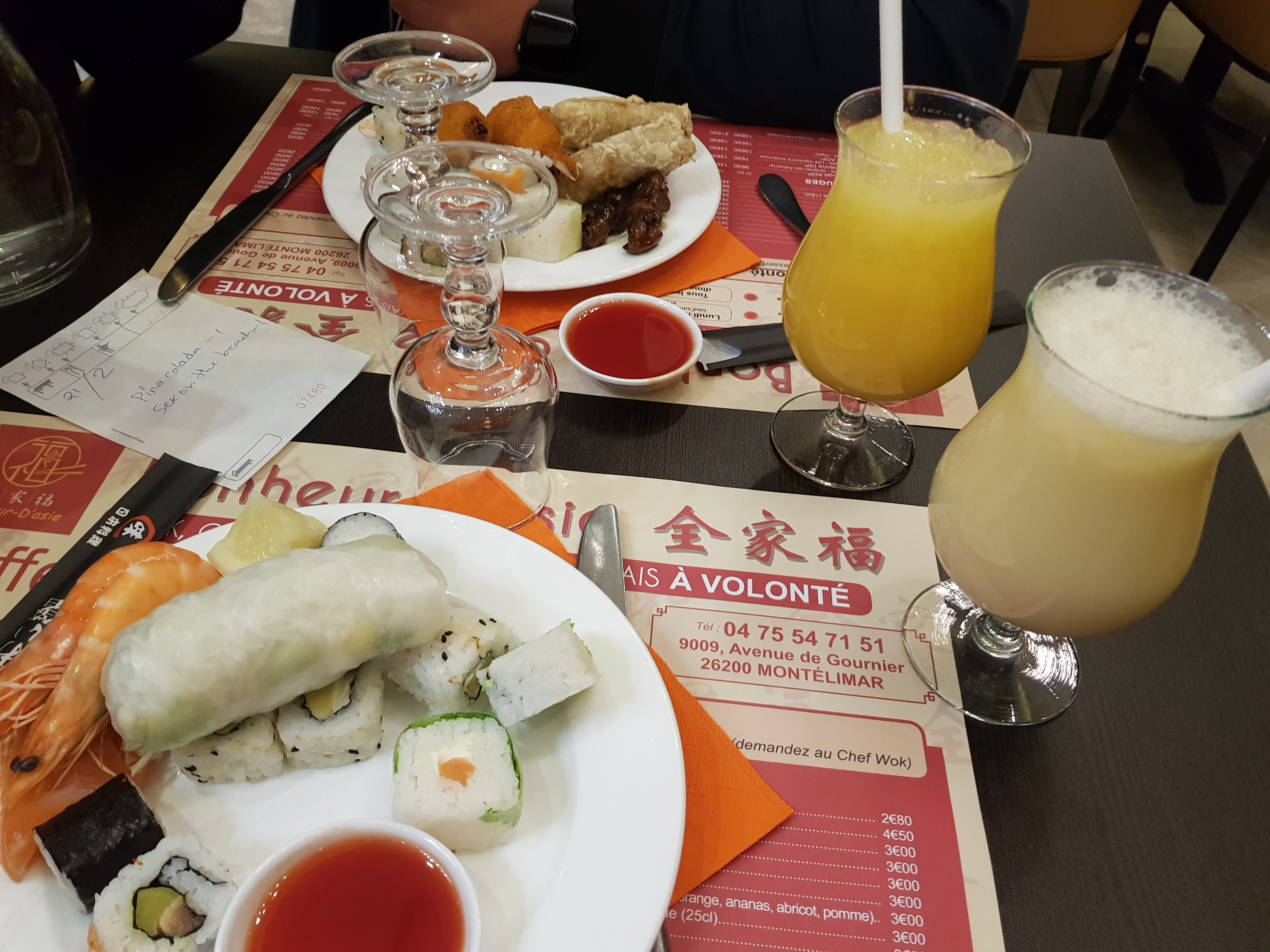 Très joli décor, les formules à volonté pour 18,90 font penser à soleil levant. Ps: le nettoyage laisse à désirer (la table à côté de la notre à été redresser sans passage d'ěponge...) j'espère que ça va va pour le reste !!!
