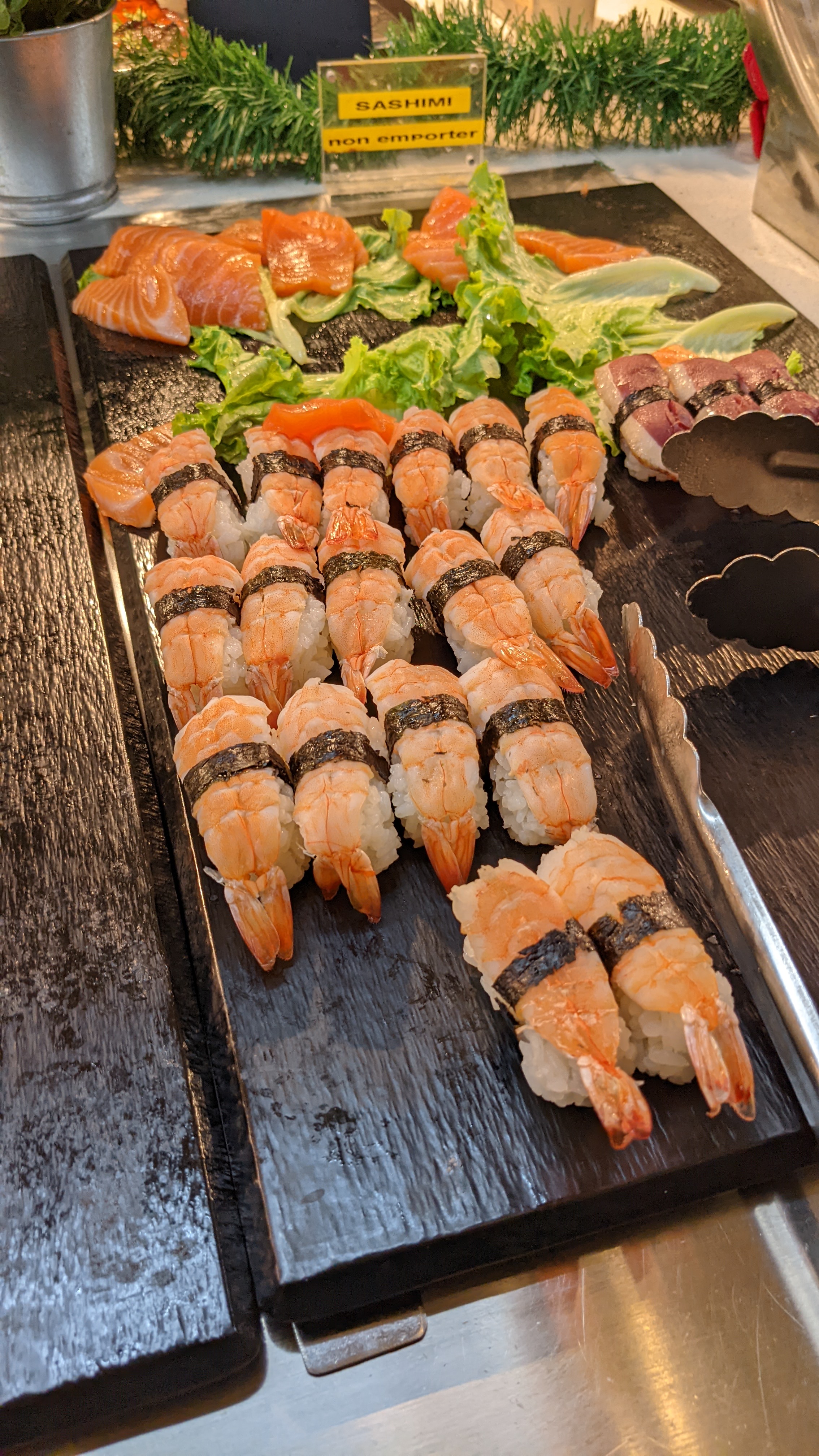 Très bon buffet , beaucoup de choix et des sushi plus travaillé que dans les autres buffet ! Fruits de mer , fritures, plat en sauce, salade . Beaucoup de choix salé ! Au niveau dessert rien à redire, le choix est monstrueux ! Glace et bonbons pour les enfants et les grands ! Possibilité de se faire des préparations directement sur place en wok. Tarif très très raisonnable ! Franchement pour le prix , c’est top