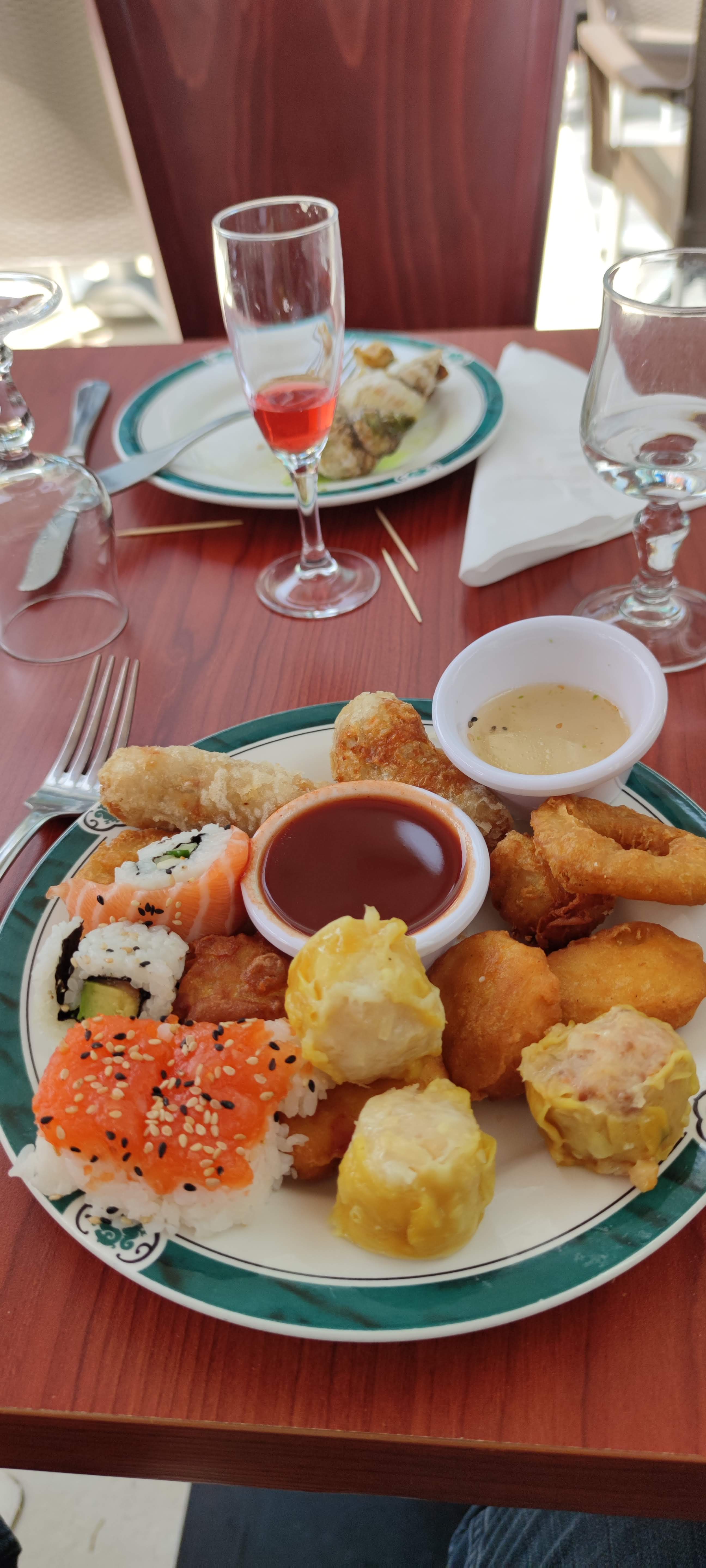 Des très bon plats, sushis, nems, brochettes, mais on ne comprends pas pourquoi il y a des frites et du saucisson ?