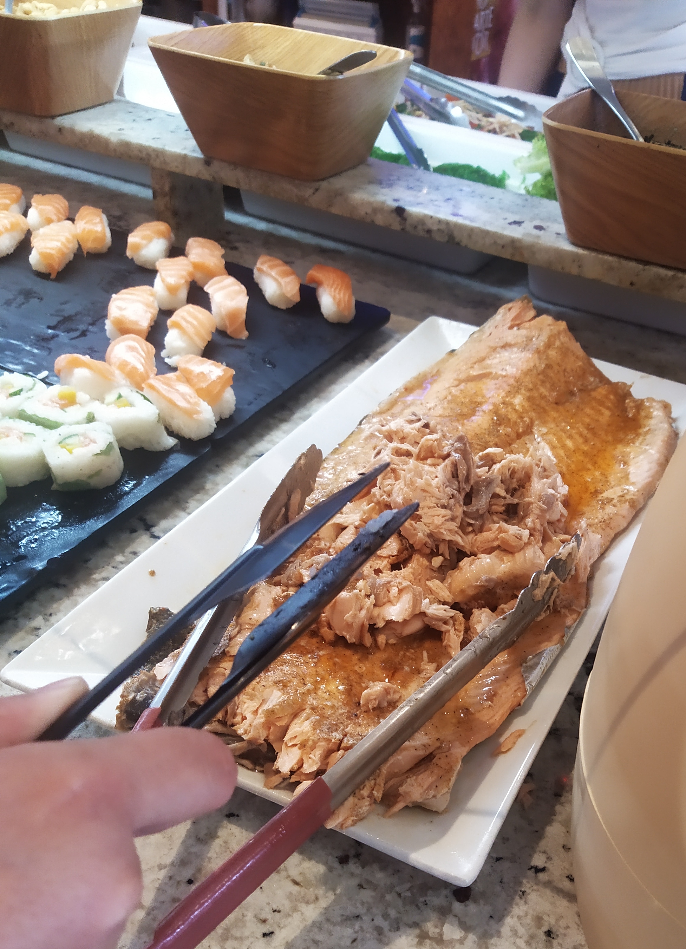 Personnel accueillant mais plusieurs choses ne vont pas : - Faire payer dès l'arrivée (pas très légal) - les plats sont froids même après que les serveurs refassent le plein - pour la partie sushis/makis, le riz est mauvais. Il est sec, gluant, collant. Depuis quand il faut mastiquer pendant 5 min pour un maki? L'endroit ne vaut clairement pas son prix.