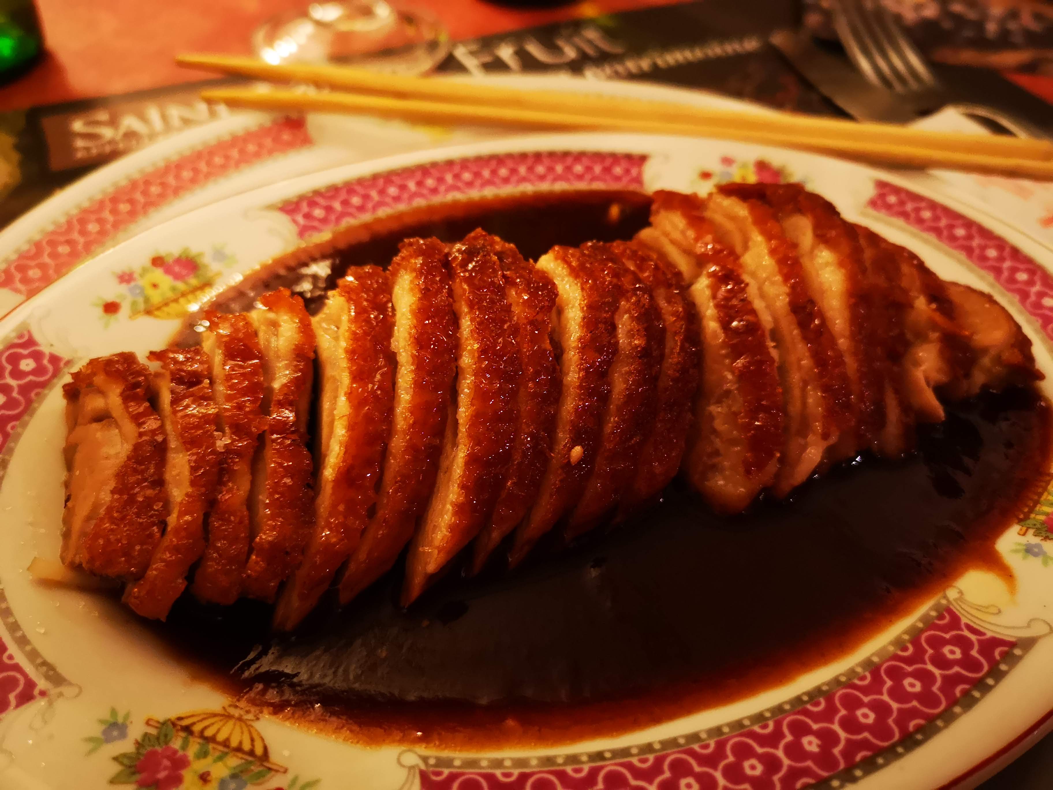Glutamate classique chinois, tout allait bien et après un certain temps, ils ont été servis, mais certains d'entre eux étaient des produits frits classiques. Le canard que nous avons commandé était servi dans une sauce au glutamate brun foncé.