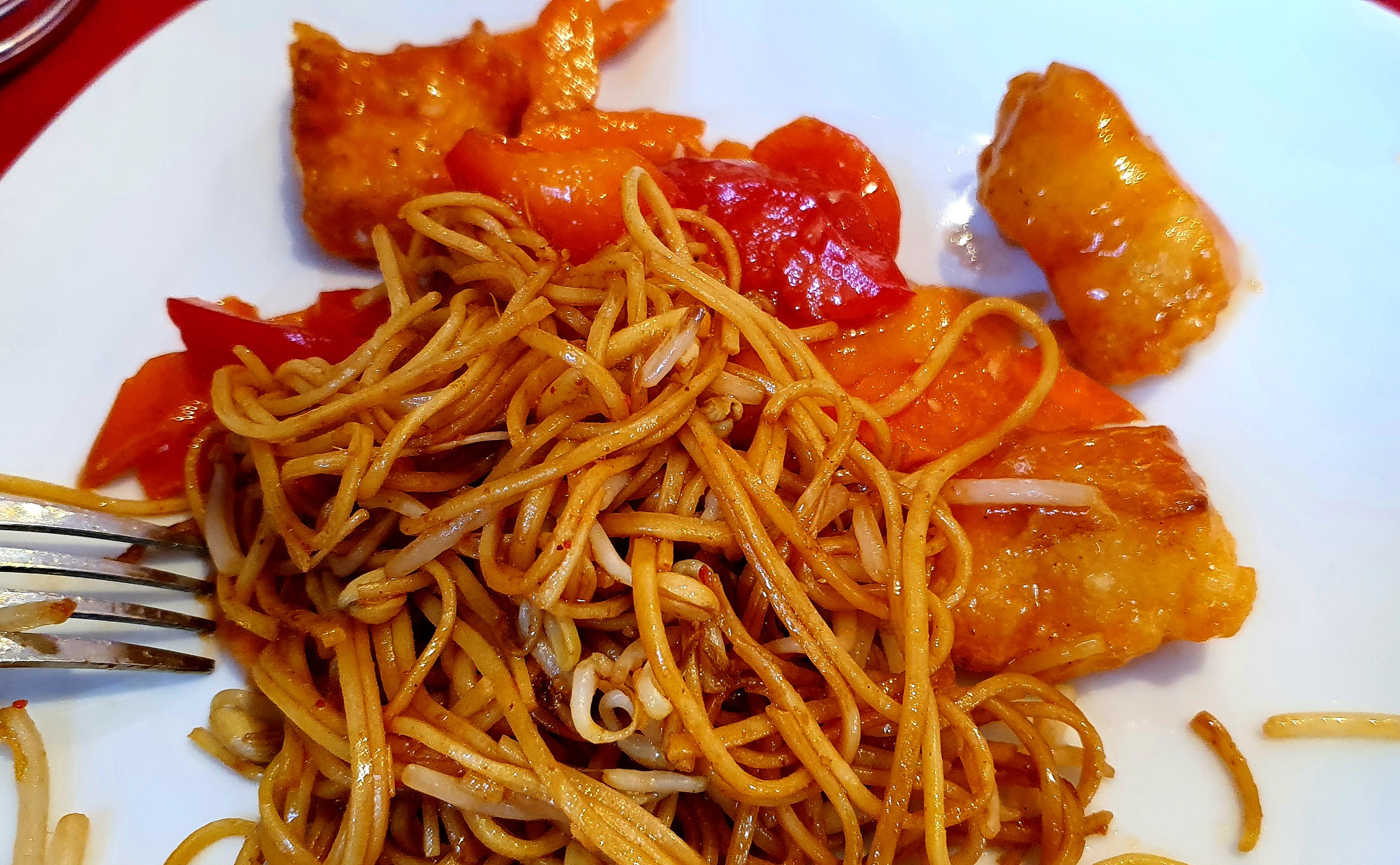 Nous voulions vraiment avoir de la nourriture chinoise. Nous avons pris l'assortiment de viande rôtie avec des nouilles sautées. C'était correct pour le prix.