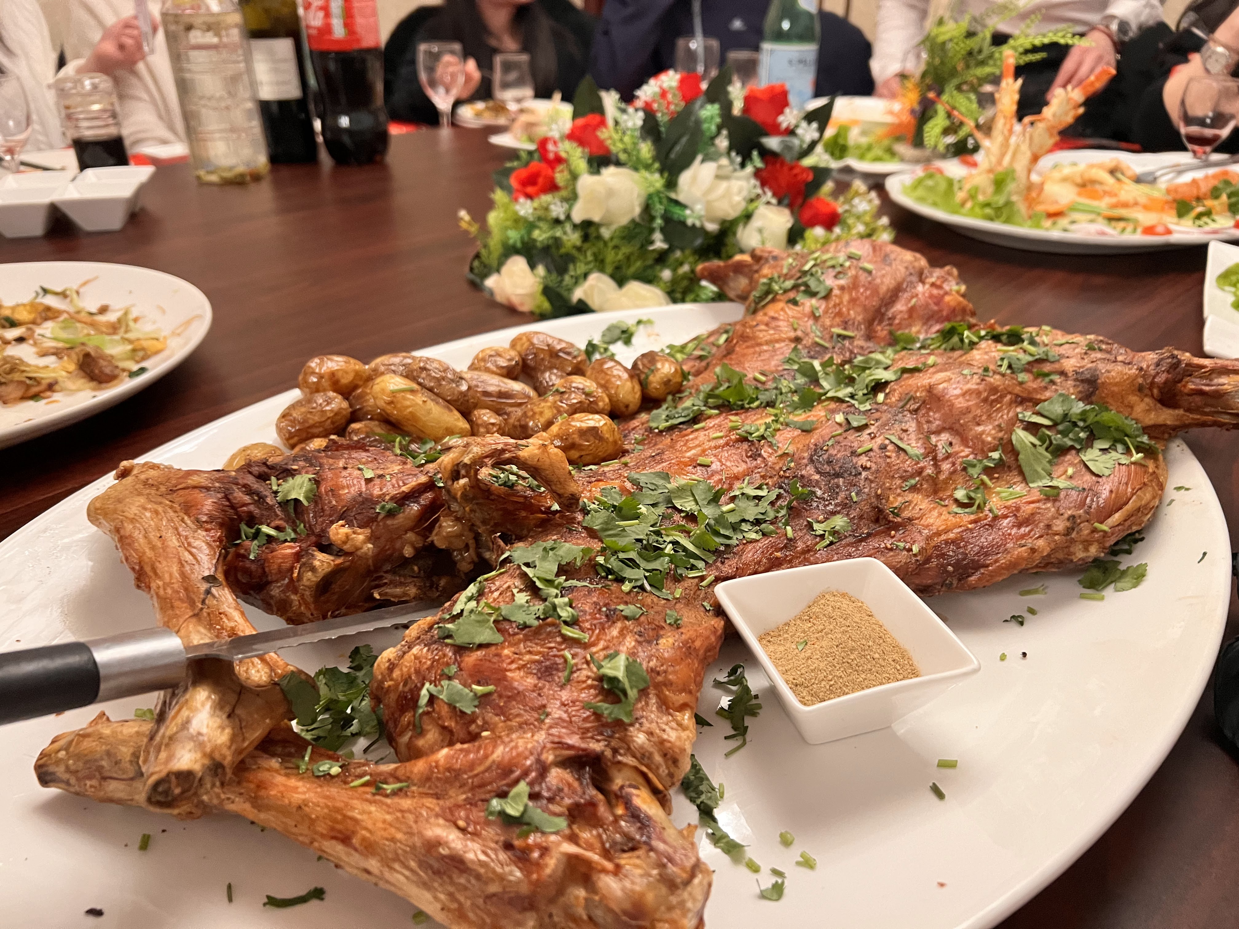 L'agneau entier rôti est délicieux