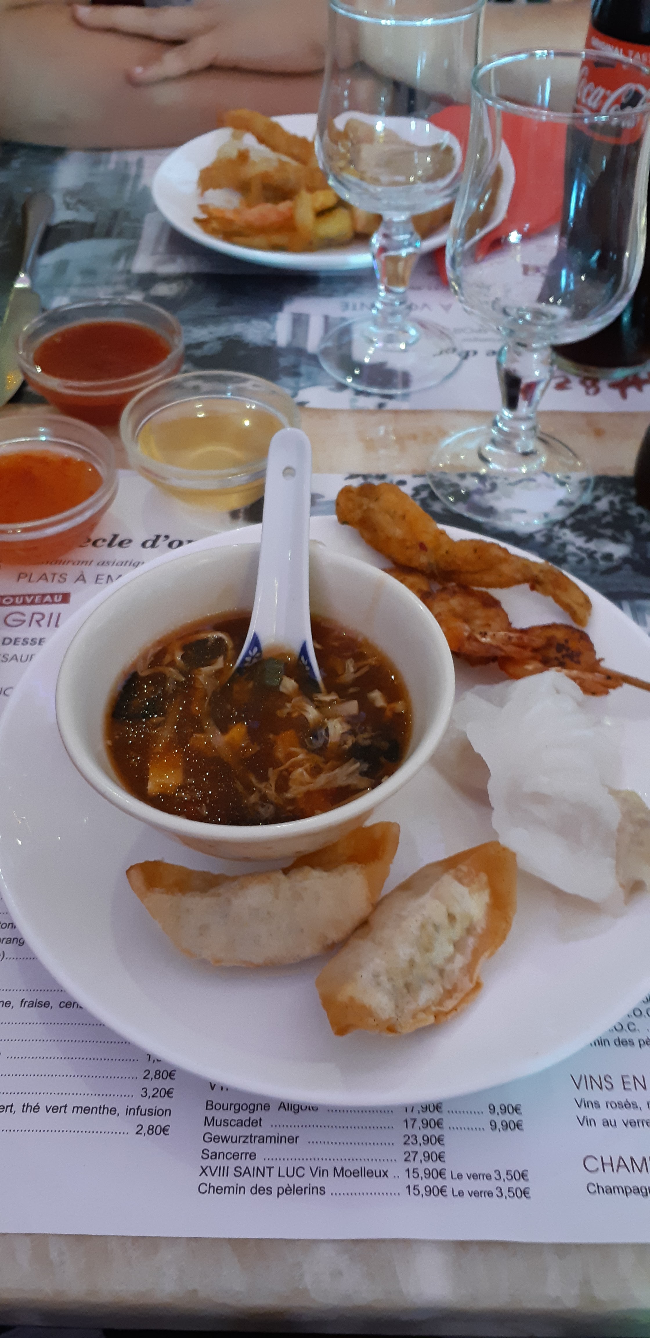 On arrive toujours à découvrir des mets qui nous mettent une saveur exotique en bouche. Les nems, les nouilles en nombre. On apprécie le sourire des demoiselles qui enlèvent les assiettes vides. Le menu enfant pour 10€, un prix en semaine et un autre le week end.