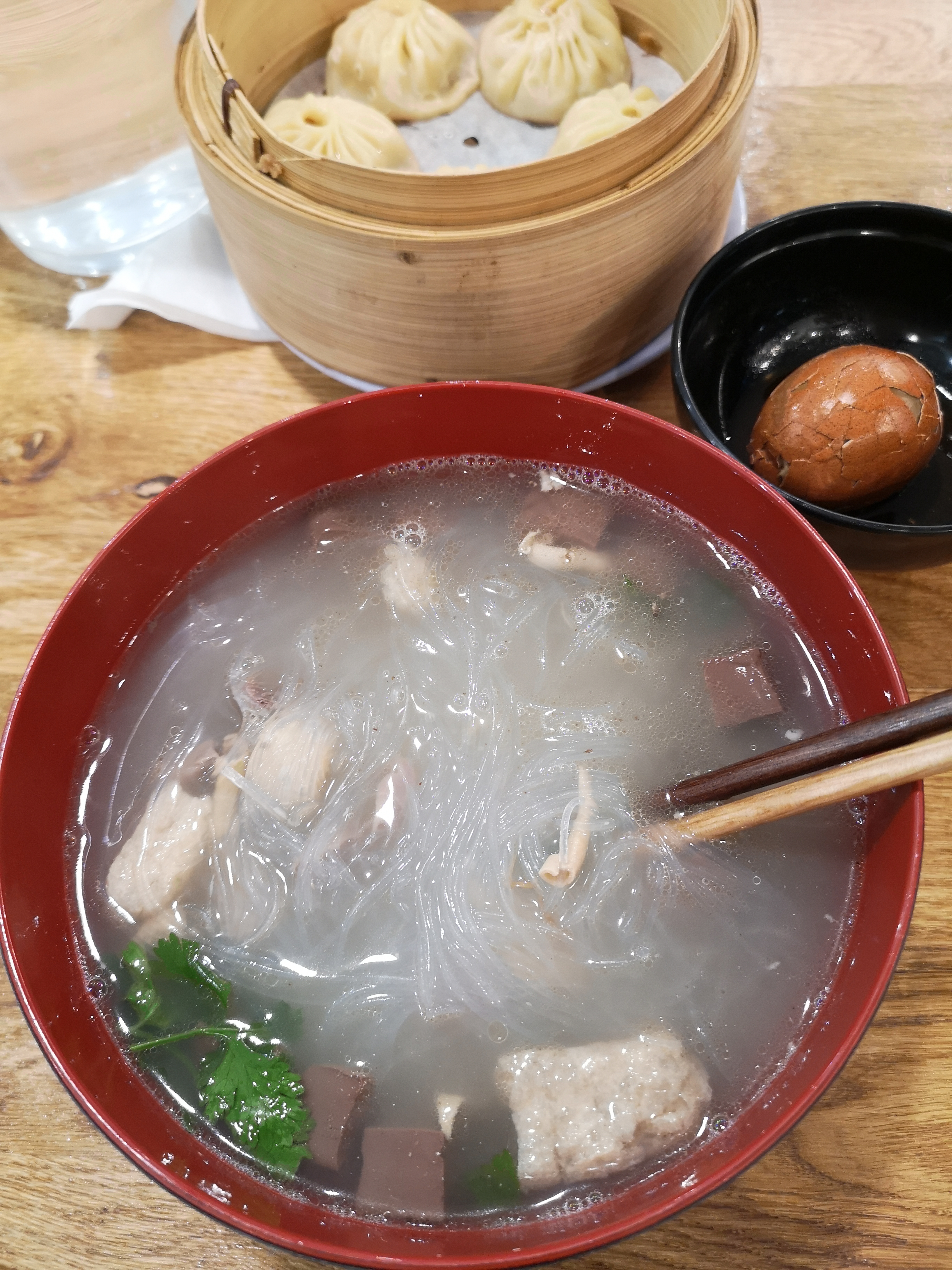 Je n'arrive pas à croire que je puisse trouver des 鸭血粉丝汤 (nouilles à soupe de sang de canard) en France, et c'était bien préparé. Xiaolongbao aussi délicieux.