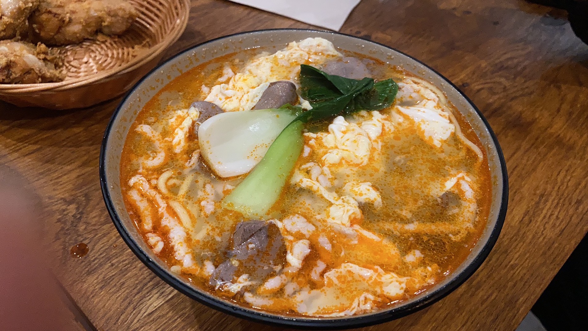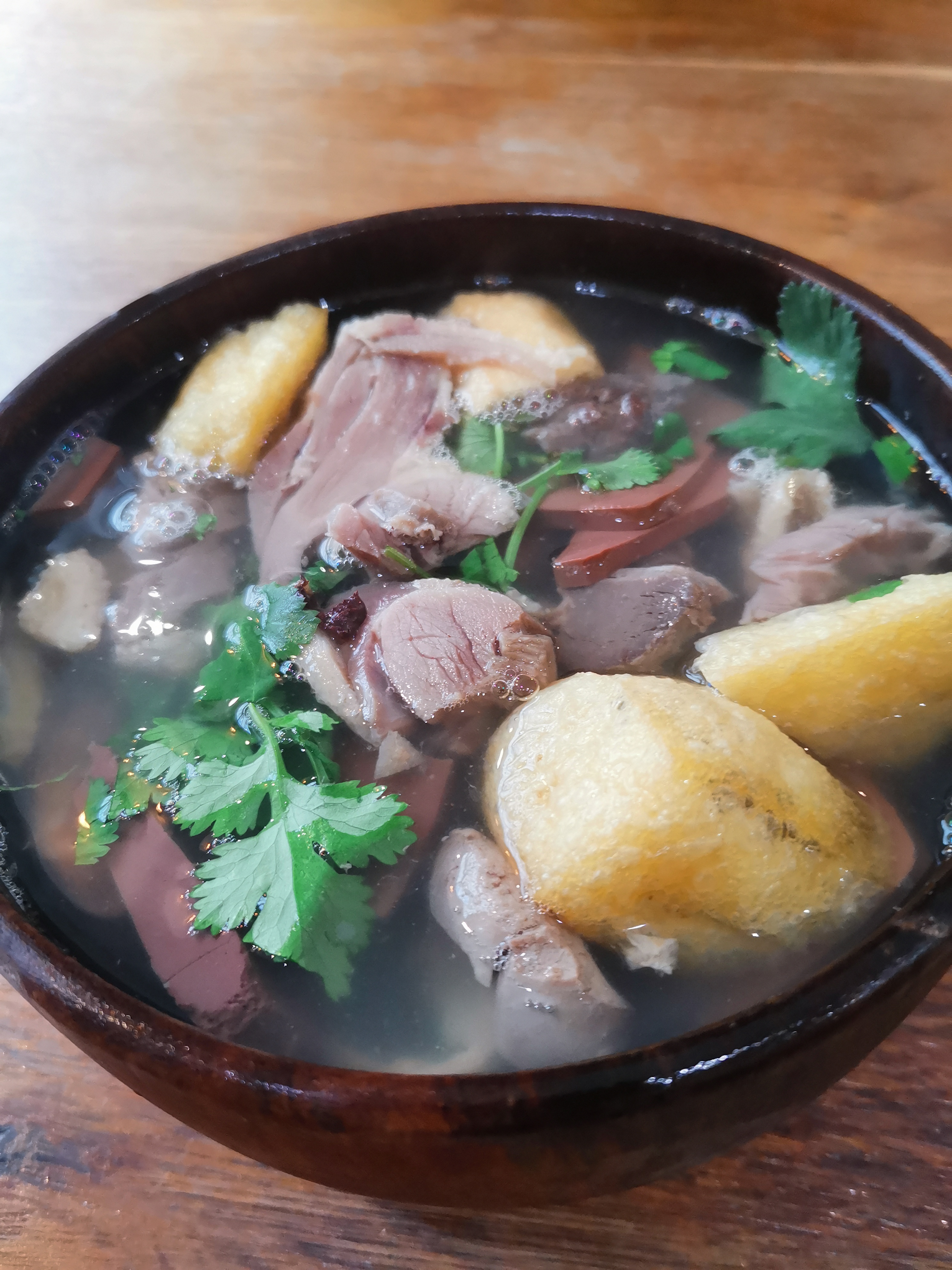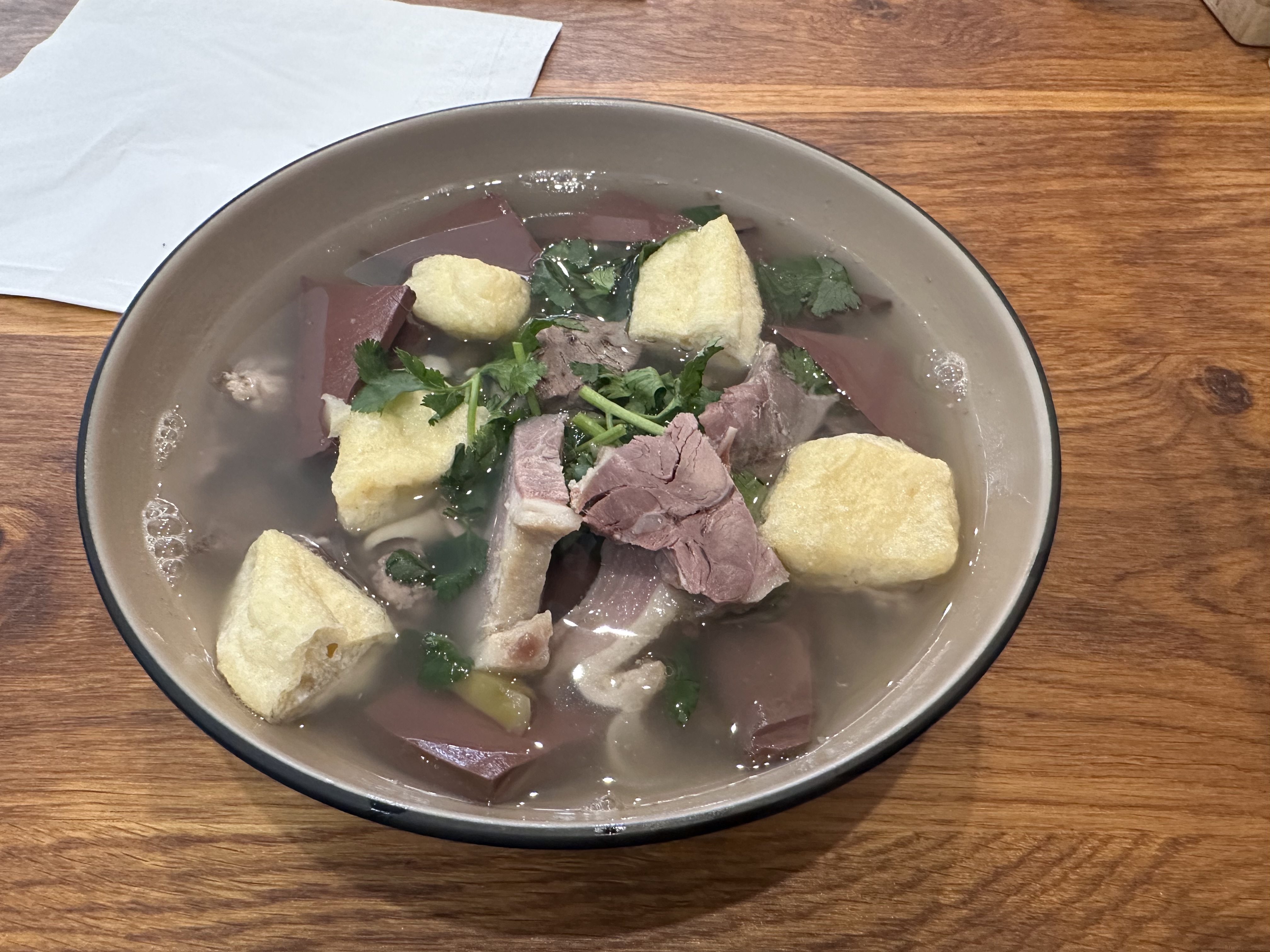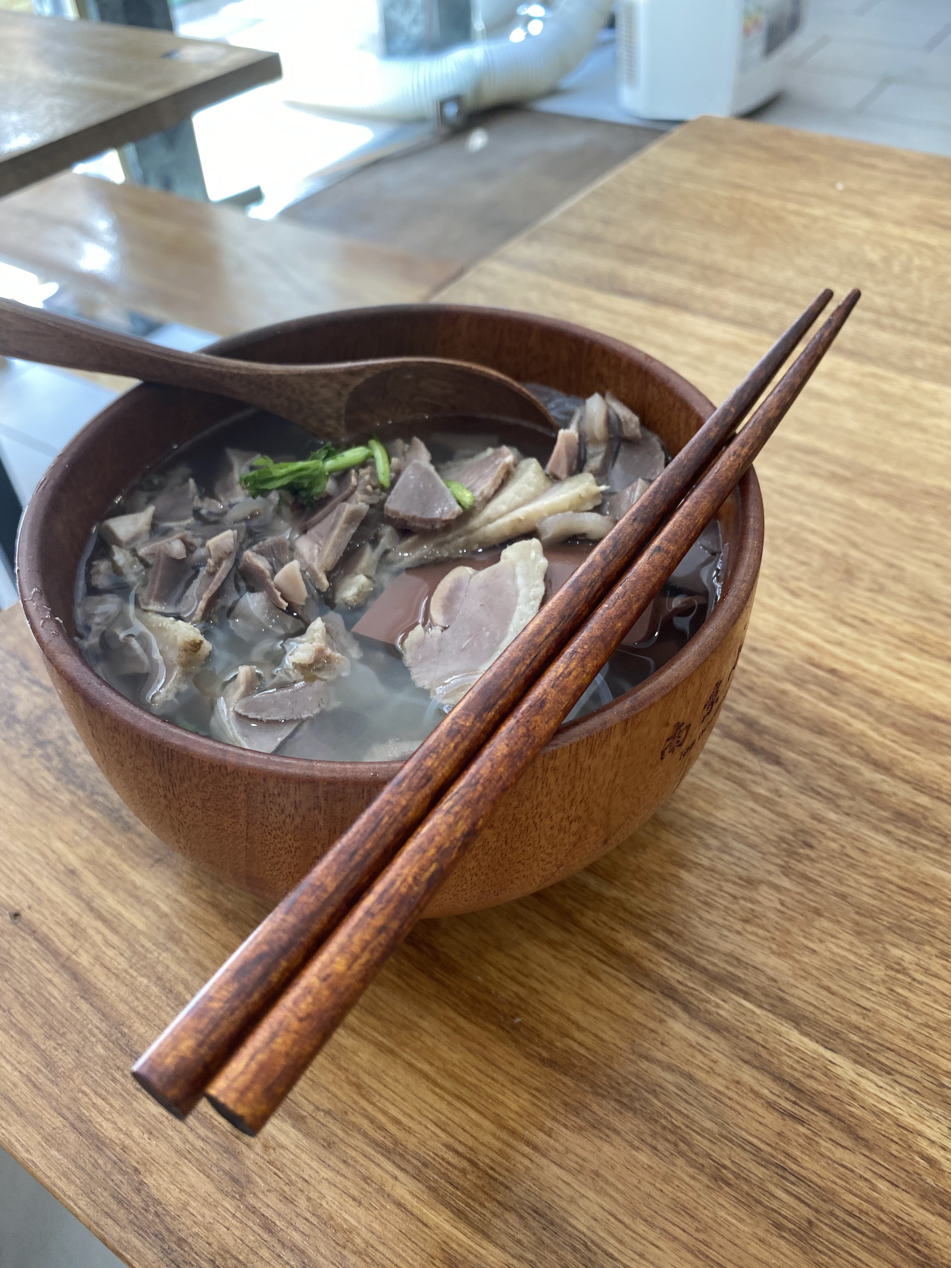 Comme je suis curieux, j'ai goûté la soupe de riz au sang et viscères de canard. Si pour un français, ce n'est pas du tout dans notre culture, j'ai été agréablement surpris, c'était bon. Pour le reste de la carte, il y a quelques plats curieux, mais tout est bon. L'établissement est propre et l'accueil souriant. Juste une petite remarque, mon entrée est arrivée après mon plat, mais sinon tous nos plats étaient bons et le service aimable et souriant.