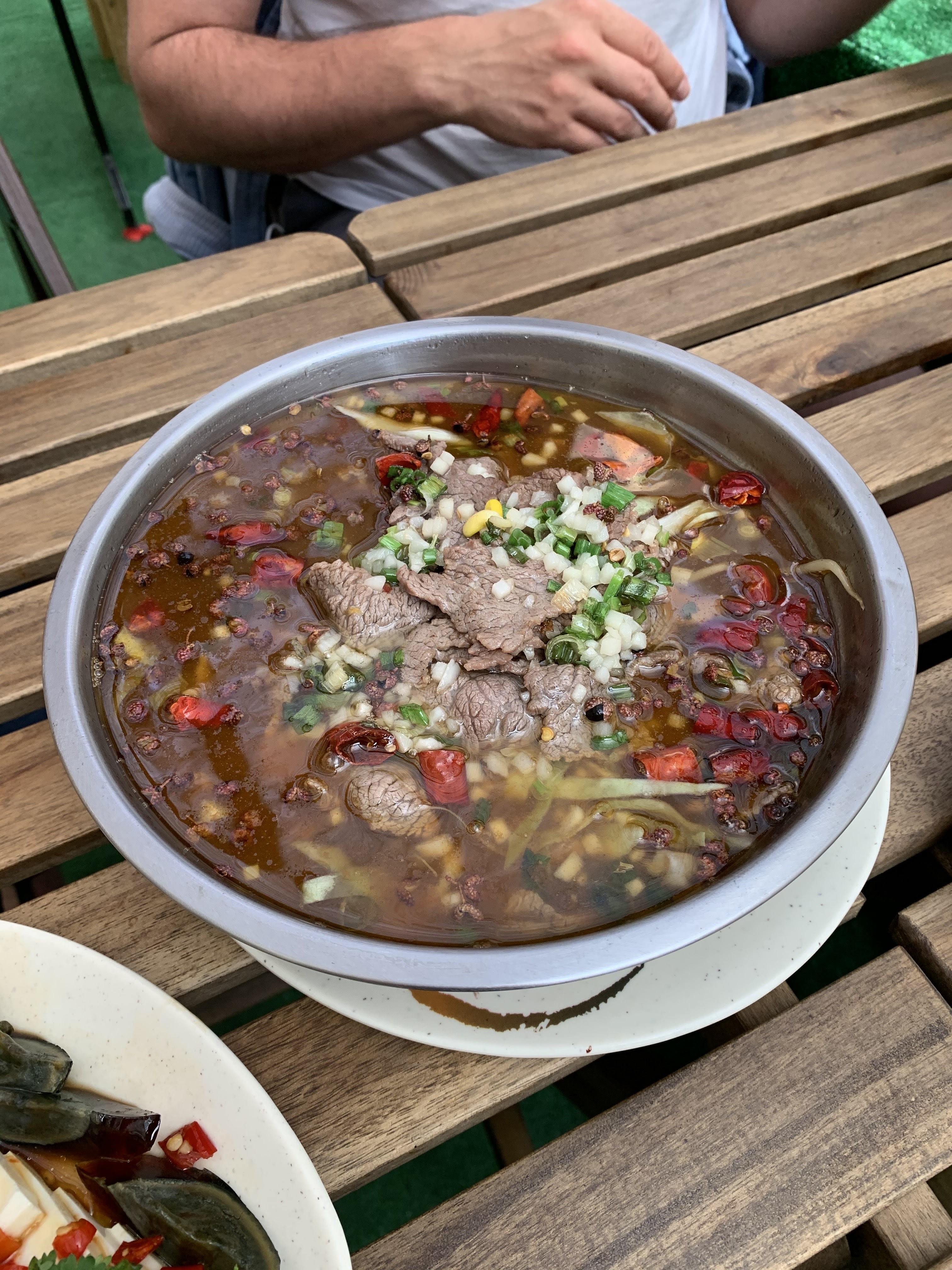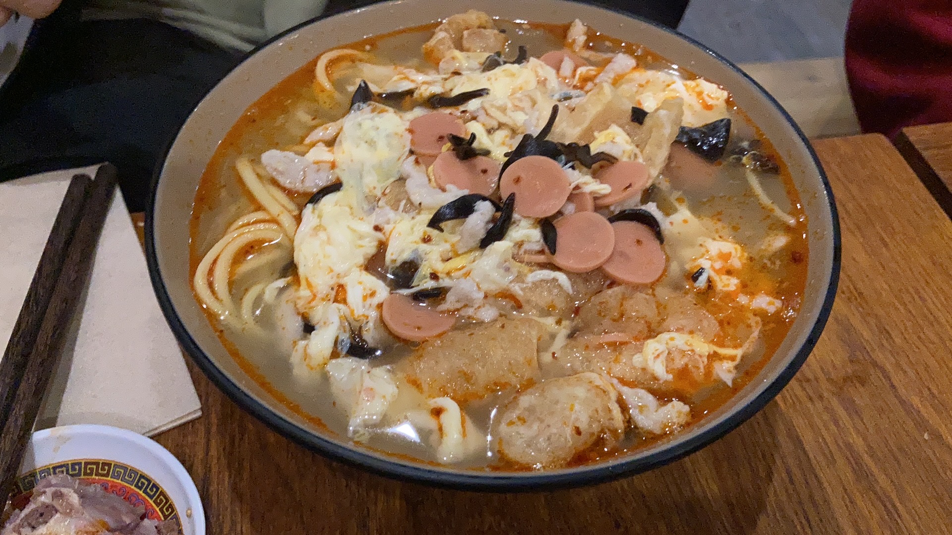 C'est un magasin divers et l'intérieur n'est pas luxueux. Elle est apaisée par le français lent parlé par une jeune employée chinoise et intimidée par l'employé à l'air terne, mais la marmite de viande qui mijote fait tout exploser. Il est farouchement récompensé par son piquant et sa gourmandise. (Il a fallu beaucoup de temps entre la commande et le service, et le disjoncteur s'est déclenché à plusieurs reprises en raison d'une consommation excessive d'électricité.)
