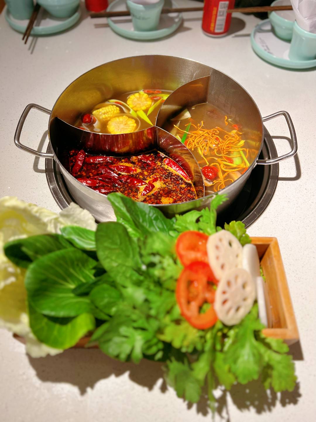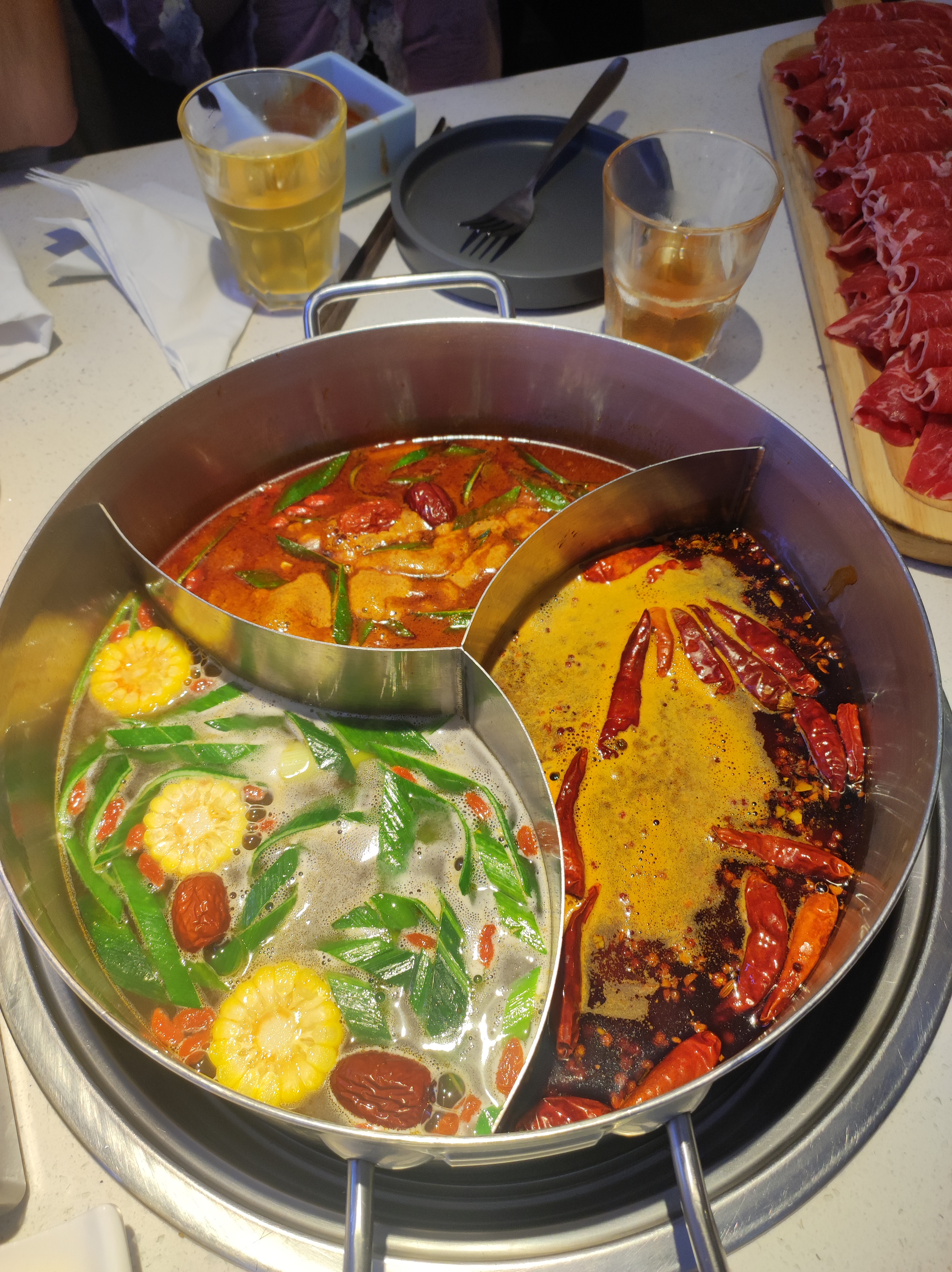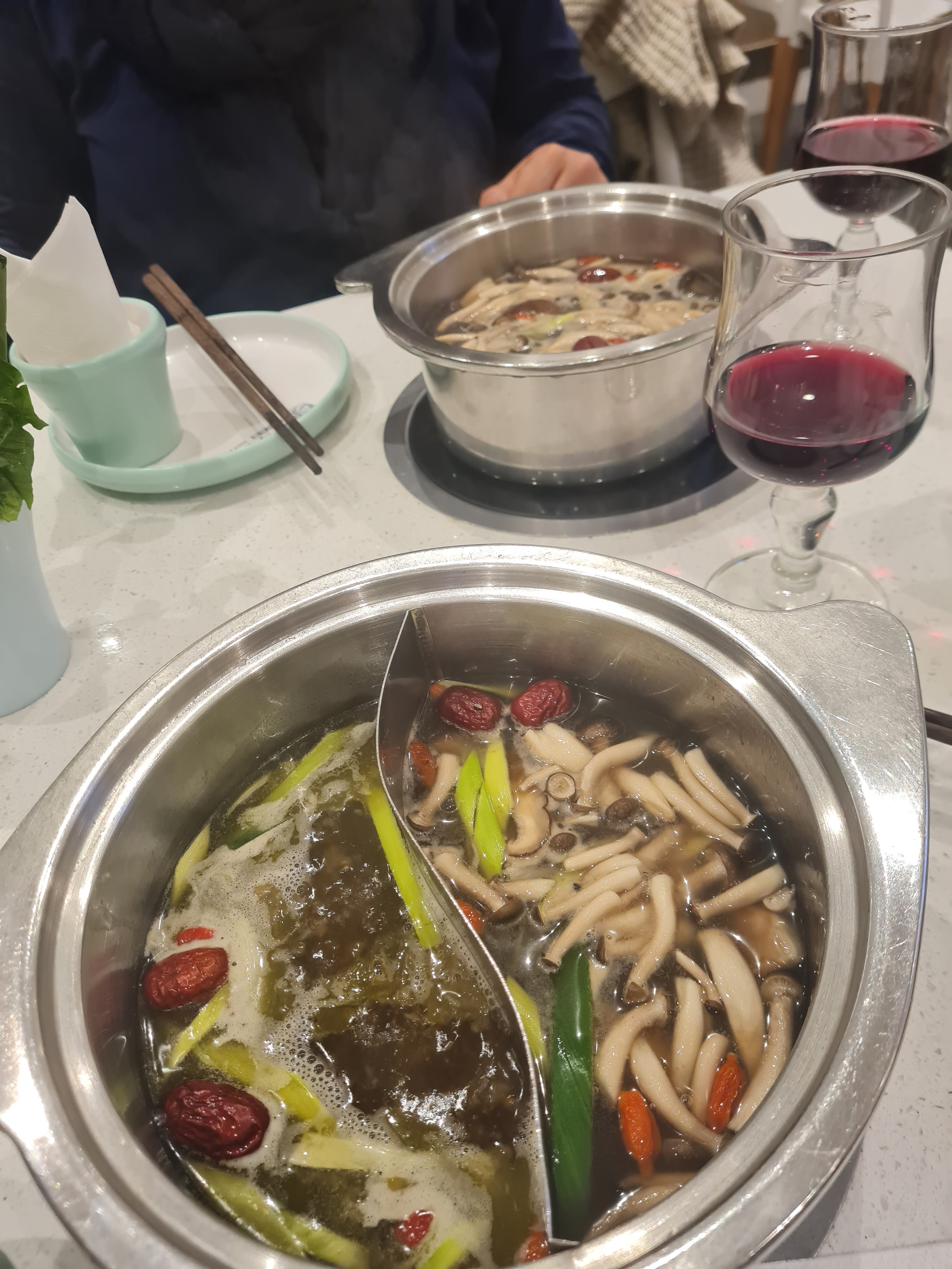 Bon hotpot à découvrir. J'aime les cassolettes doubles pour diversifier l'expérience de bouillons épicés.