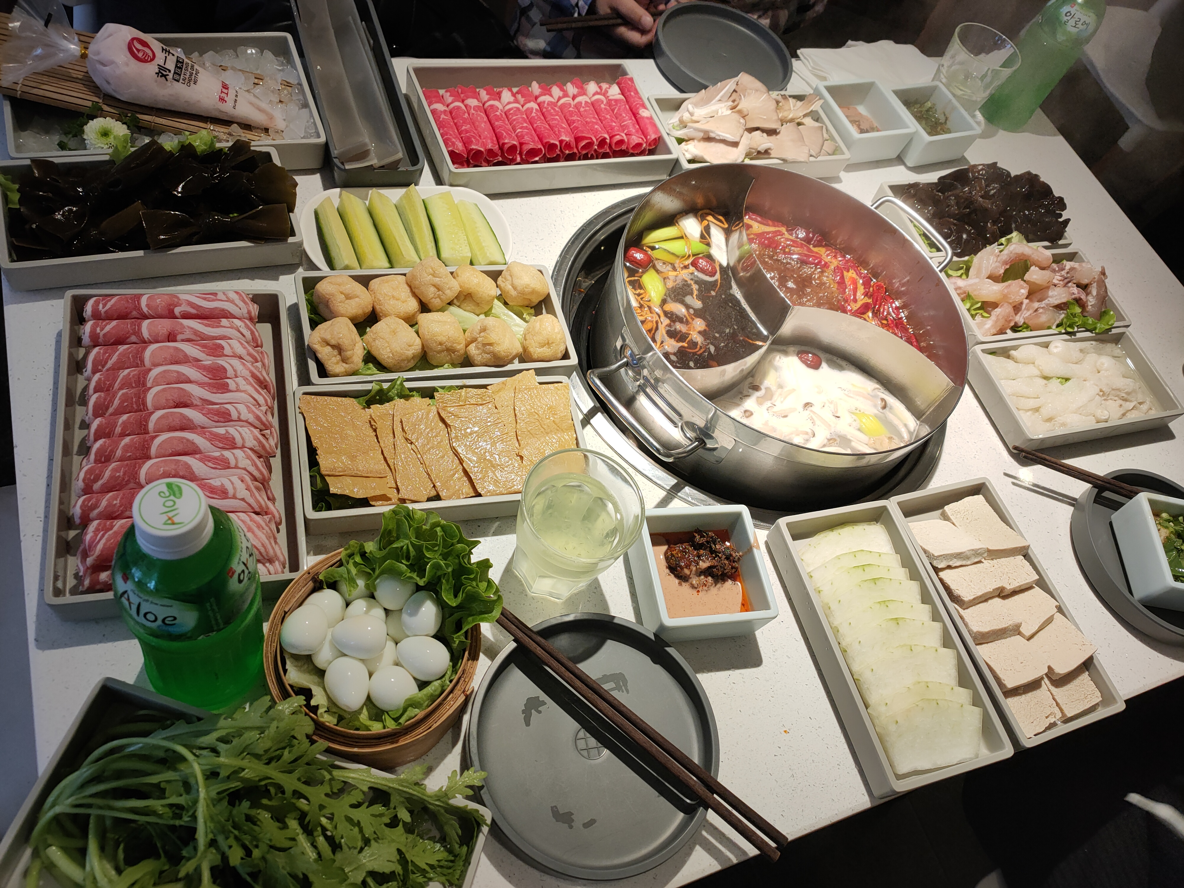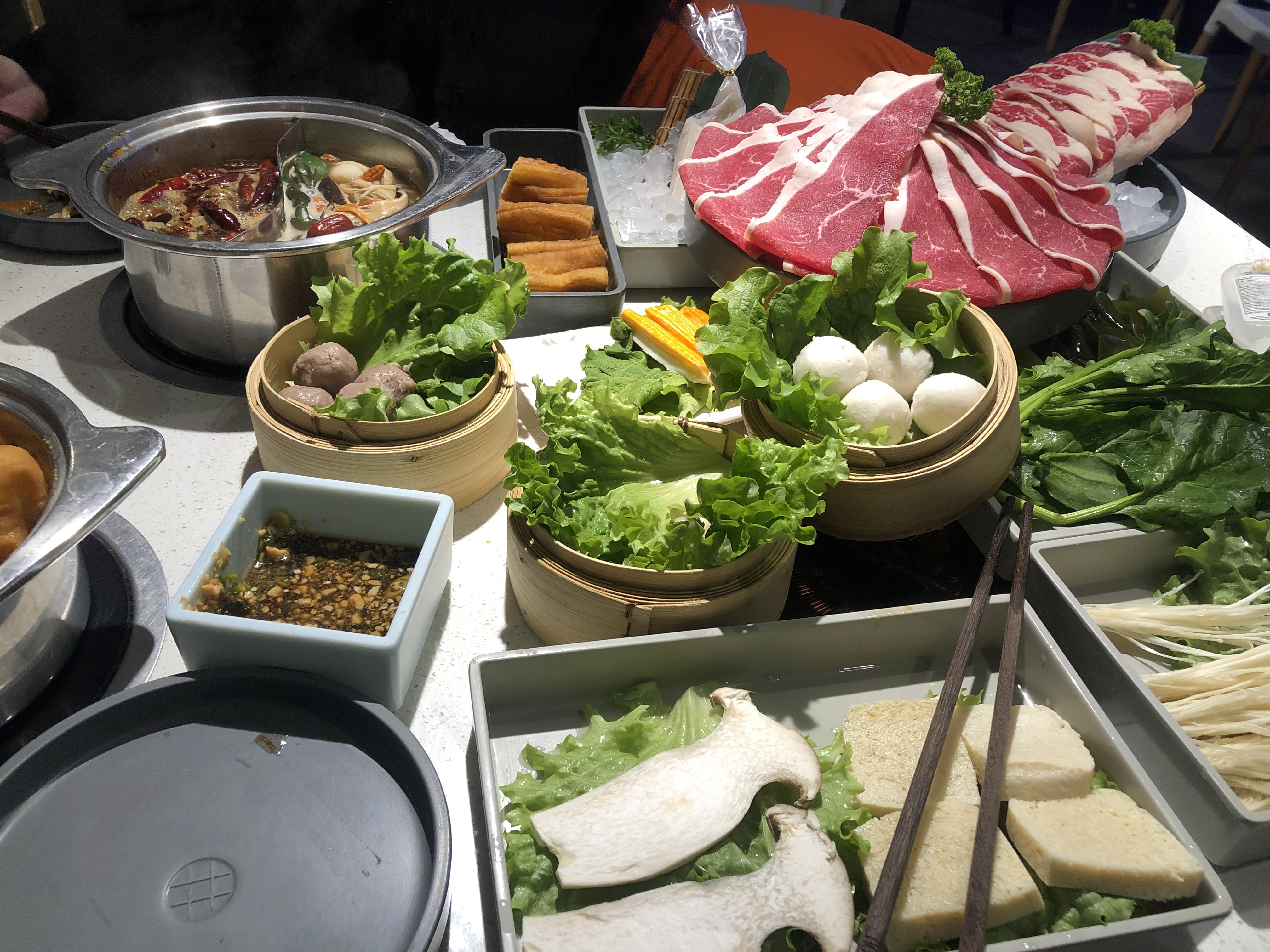 Le choix des ingredients, la qualité, le service sont excellents. Hotpot exactement comme en Chine. Si vous prenez le bouillon épicé et que vous ne connaissez pas...prenez le moins épicé - et vous pourrez toujours demander a diluer...
