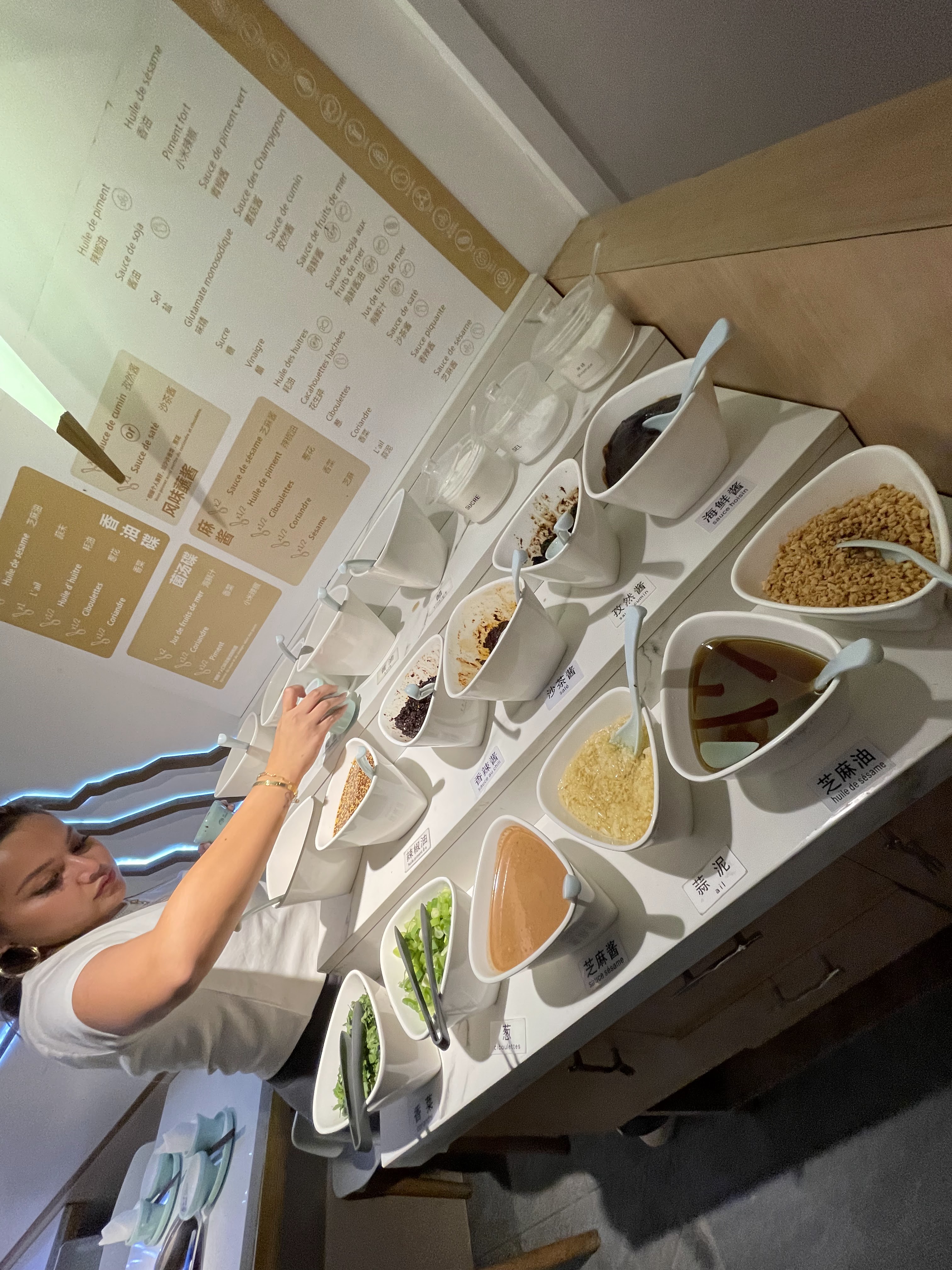 Visite jeudi soir en deux, jolie surprise ! La première fois de ma vie de découvrir le hotpot chinois, c’est copieux et volumineux ! D’après le monsieur à la caisse, ils accueillent pas mal de comédiens, célébrités chinois à Paris, ça ne ment pas avec leur plats. Surtout la sauce à personnaliser c’est amusant et bon service. Concernant les ingrédients de pot, je recommande personnellement les tendon de bœuf (oui j’avais jamais dégusté de ma vie non plus): c’est vraiment pas mal !! Juste une petite note: ils sont très bonne mais viandes sont un peu gras, vaut mieux y aller avec votre ventre bien vide !