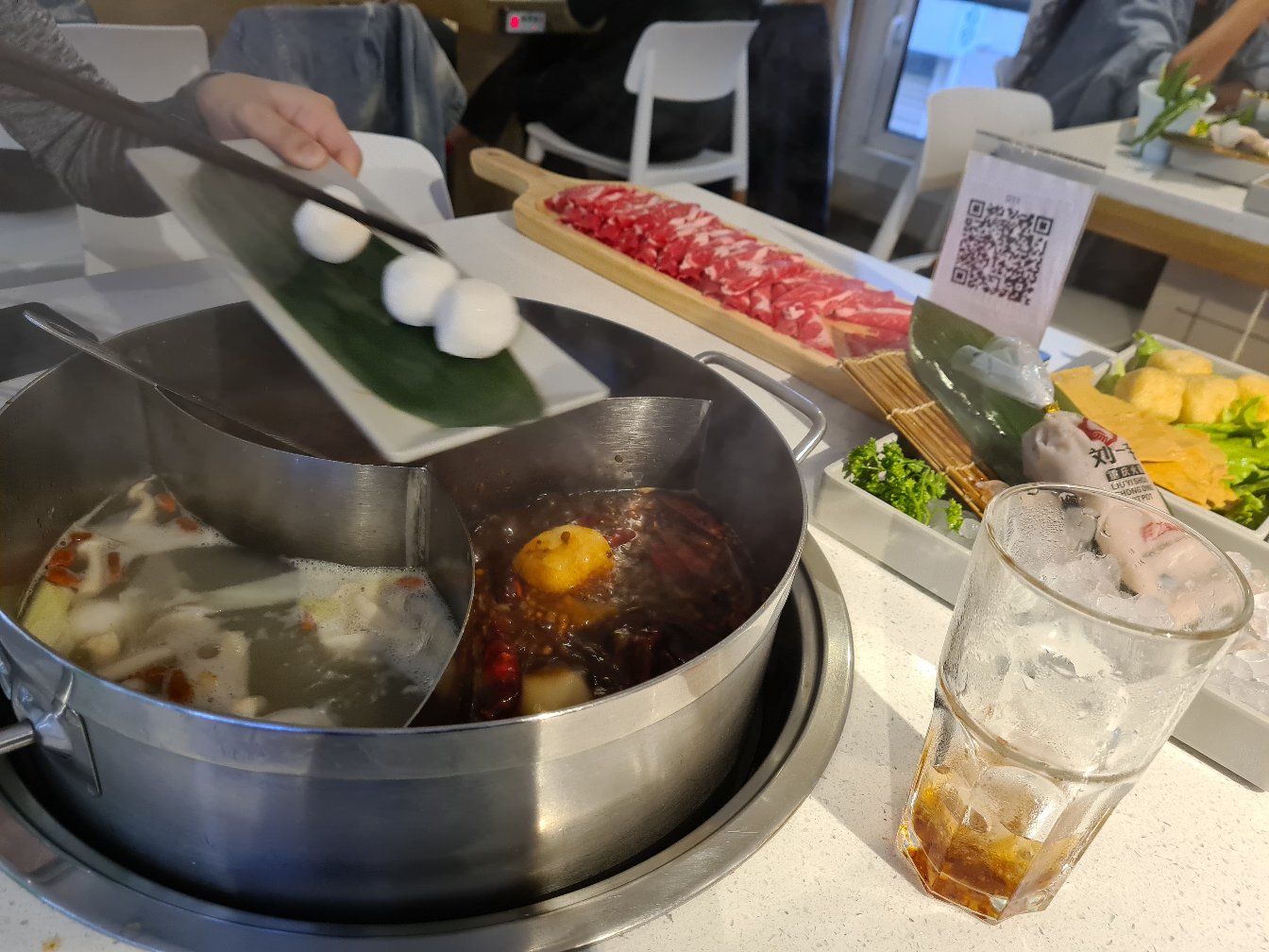Bon Hotpot sichuanais ! On a un choix varié de sauce, de bouillon et d'assortiments... Service rapide et efficace, il y a même un système d'aération. Par contre, on a le choix d'ajouter du glutamate 🙄
