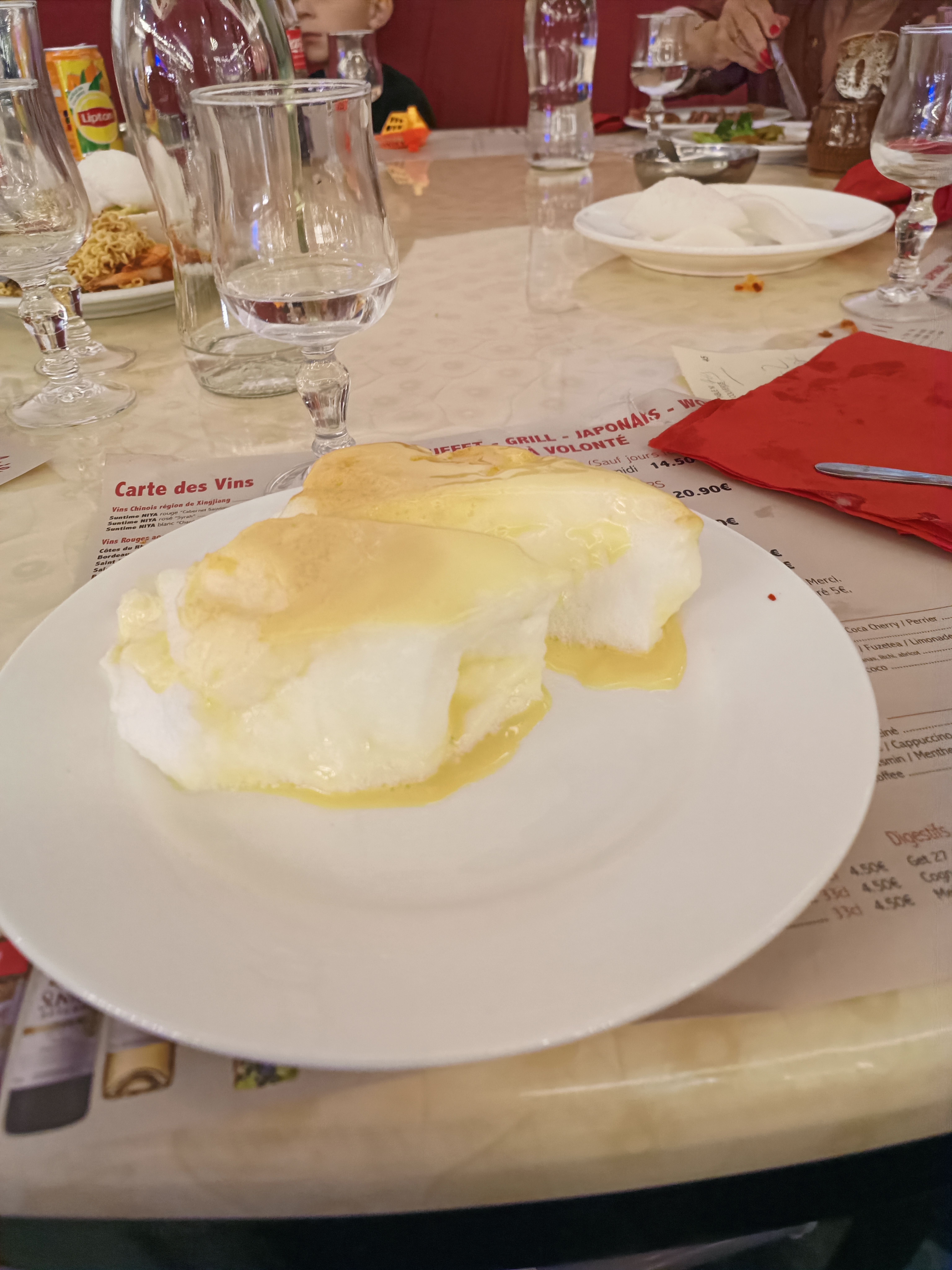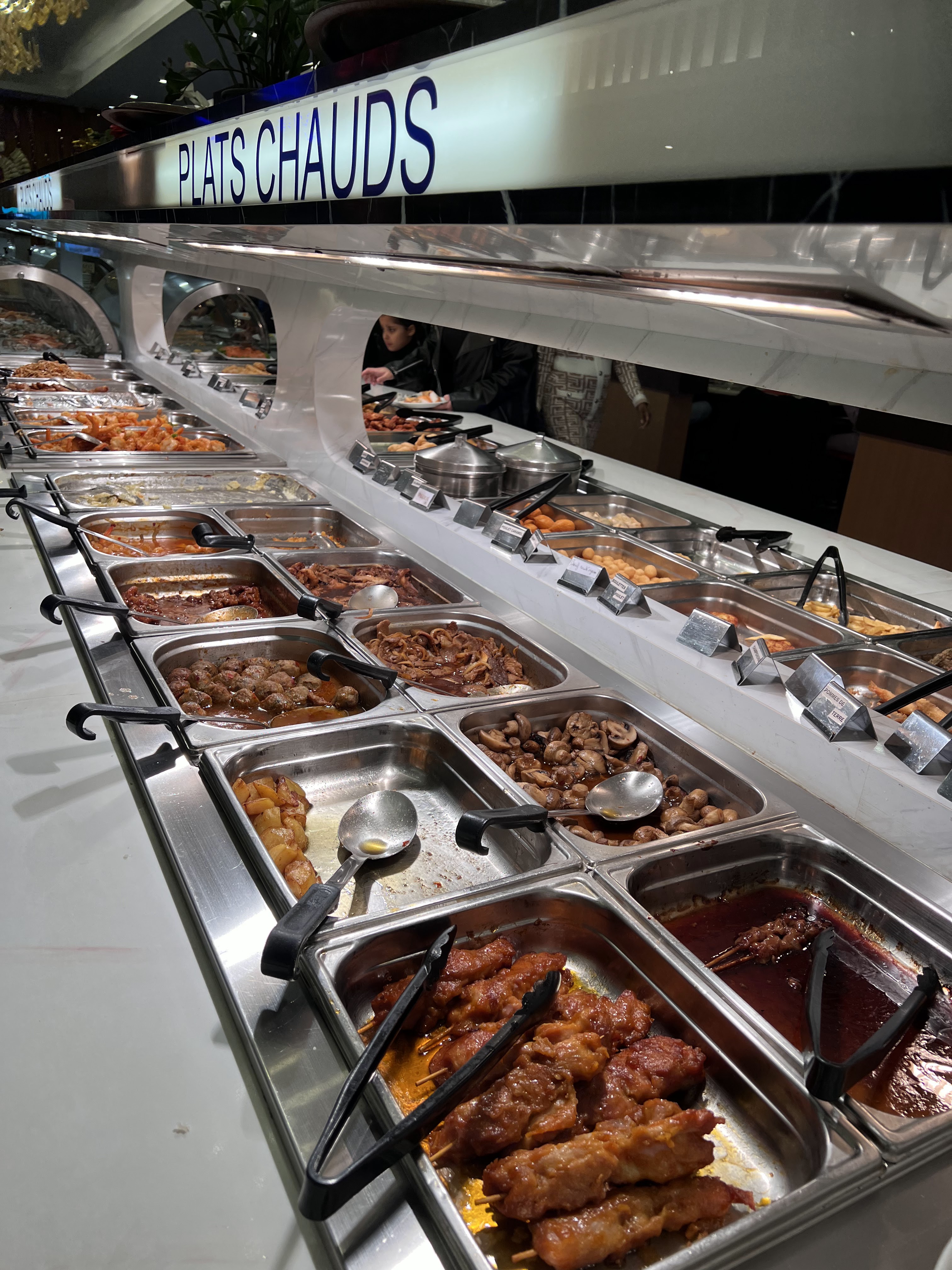 Beaucoup de choix mais l'agneau pas de tout frais caoutchouc pas facile à couper ni mâcher et les champignons trop salé,les nouilles un peu dur .Si non les autres plats sont bon mais dommage que beaucoup de plats sont trop salé.