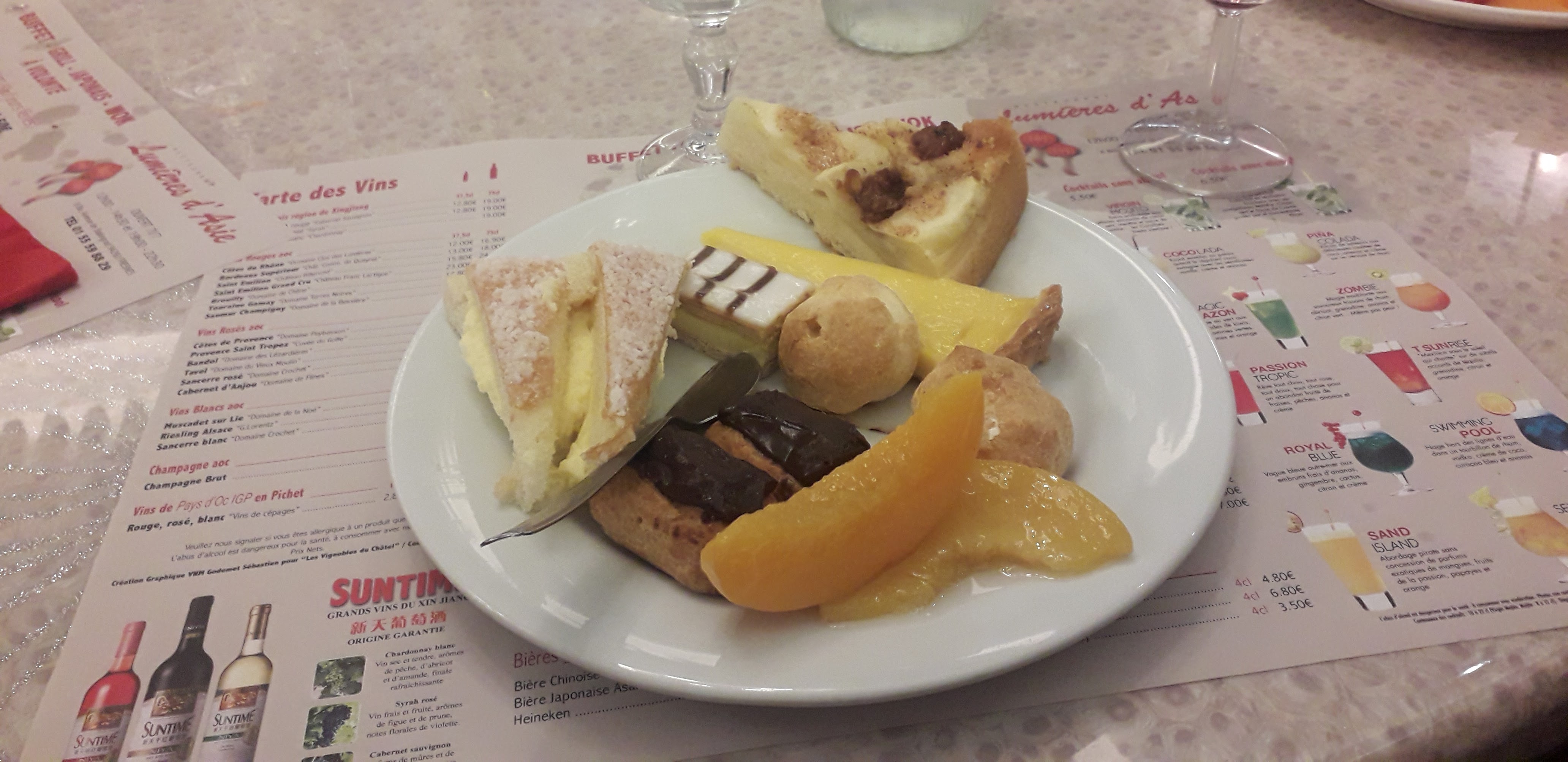 1ère visite agréable, en semaine donc pas trop de monde, pas de soucis pour se garer. Nous avons eu un excellent serveur, très sympathique avec beaucoup d'humour. Quant aux plats, ils étaient assez variés, moi qui n'avait jamais mis les pieds dans un restaurant asiatique, j'ai été forte surprise d'y trouver des frites, nuggets des entrées comme de la Macédoine... beaucoup de choix, malheureusement parfois tiède mais dans l'ensemble j'ai bien aimé ! Les desserts très bon même si c'est du surgelé 😊