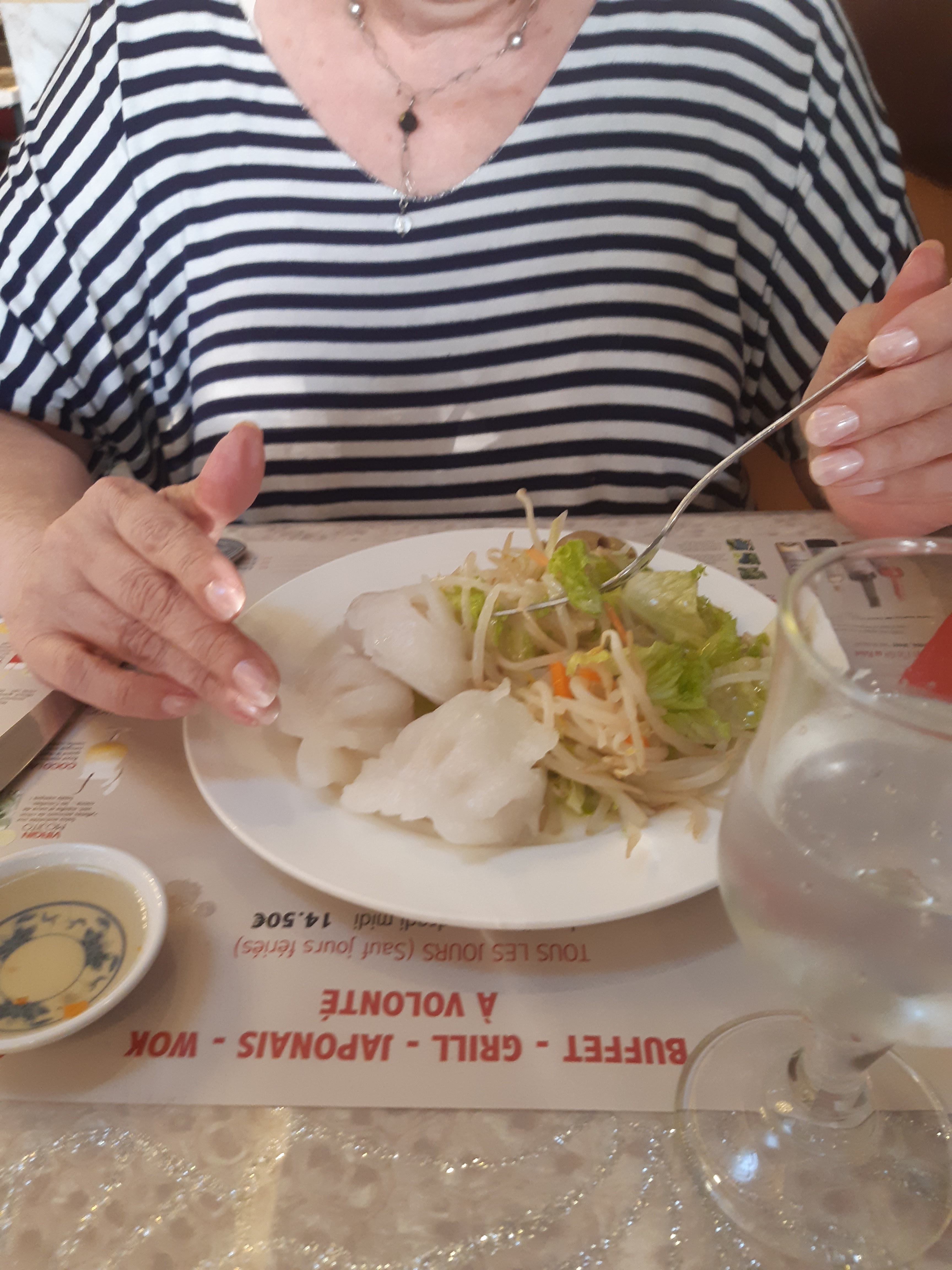Personnel super accueillant, très sympathique. Les plats (service à volonté) sont nombreux et bien présentés. La cuisine est bonne. Perso je n'aime pas trop la cuisine asiatique, je mange juste des nems, des beignets de crevettes, des samoussas et des nouilles aux légumes mais les personnes qui m'accompagnent, elles aiment quasiment tout et trouvent la nourriture excellente.