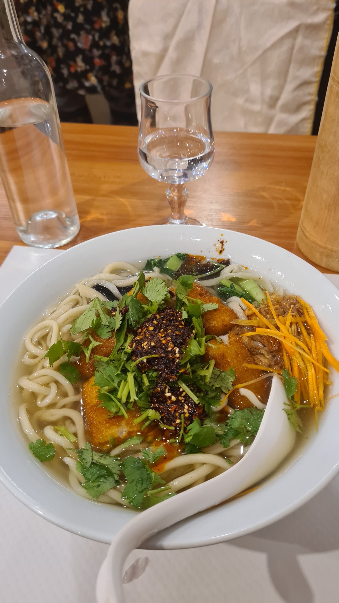 Superbe ! Le restaurant ne paie pas de mine mais la cuisine servie y est excellente, les nouilles sont onctueuses et riches, la portion généreuse, et le service efficace et très sympathique. Nous avons également pris d'excellents raviolis frits au poulet. Le cadre est calme et les prix très accessibles, ne pas hésiter à y aller !!